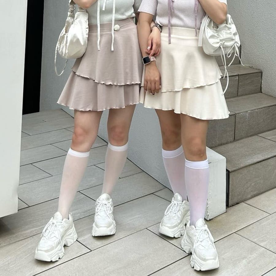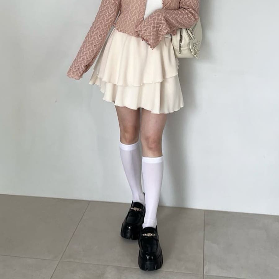 ・オーバーサイズのトップスの裾から少し見えるように履くのもかわいいです。