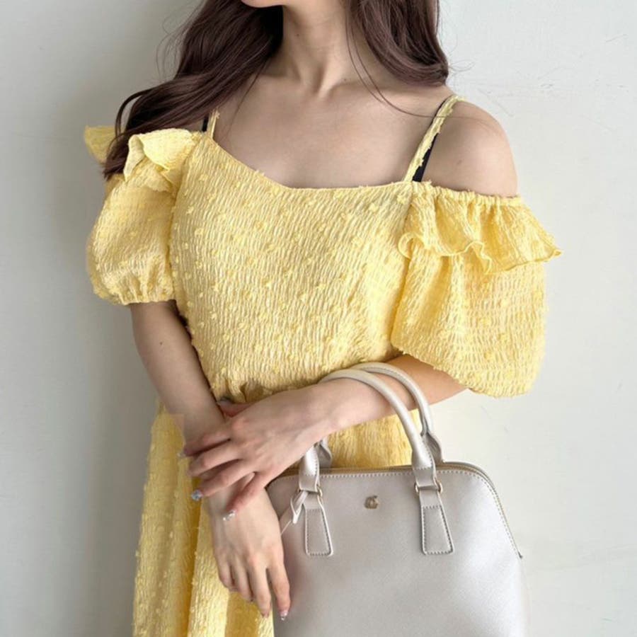 ・オフショルでも肩に乗せても着れる2wayのワンピース。