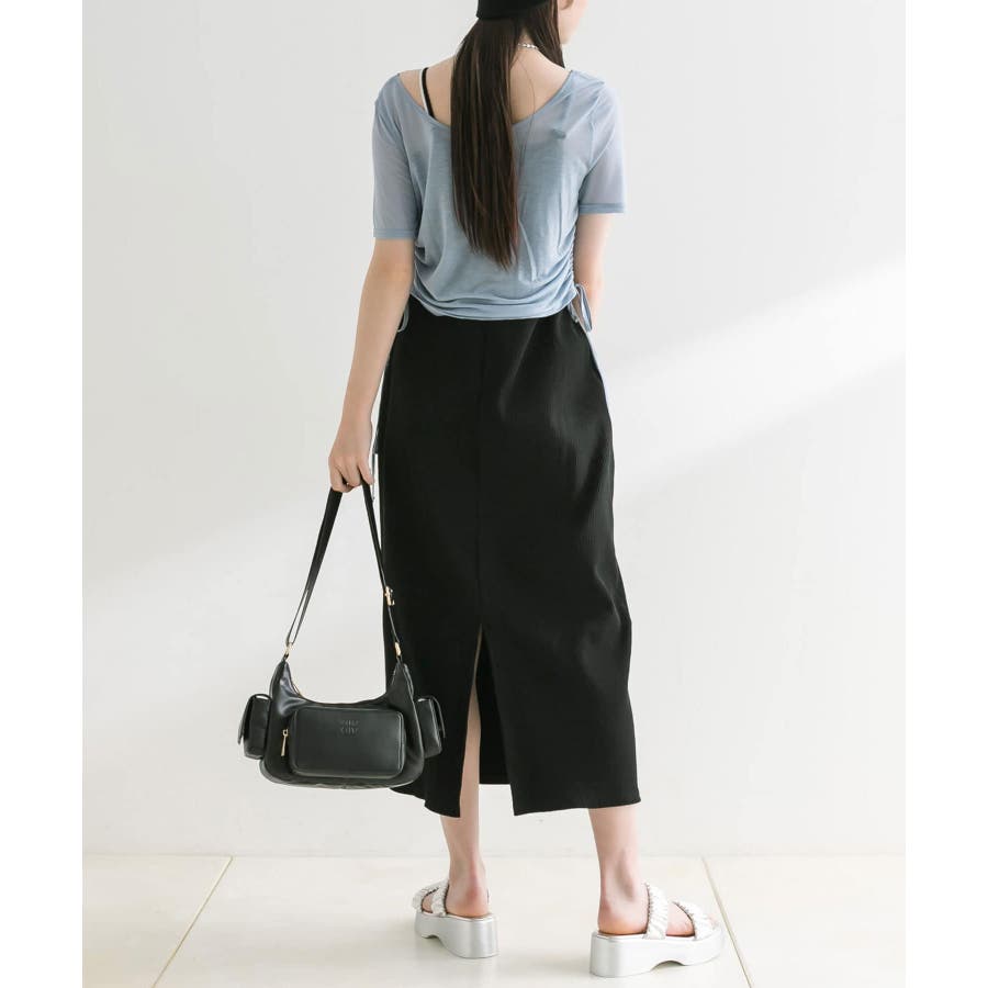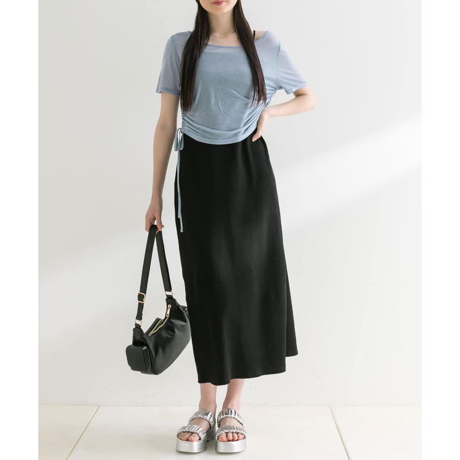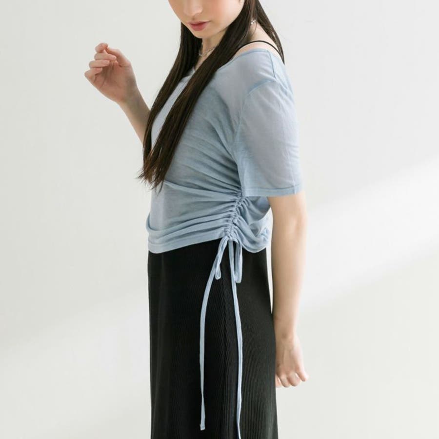 ・トップスはトレンドの裾ドロストデザインで、シルエットの変化が楽しめます。