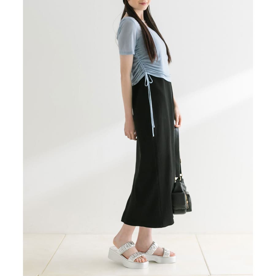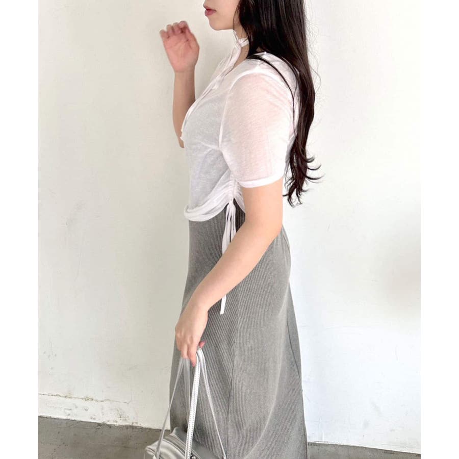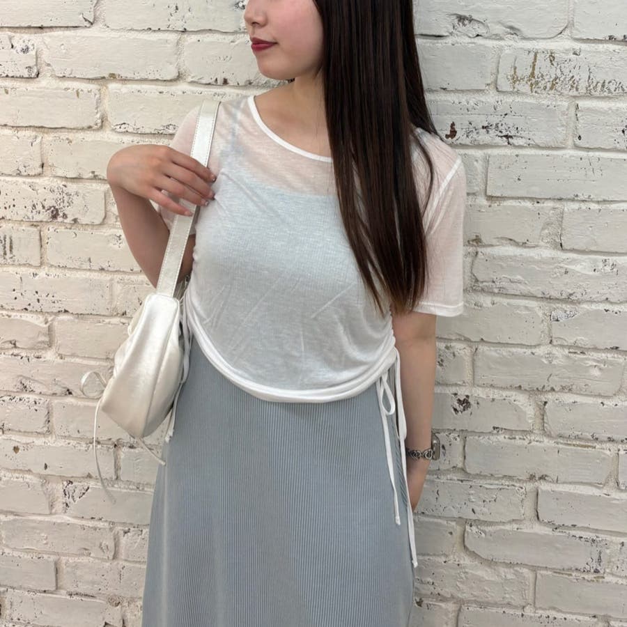 ・透け感がトレンドライクなトップスと、テレコ素材のキャミワンピースのセット。