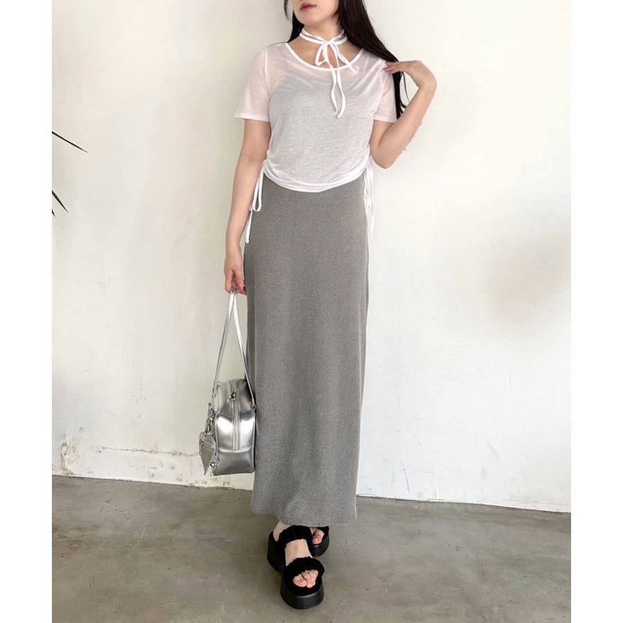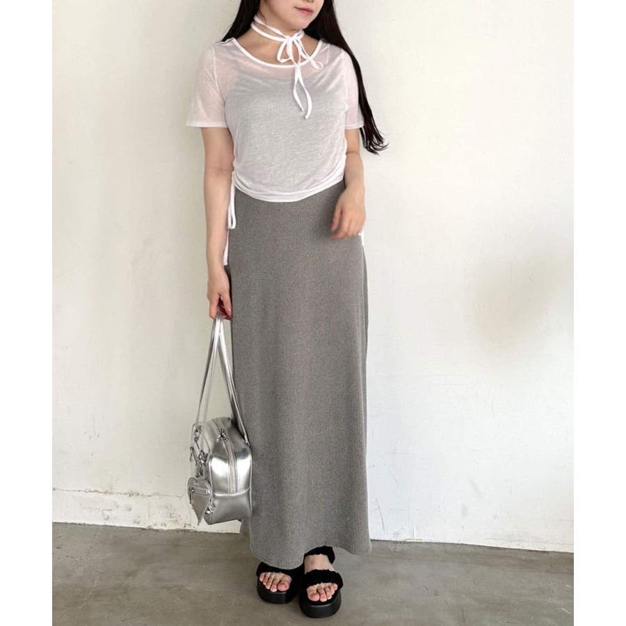 ・紐をトップスにあるループに通してリボンにしたり、首元でチョーカーのように結んだり様々な着こなしを楽しめます。