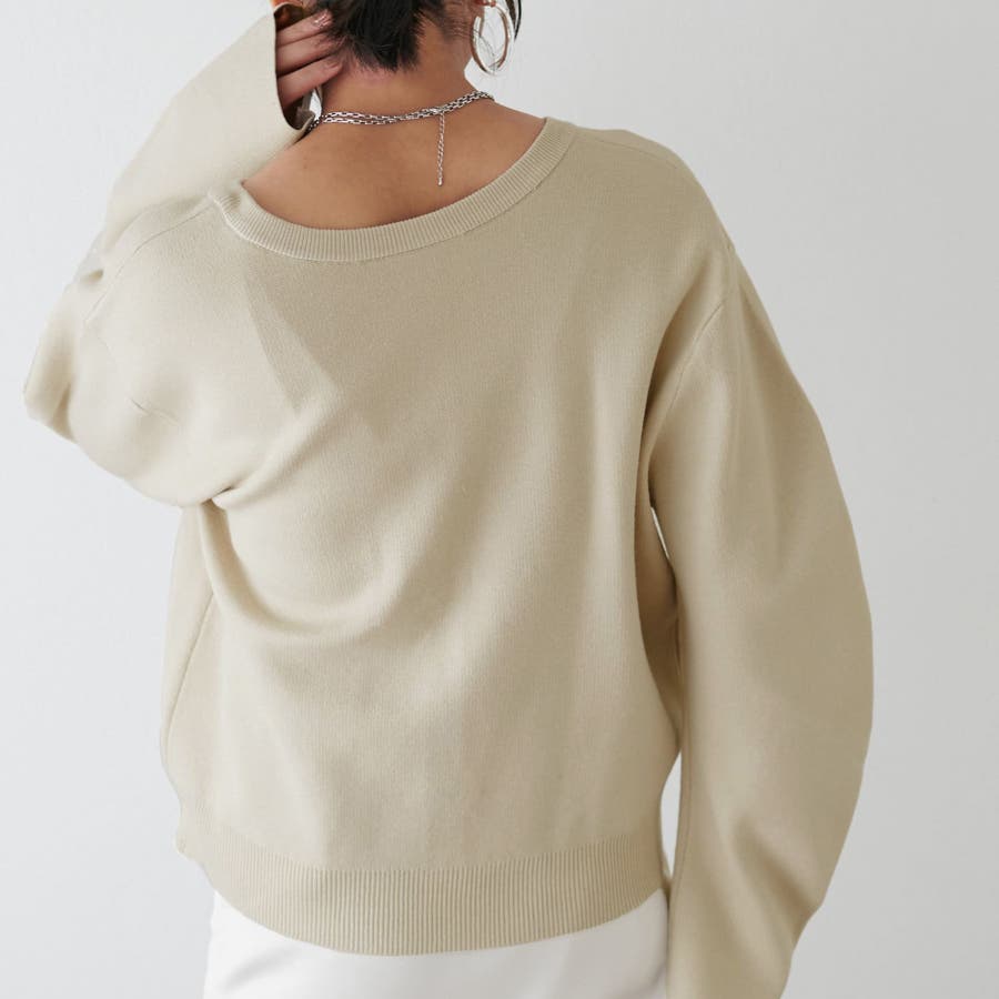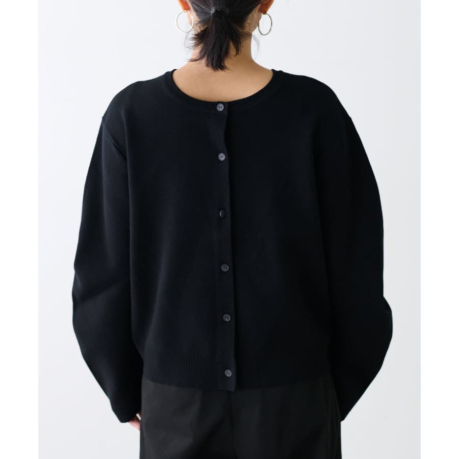 丈は短めで袖にゆとりがある今風なトップスです。丸襟なので、ボタンを留めても開けて着ても良いタイプ。ボタンを後ろにして着ても良いようですね。3wayで色々アレンジできそうです。