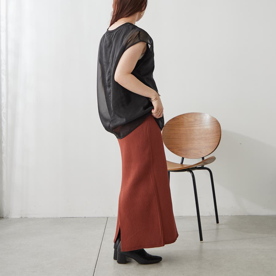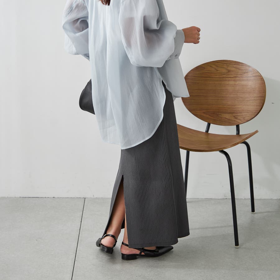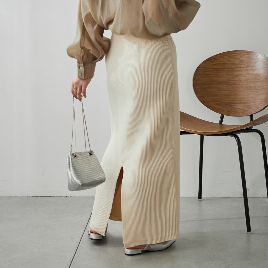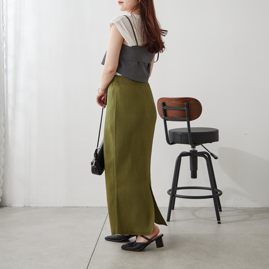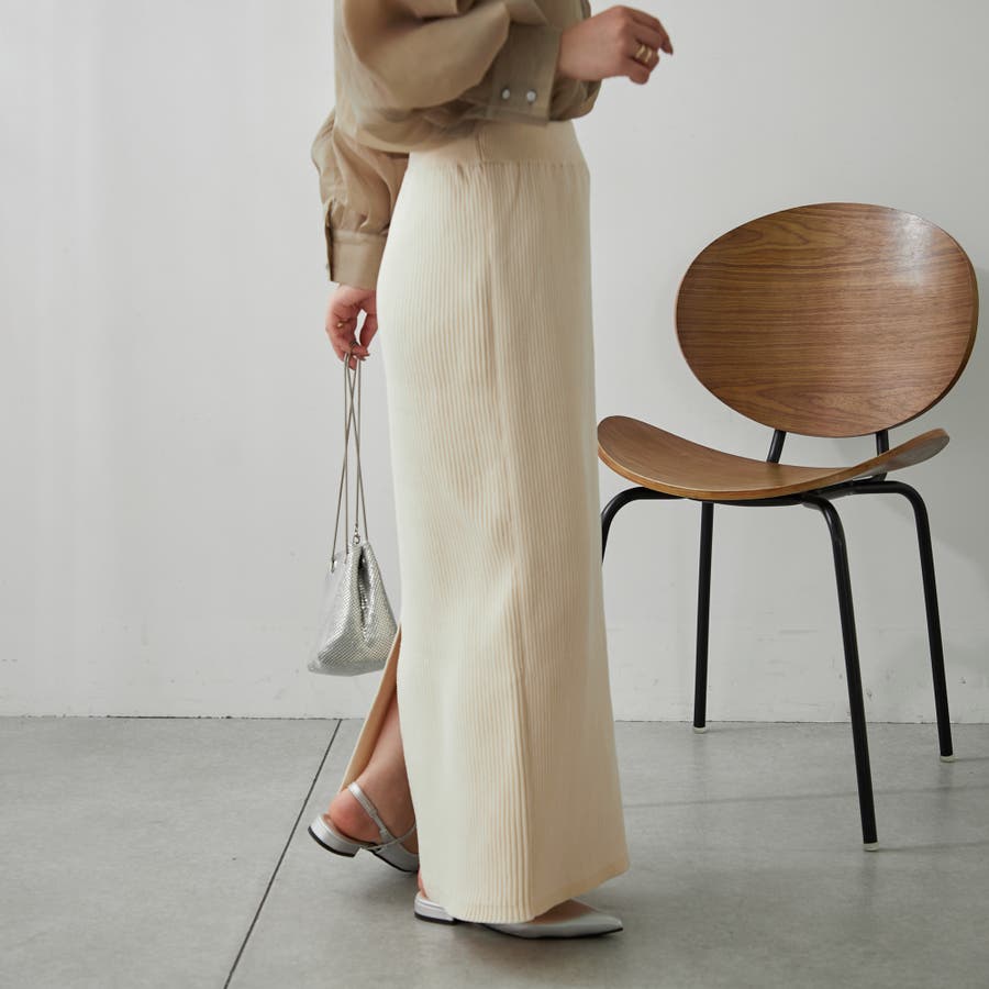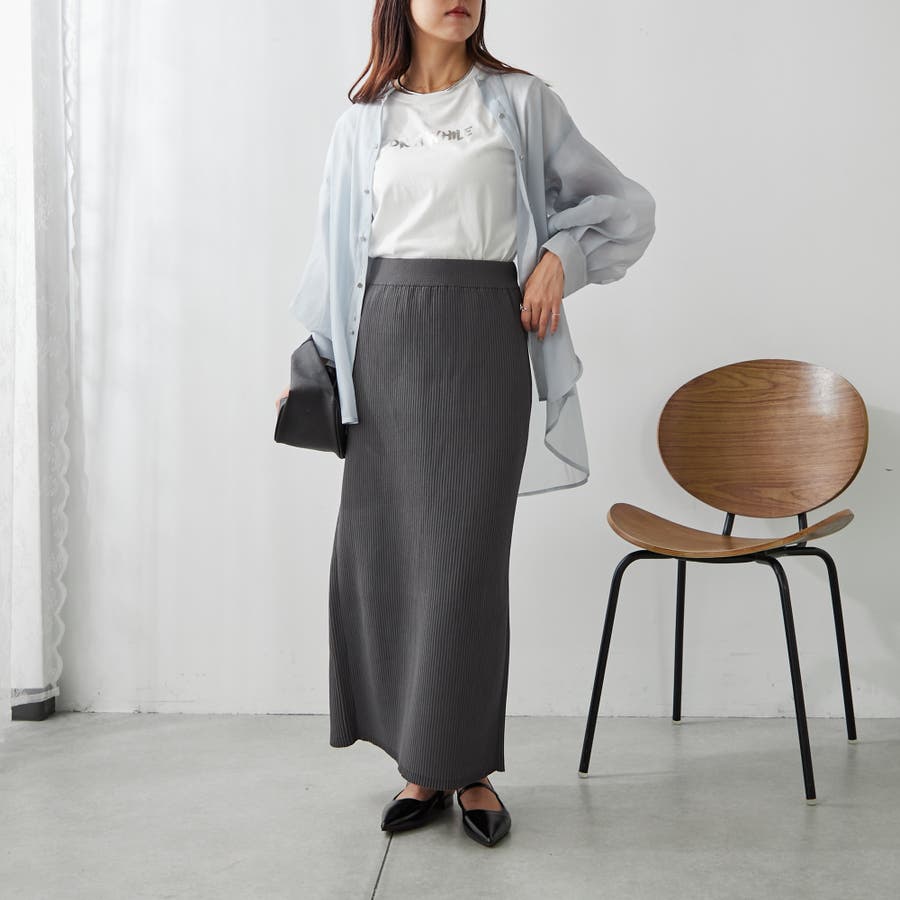 ・縦のラインが細見え効果を期待できる綺麗めスカート。