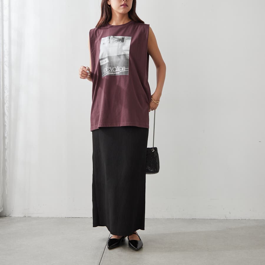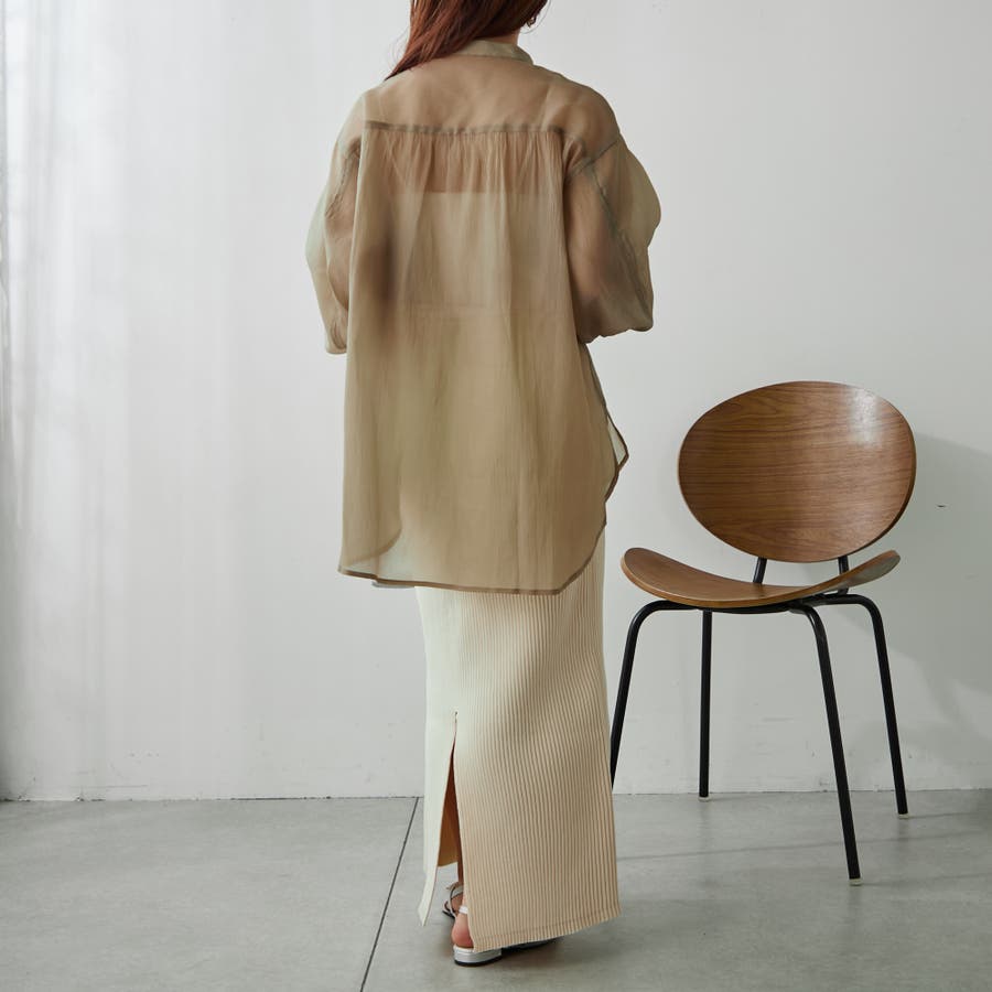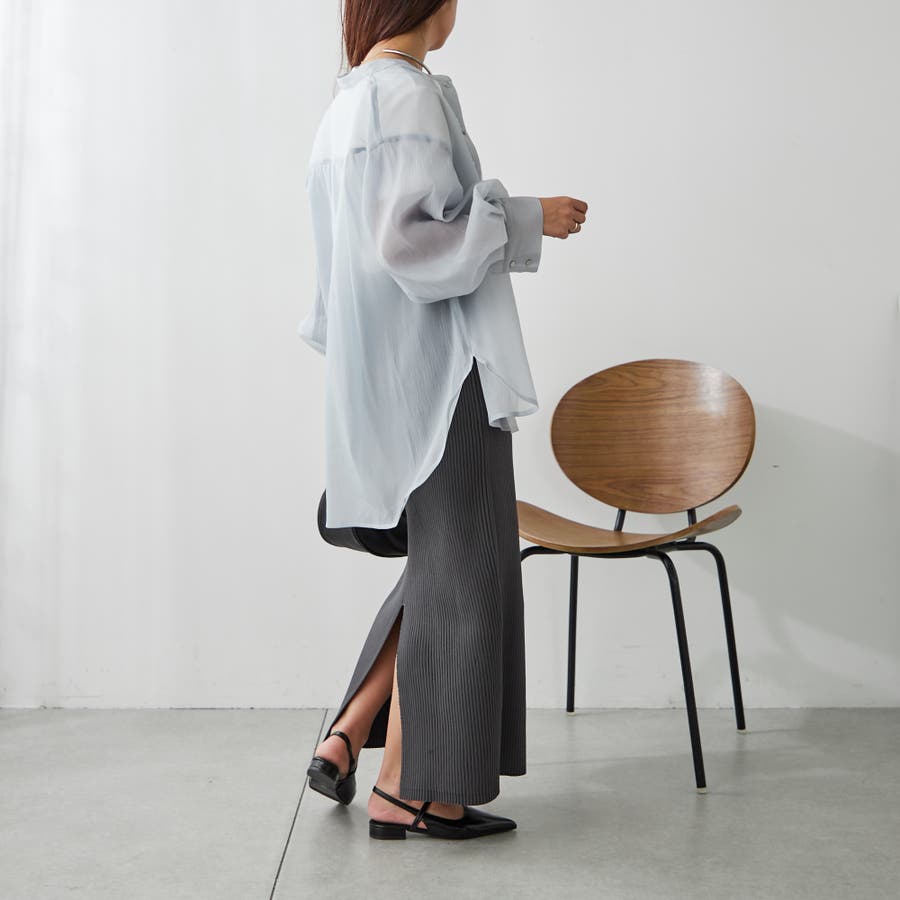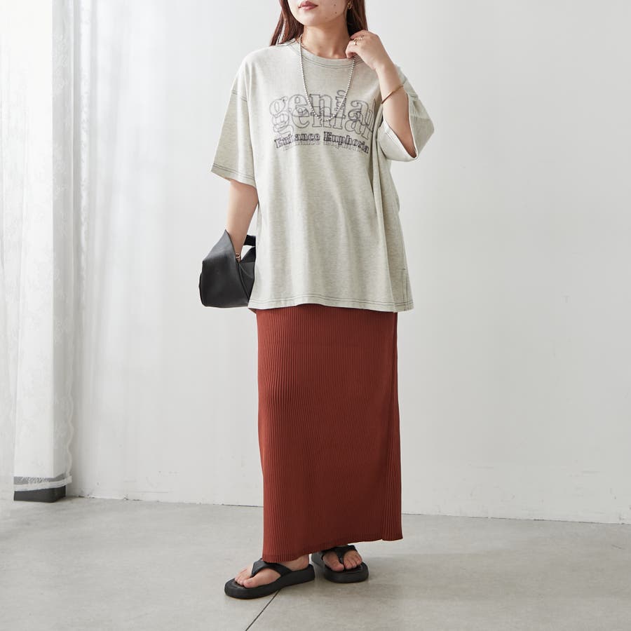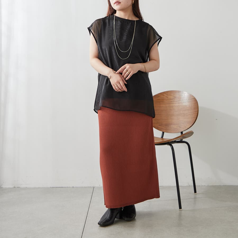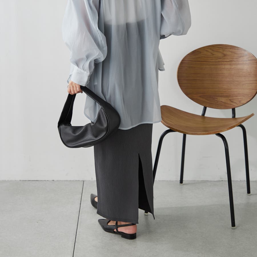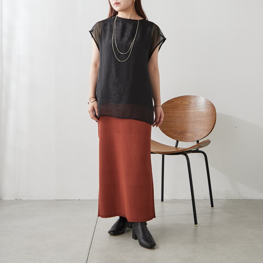 ・とろみ感と程よく厚みがある素材は、適度に身体のラインをカバーしつつもすっきりしたシルエットに。