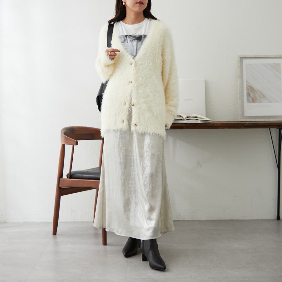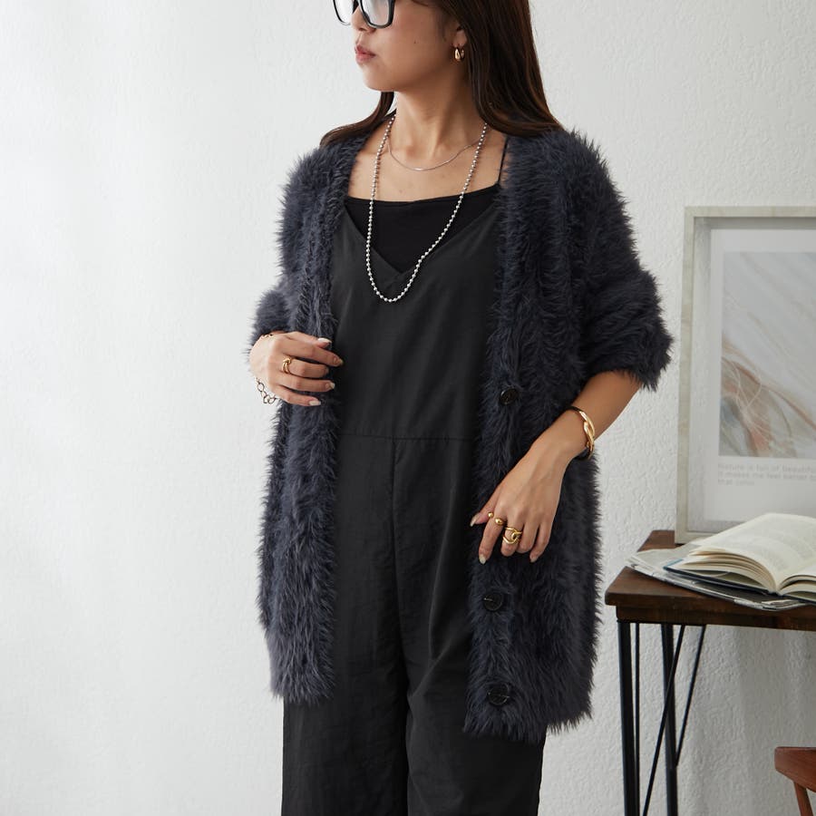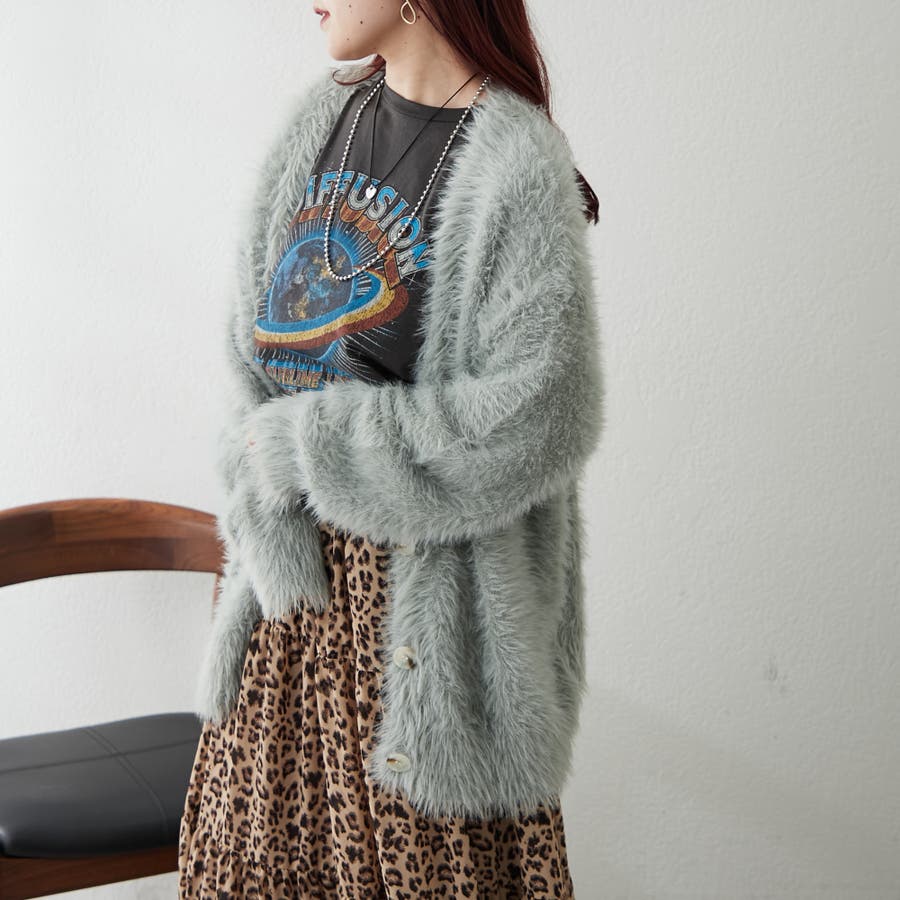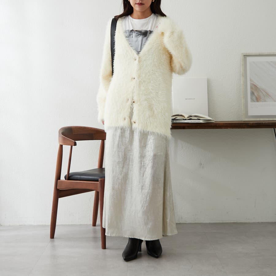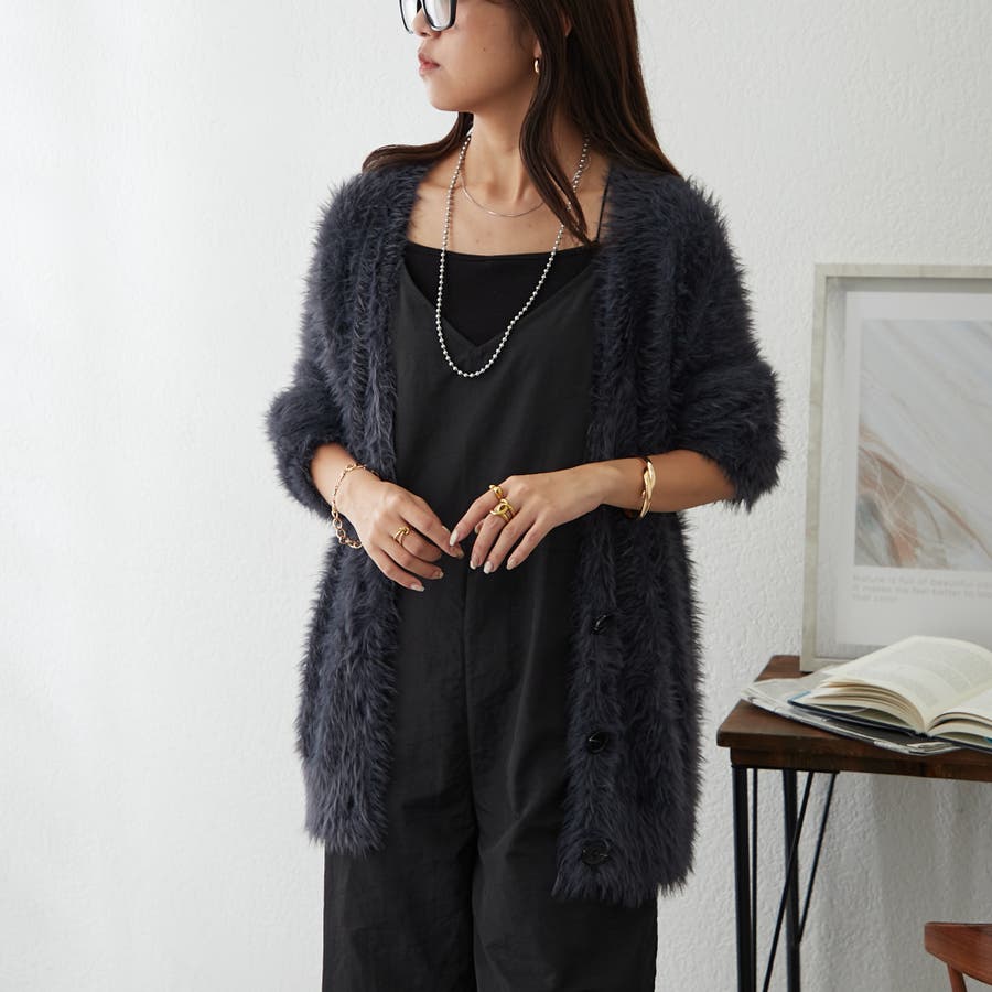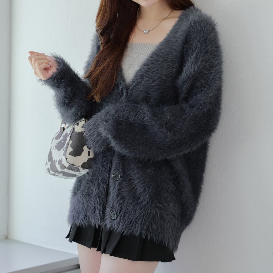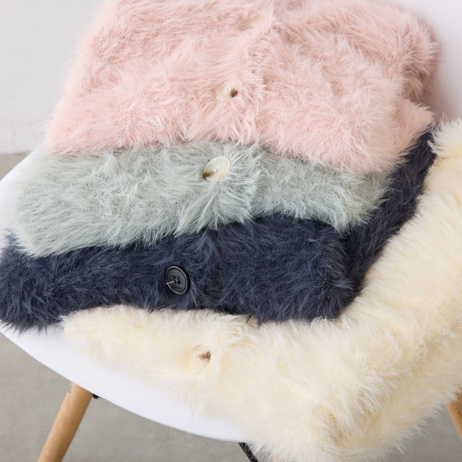 ・触り心地の良い毛足の長いシャギーカーデ