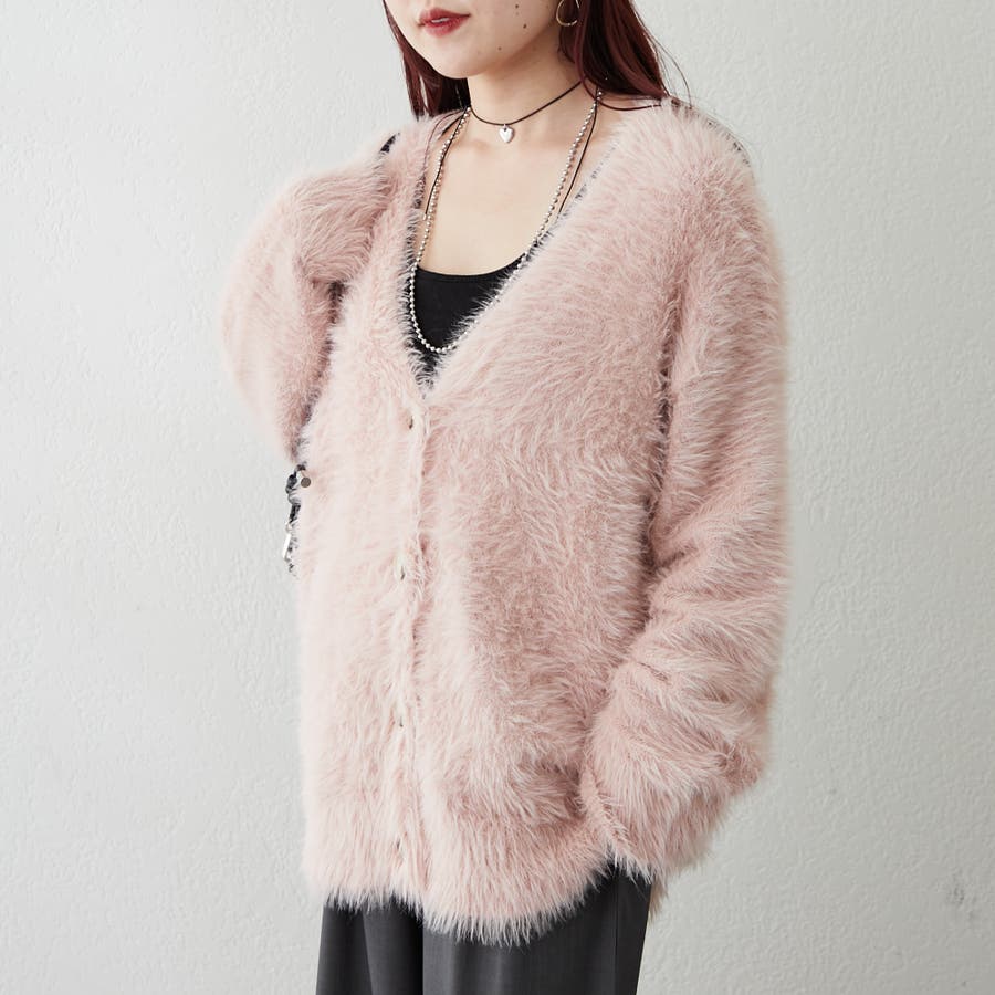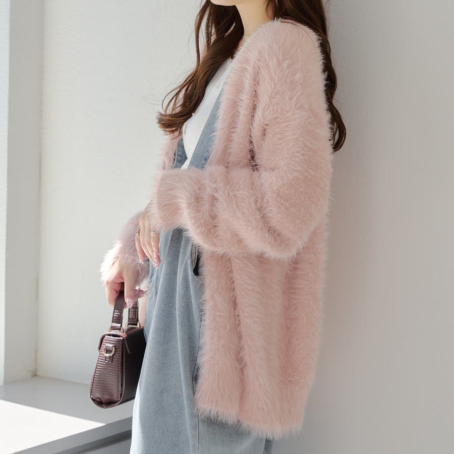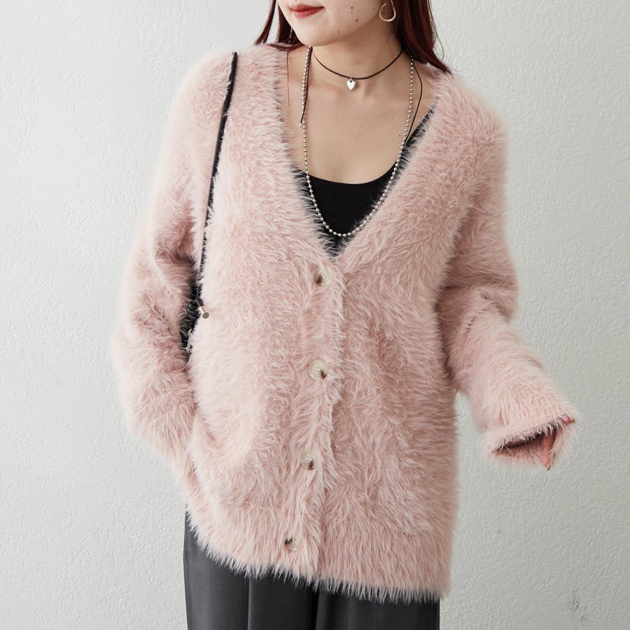 【ピンク】シャギーカーディガン