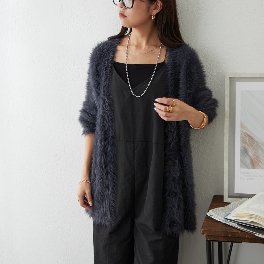 ・シンプルなキャミワンピの上に羽織り、ふわふわな素材感をプラスして。
