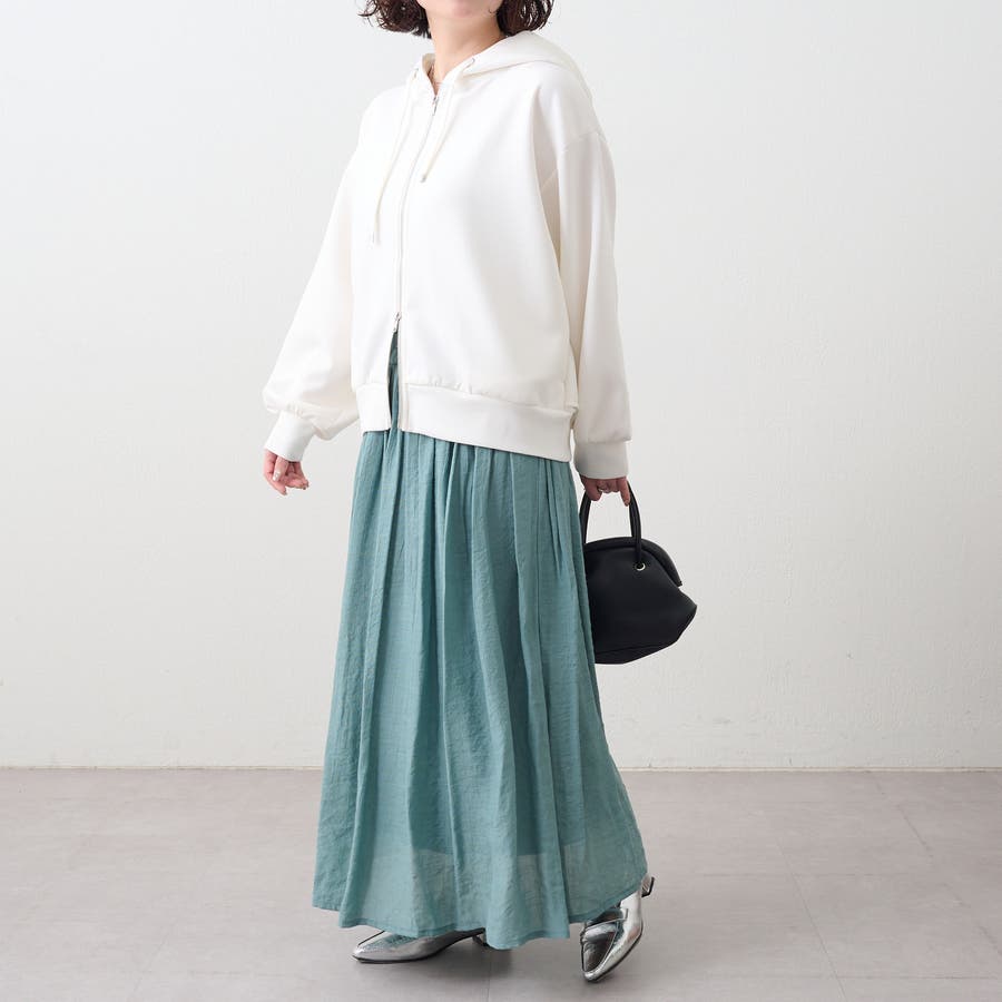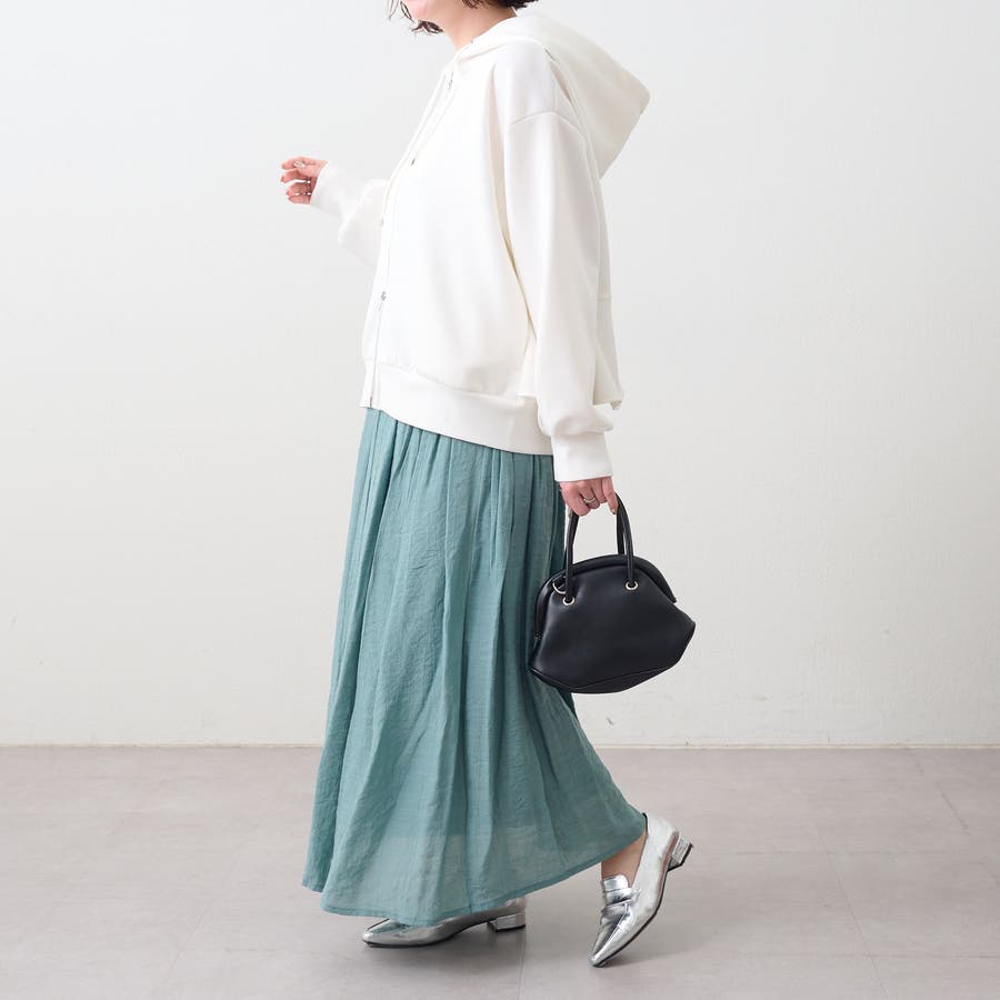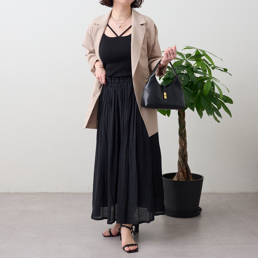 ・ボリュームがあるスカートなので、トップスはコンパクトなものを選ぶとバランス良くまとまります。