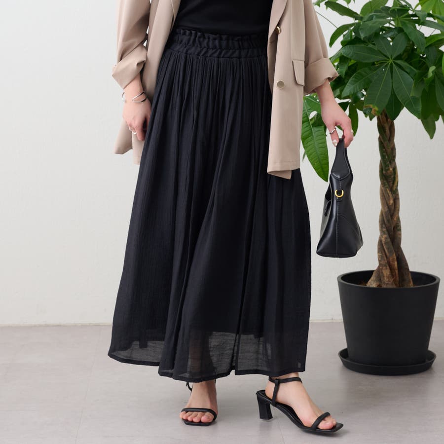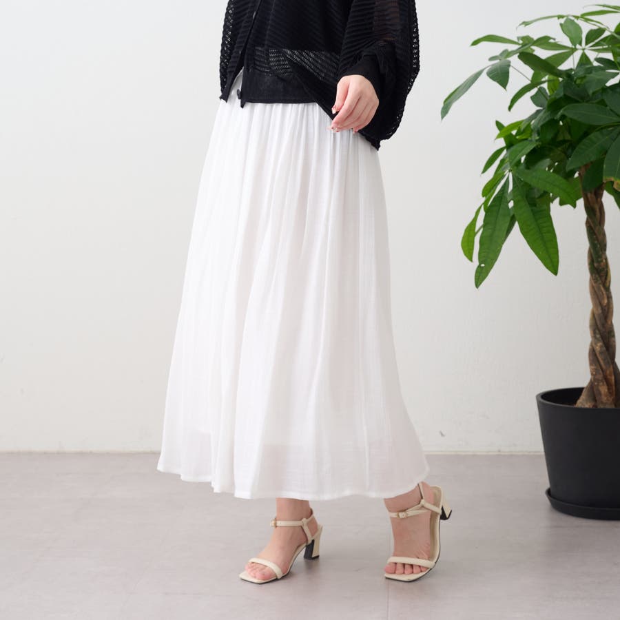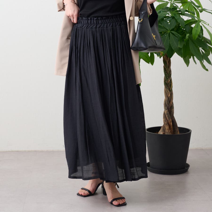 ・ウエストフリルデザインでインしてもお洒落なロング丈スカート。