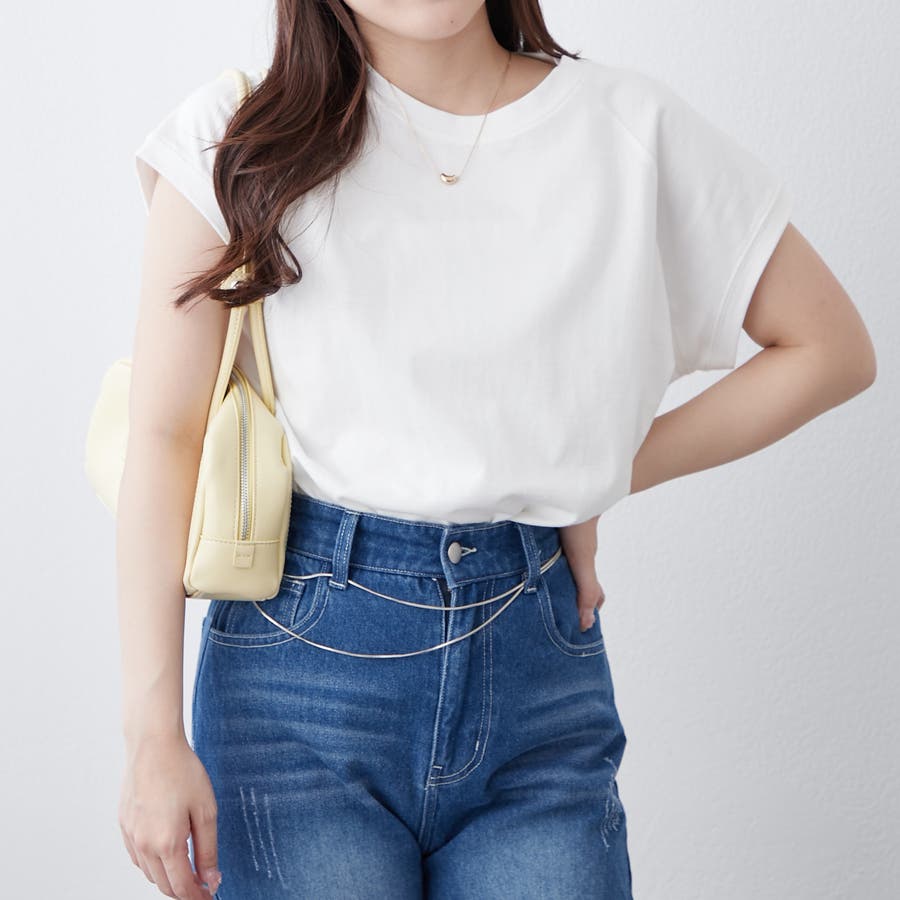 ・シンプルなアイテムなので、ロングネックレスなどのアクセサリーで飾って♪