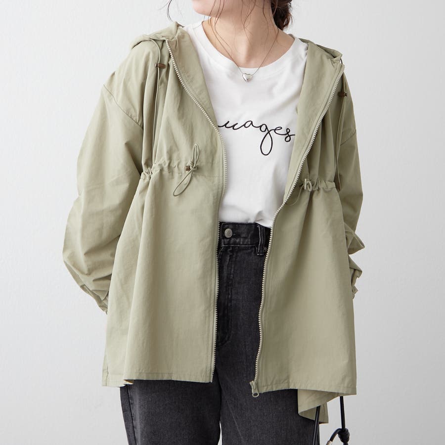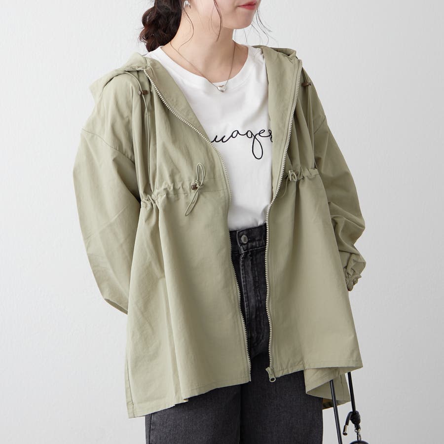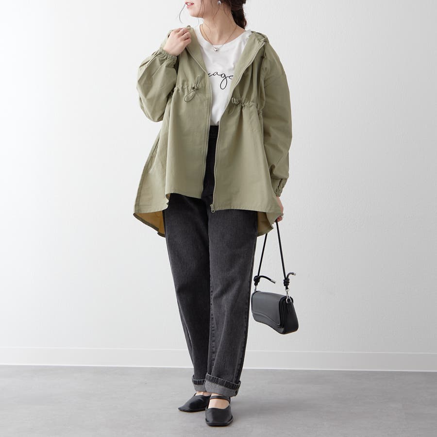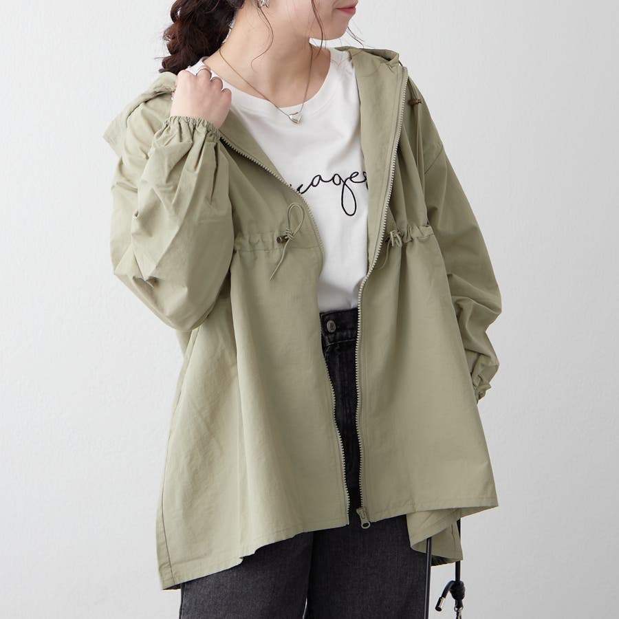 【カーキ】【ウエストを絞ってスタイルアップ】ドロストフード付ブルゾン