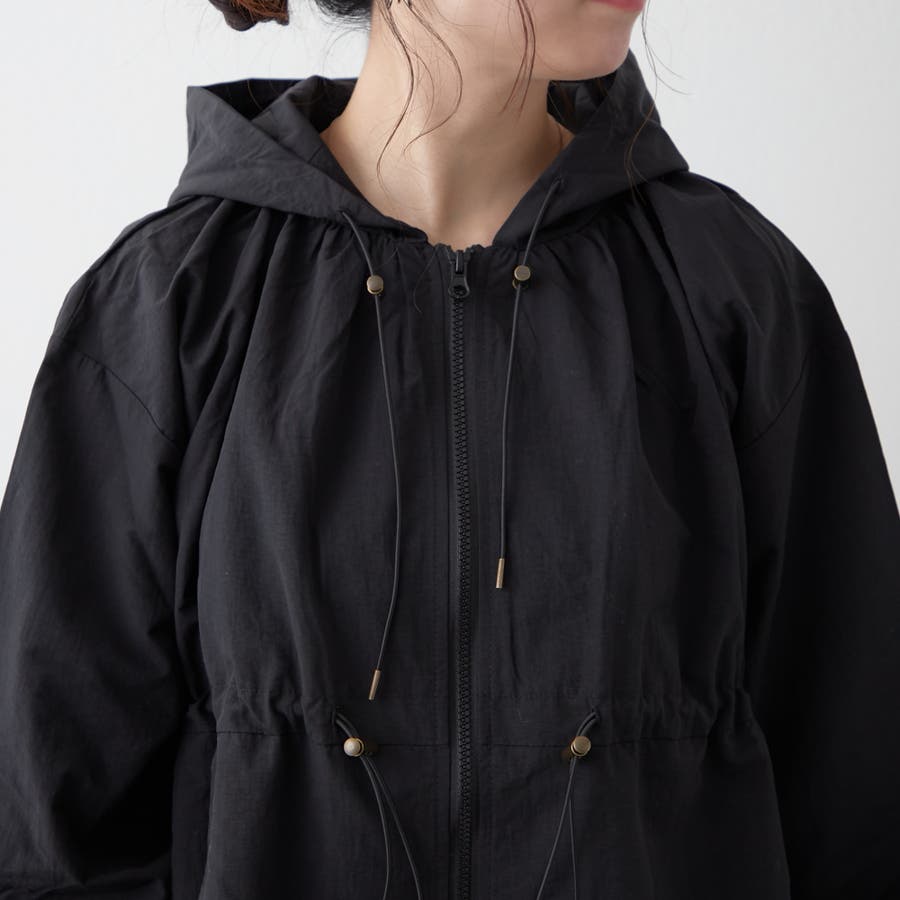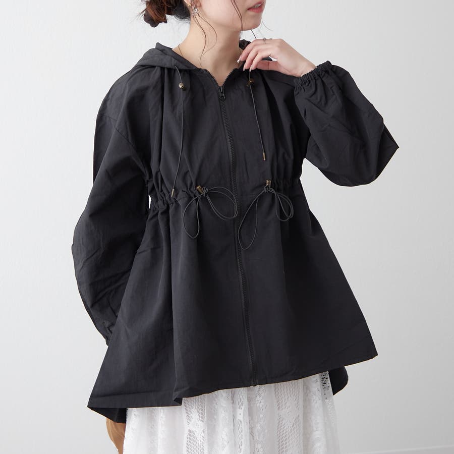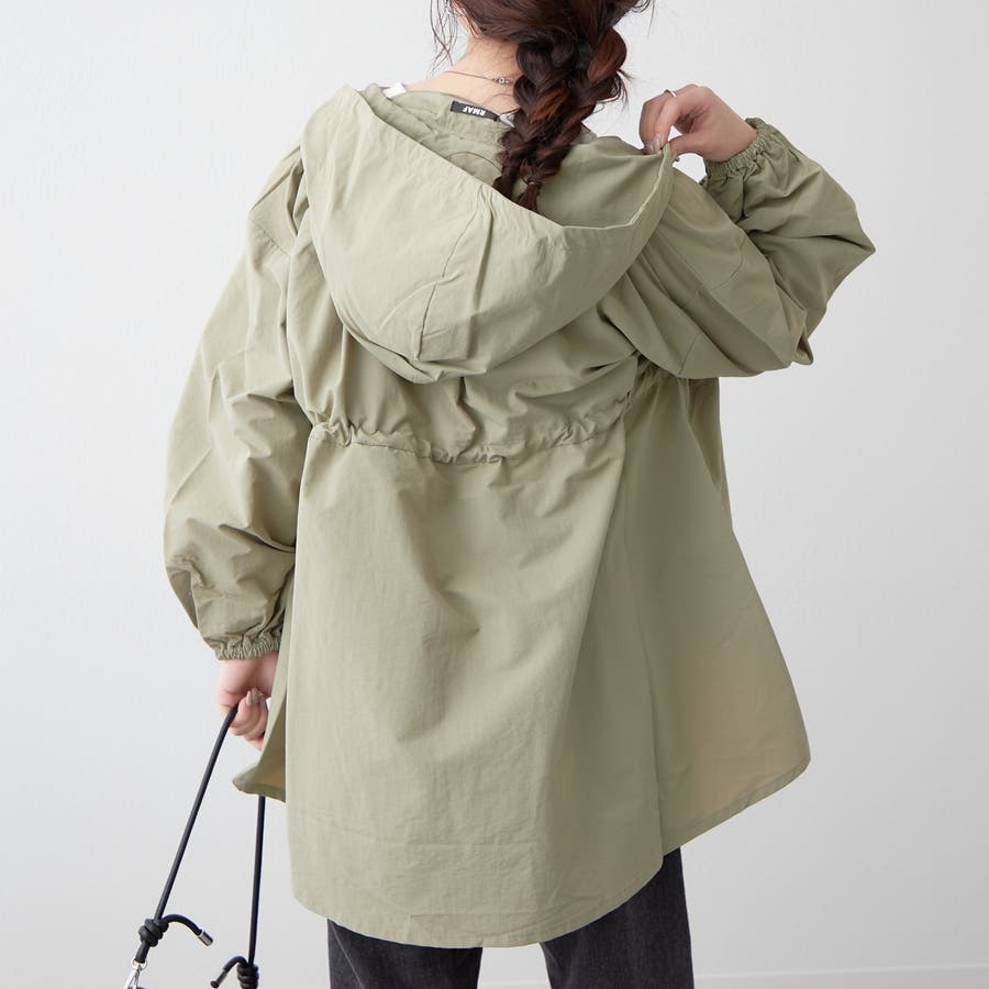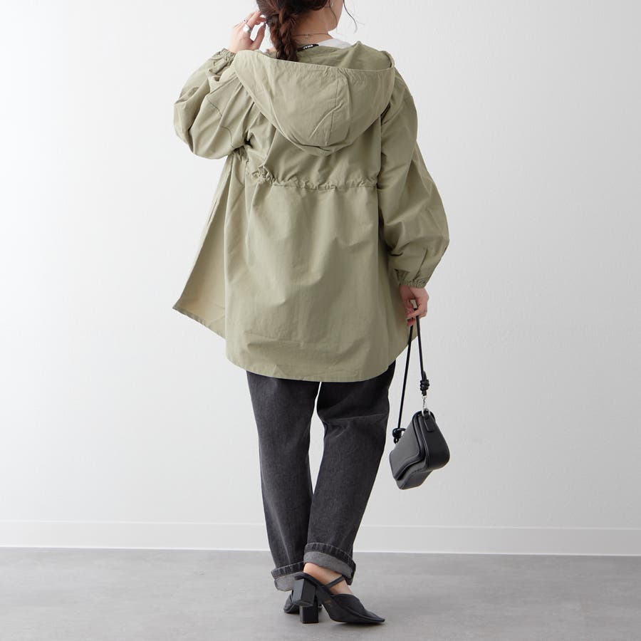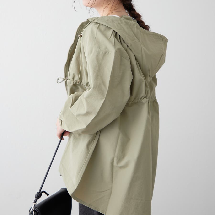 【カーキ】【ウエストを絞ってスタイルアップ】ドロストフード付ブルゾン