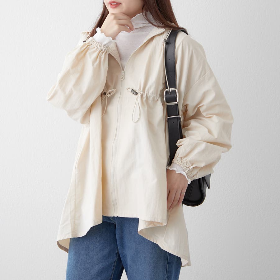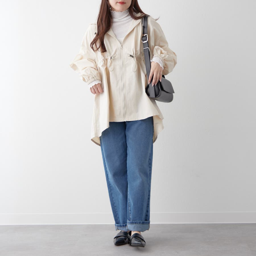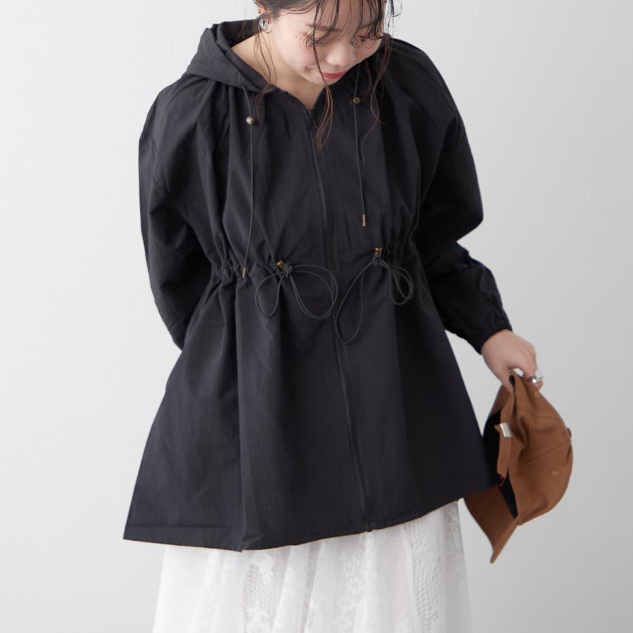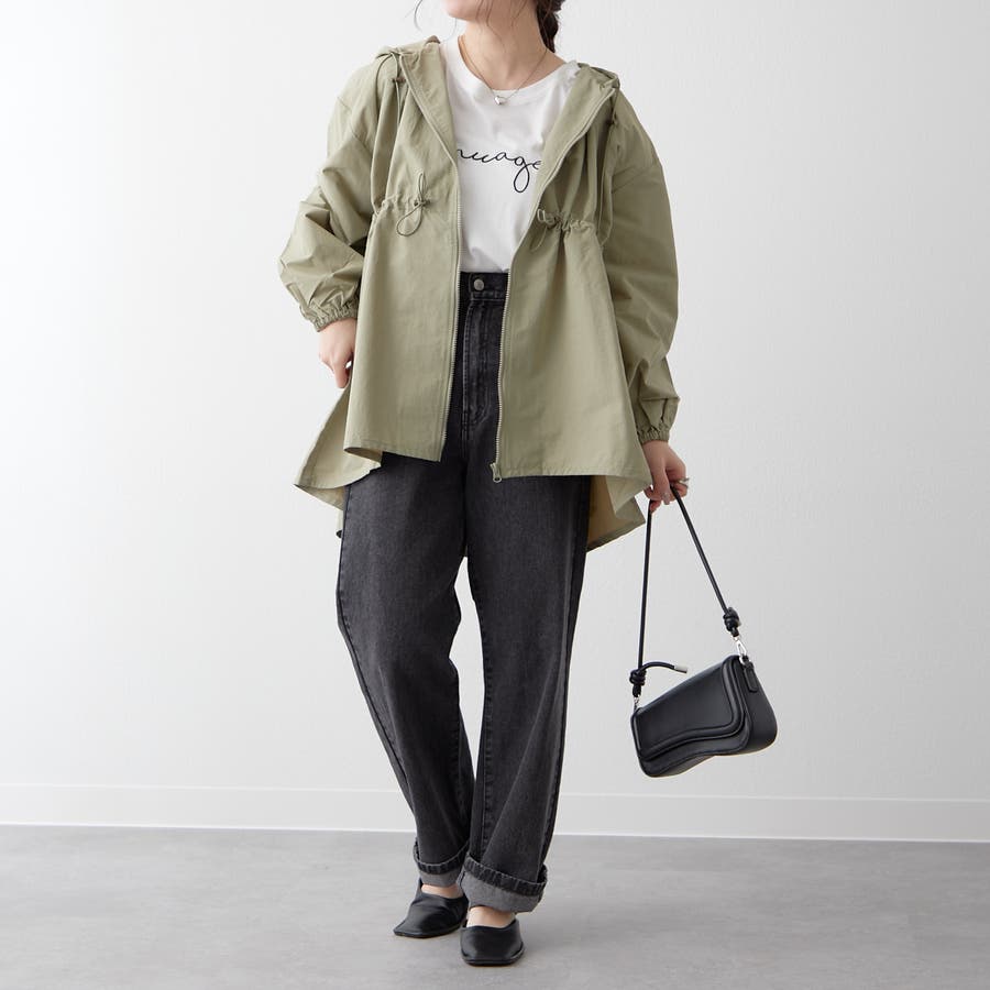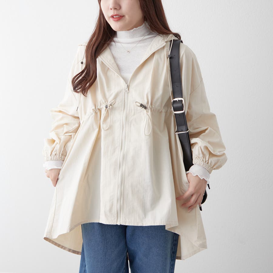 ・ウエスト部分がドロスト仕様になっているので、Aラインをつくることができ、カジュアルにもきれいめにもなるアイテム。