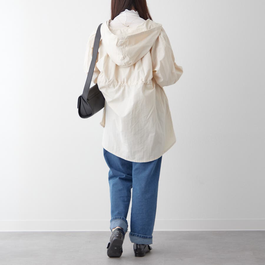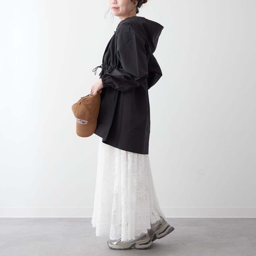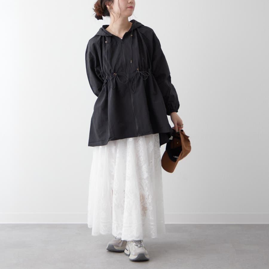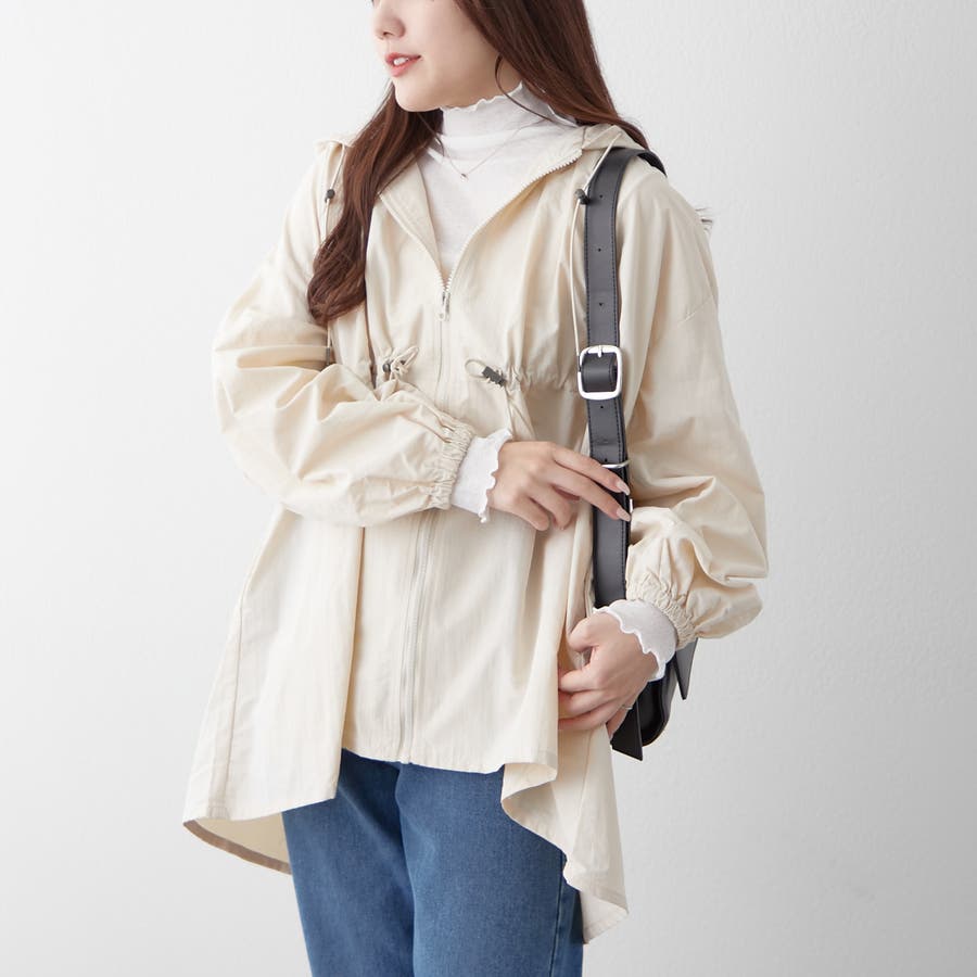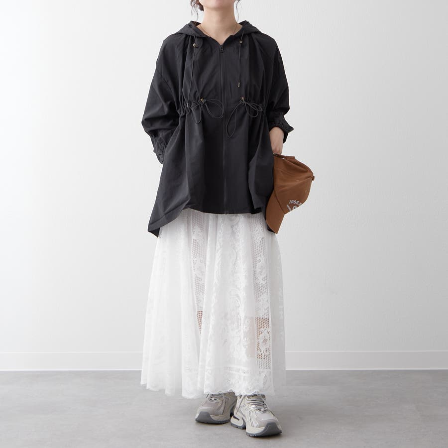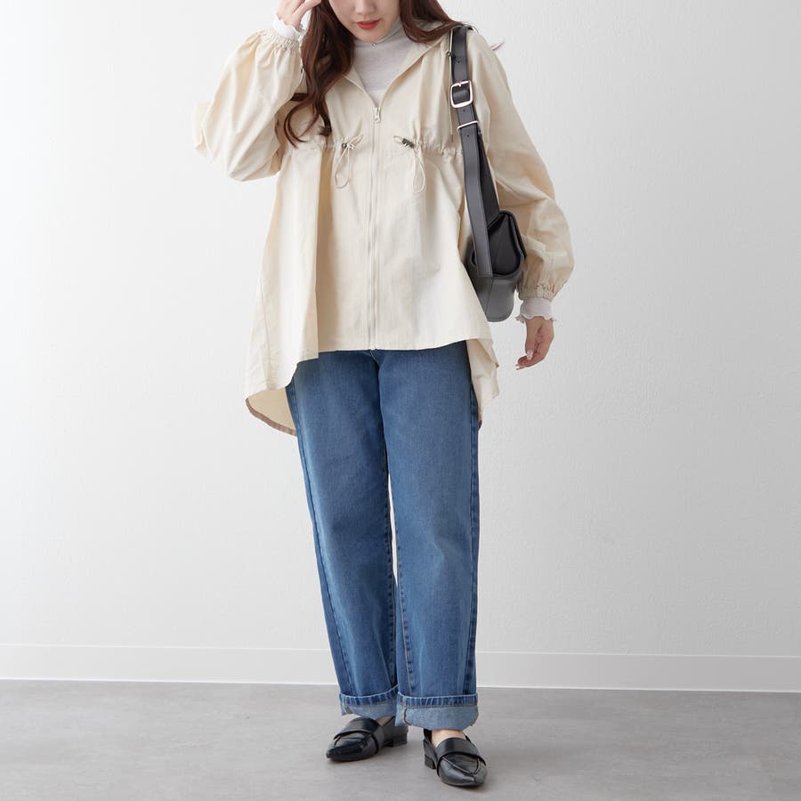 ・ウエスト部分がドロスト仕様になっているので、Aラインをつくることができ、カジュアルにもきれいめにもなるアイテム。
