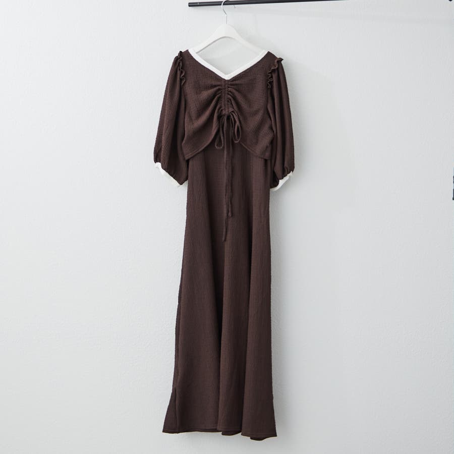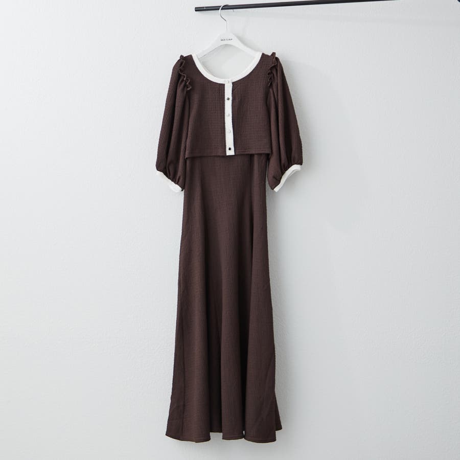 【ブラウン】【6色展開、セットアイテム】配色カットジャガードワンピース