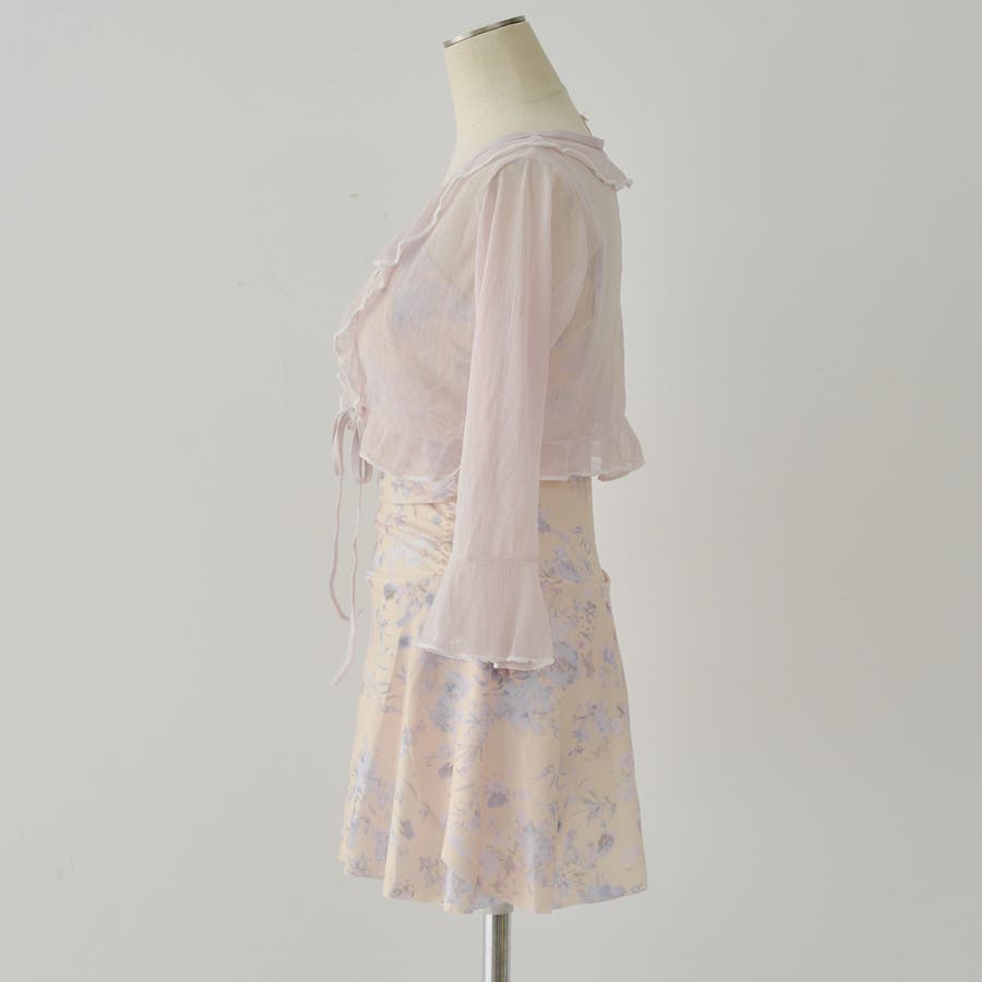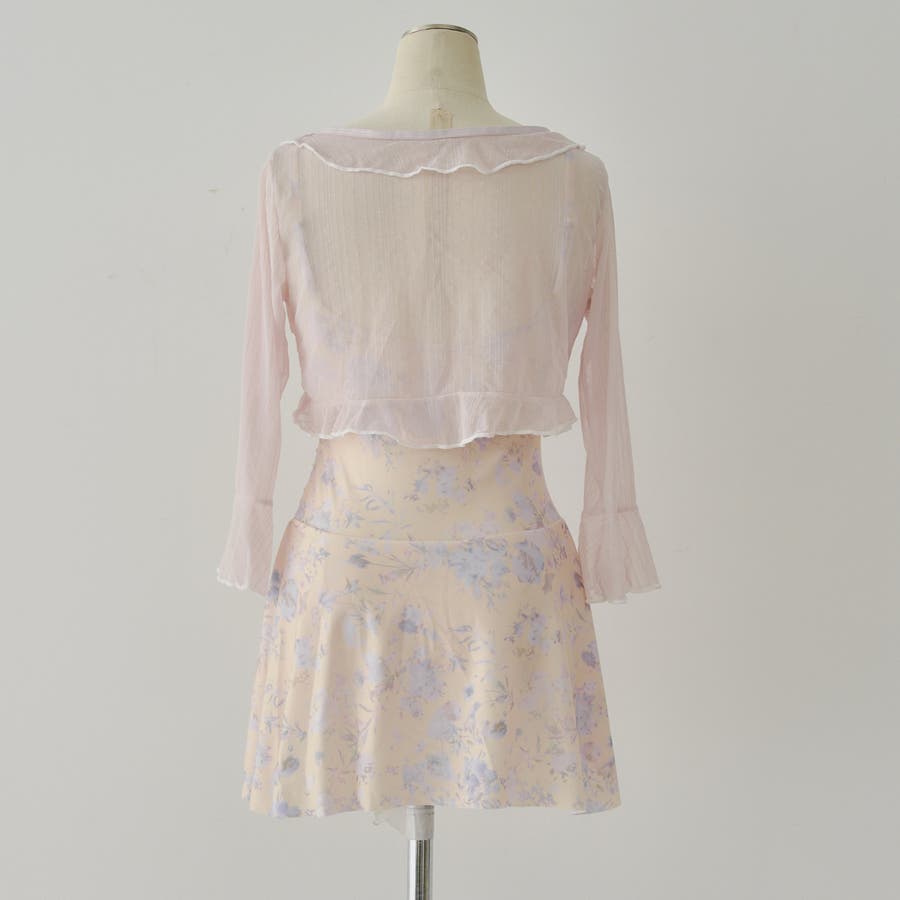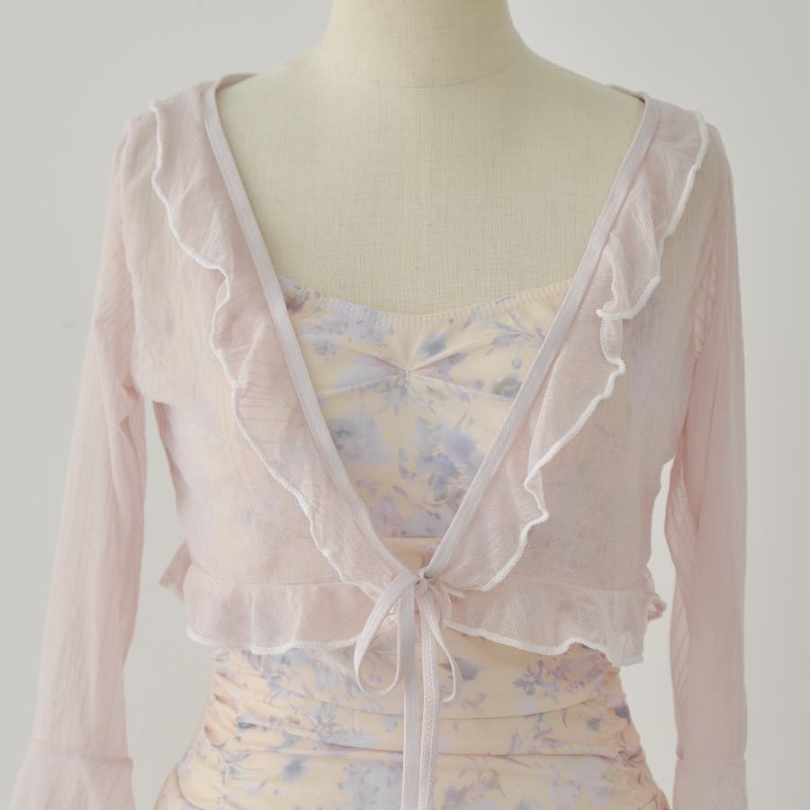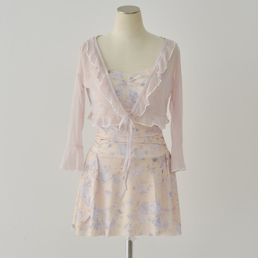 ・キャミタイプのワンピース水着とシアーのフリルボレロの2点セット。