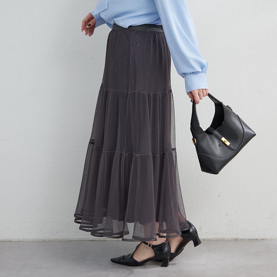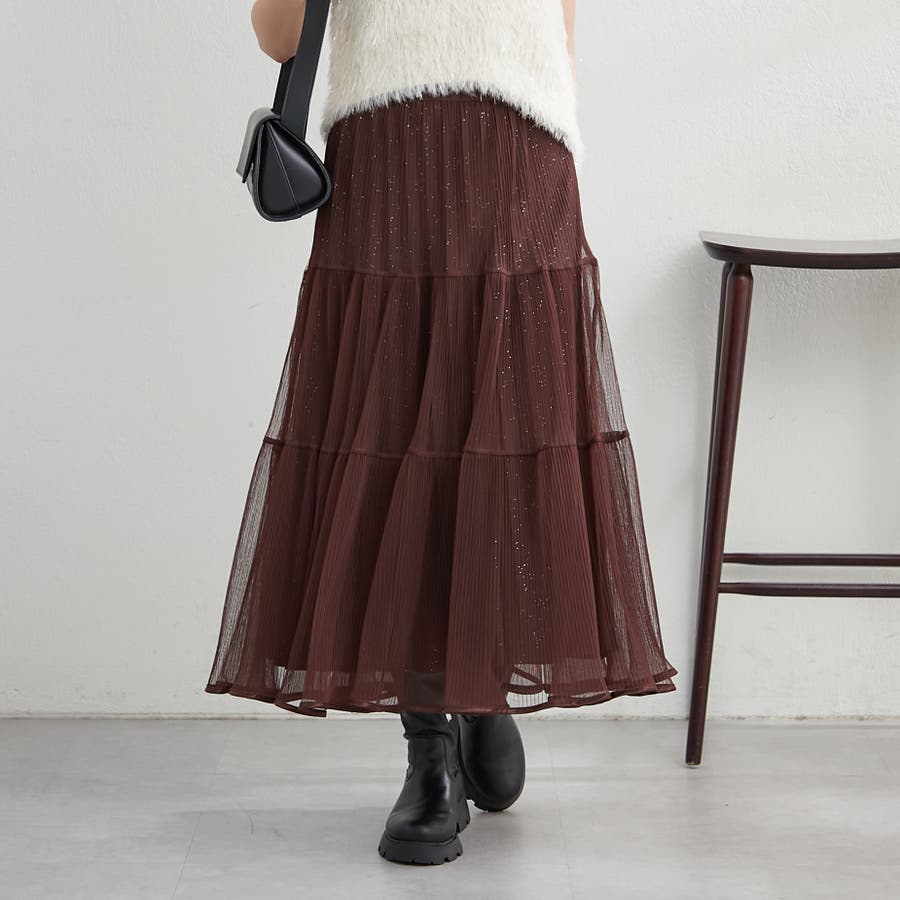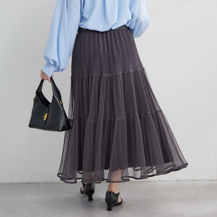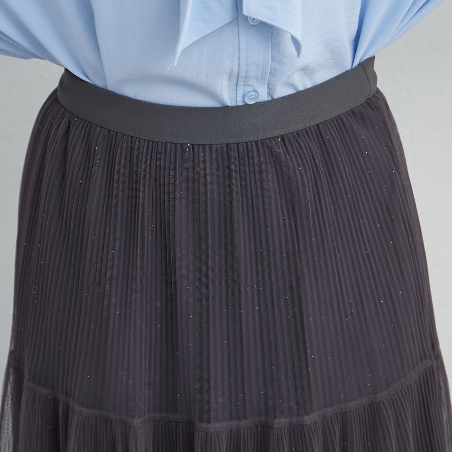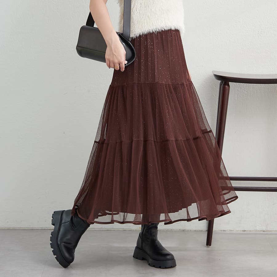 ・きらきらとしたラメ入り素材のチュールスカート。