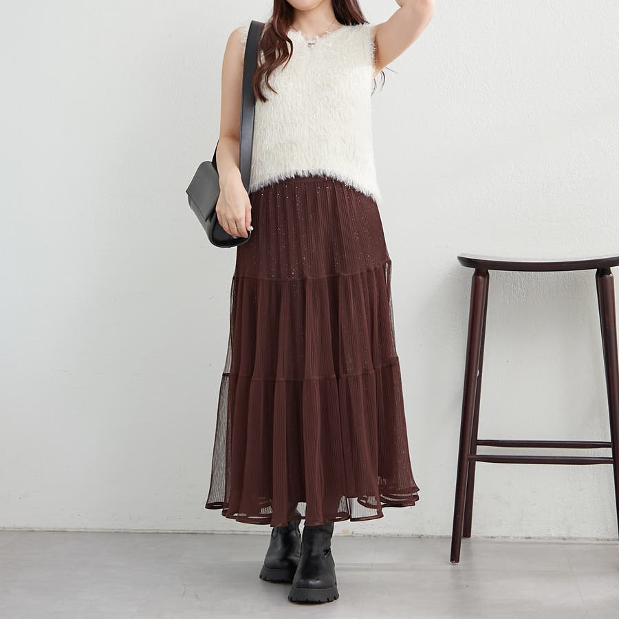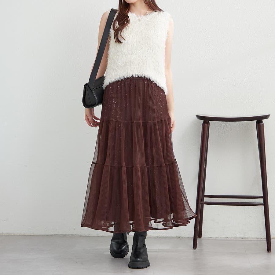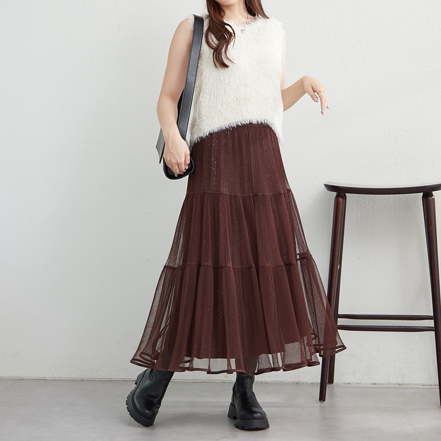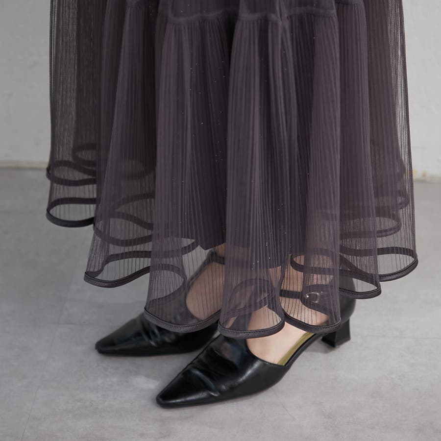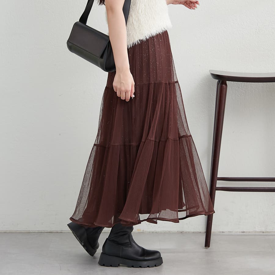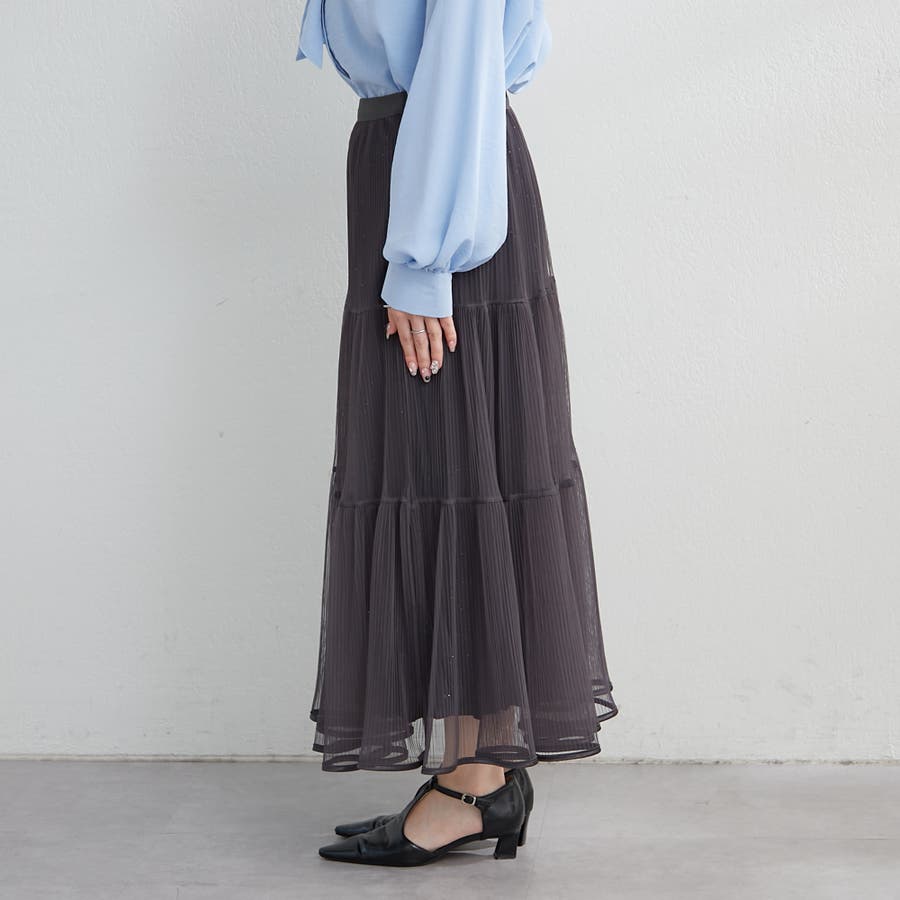 ・きらきらとしたラメ入り素材のチュールスカート。