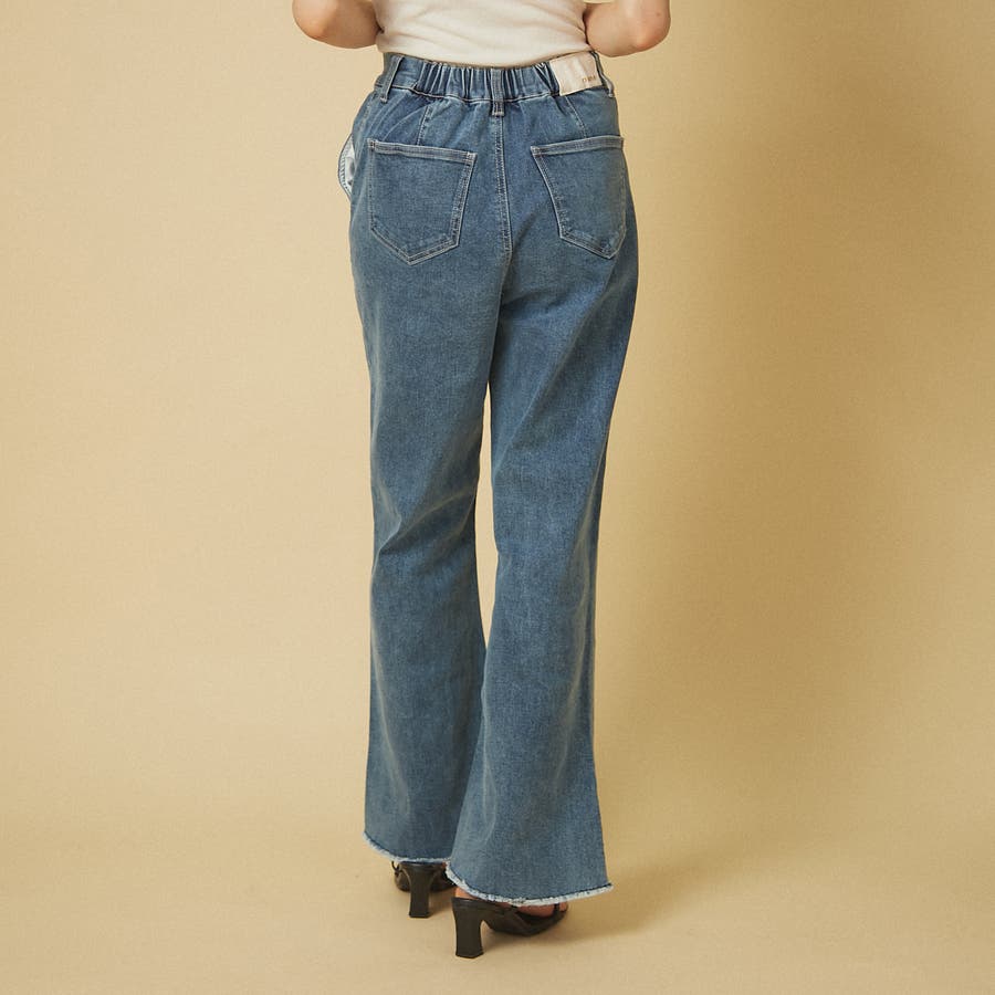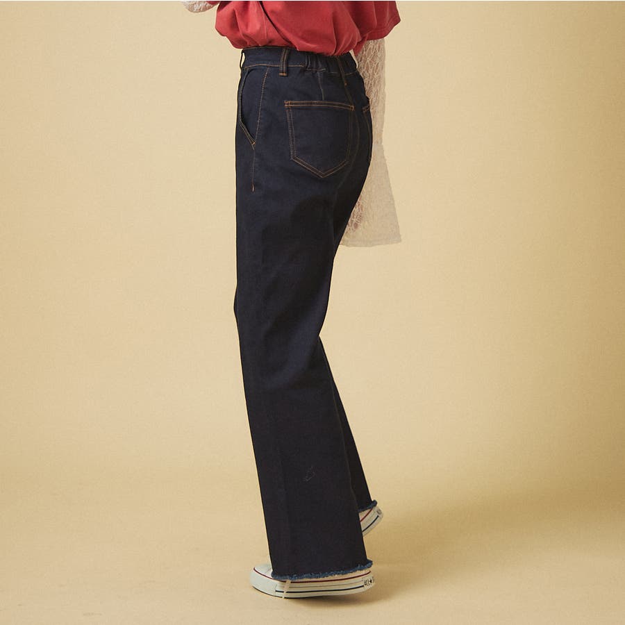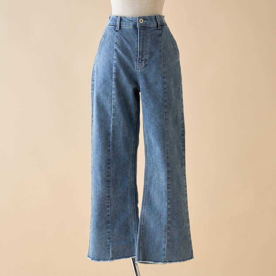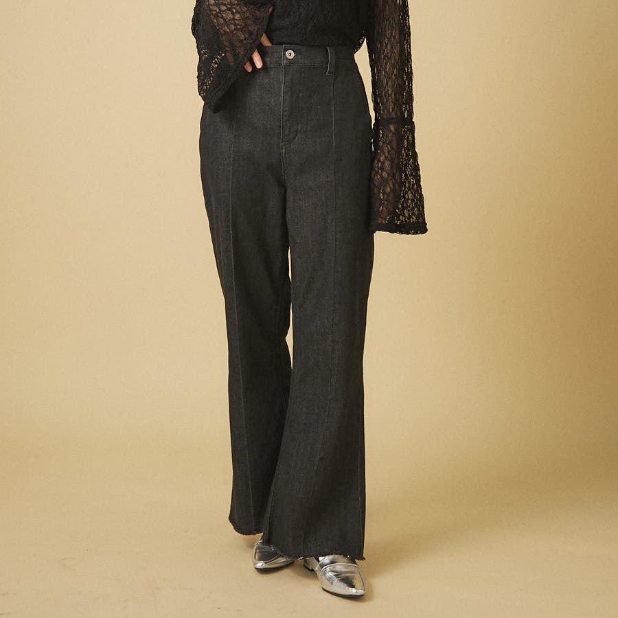 ・裾にかけて少しだけ広がるセミフレアの美シルエットデニムパンツ