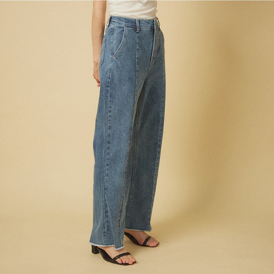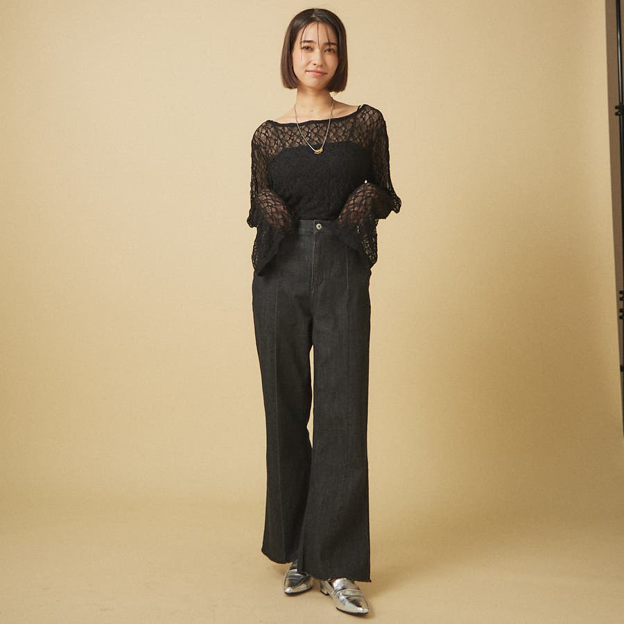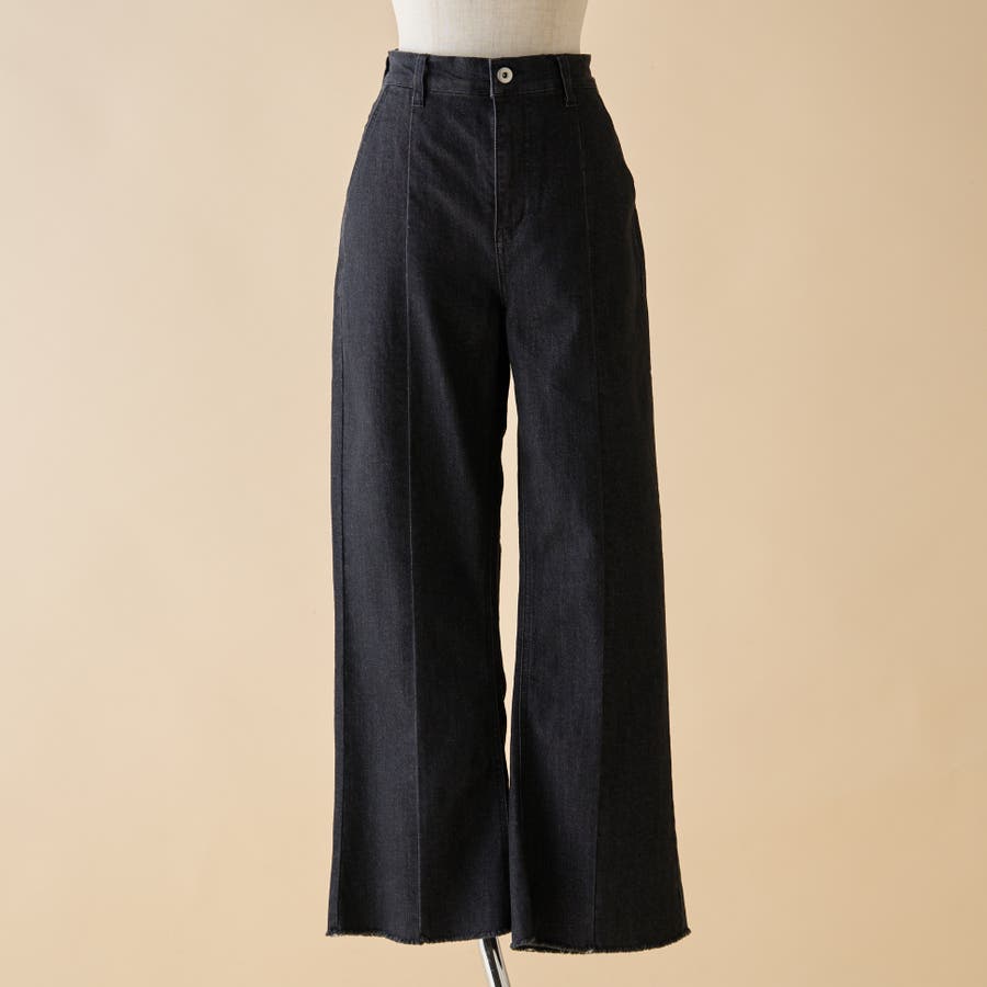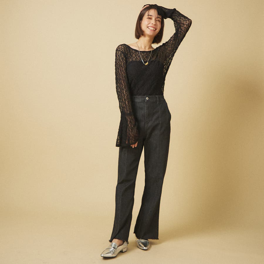 ・裾にかけて少しだけ広がるセミフレアの美シルエットデニムパンツ