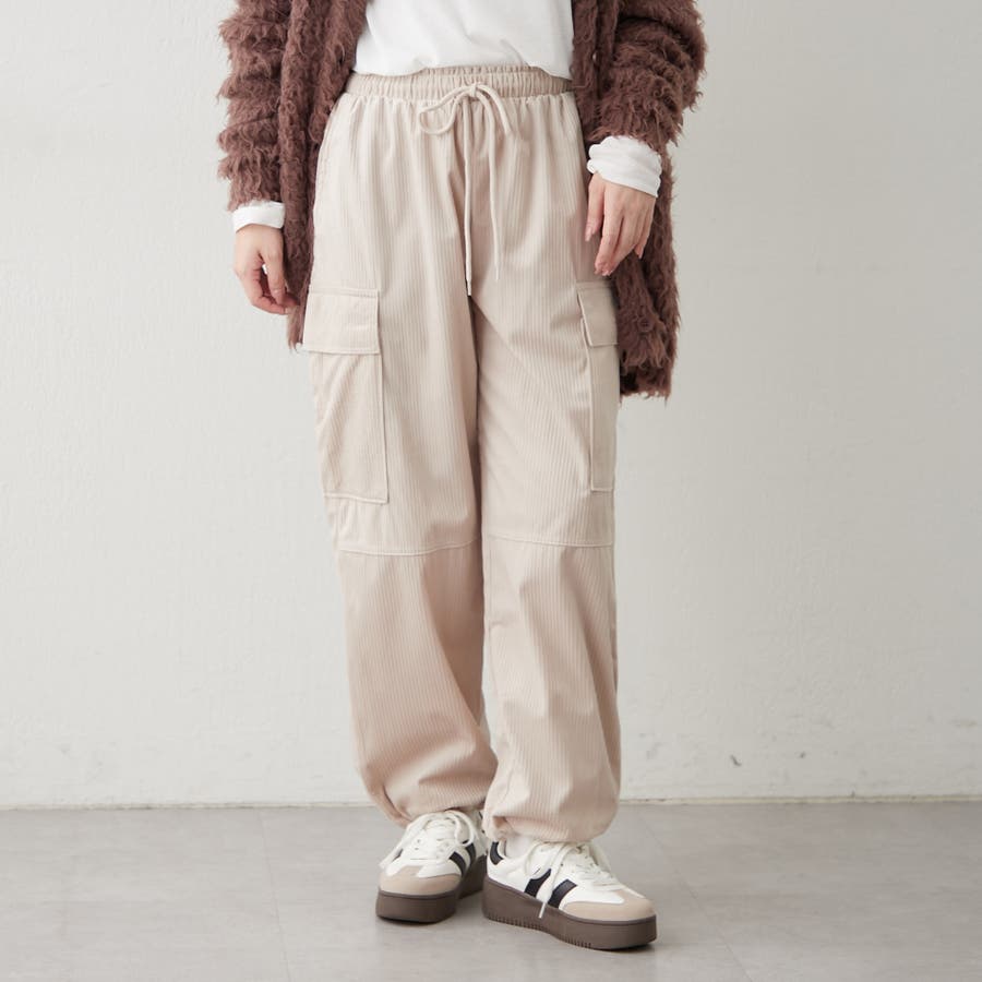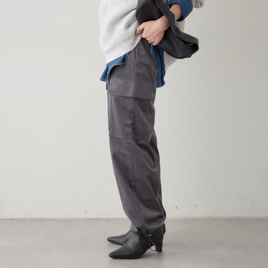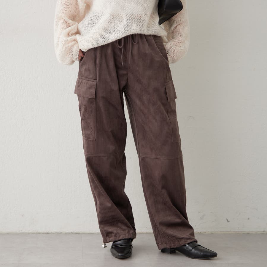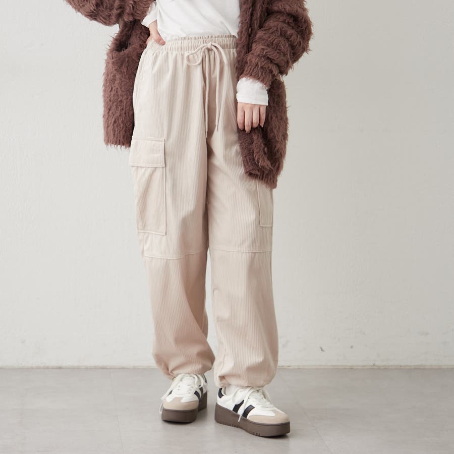 ・秋冬におすすめなコール素材のカーゴパンツ。