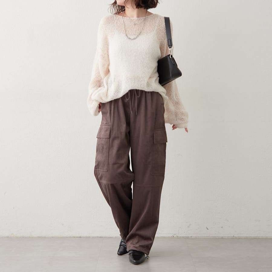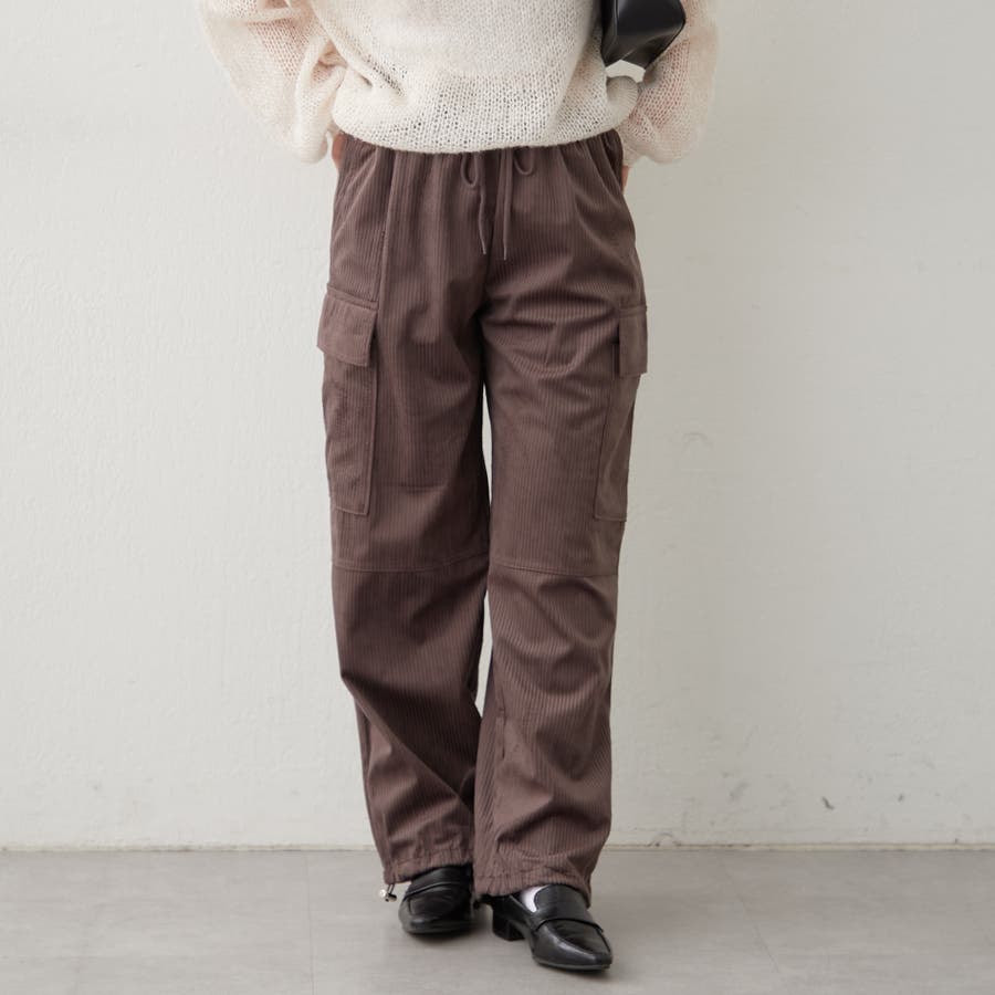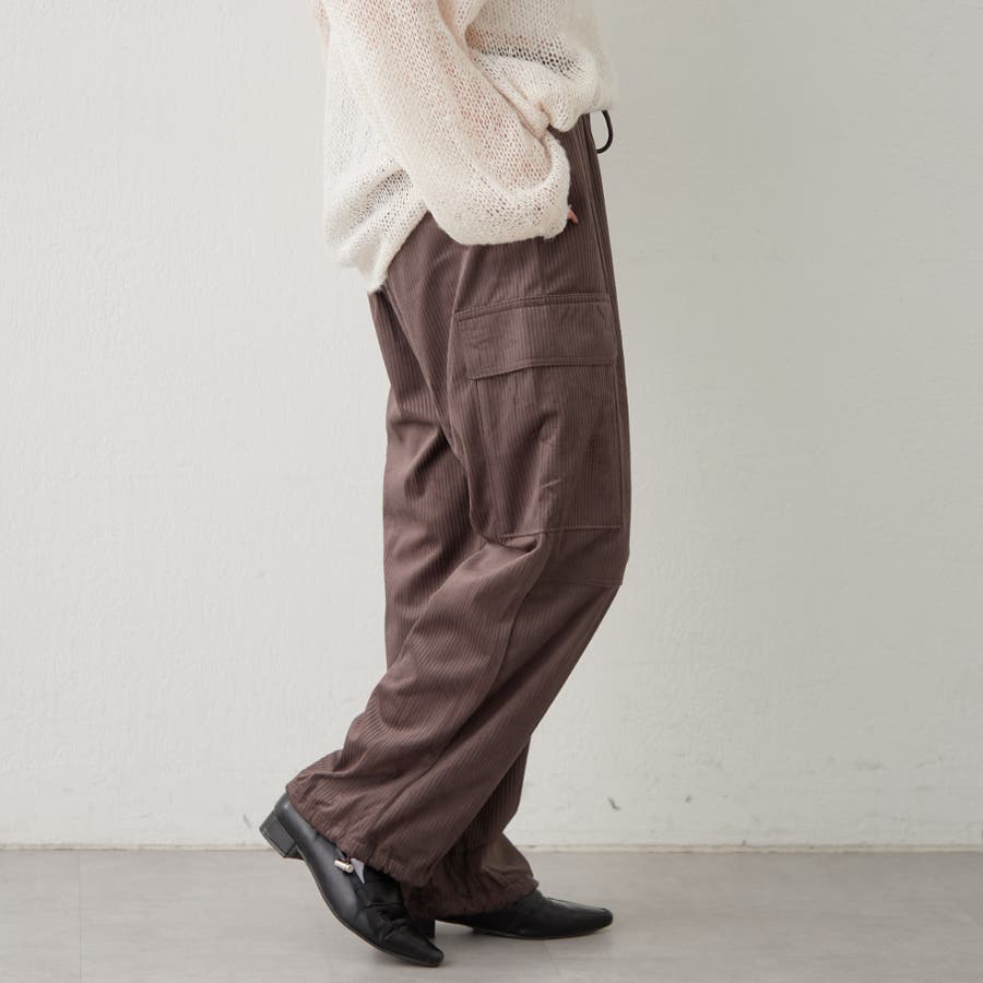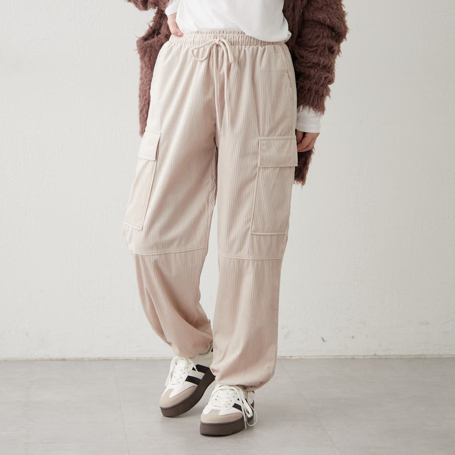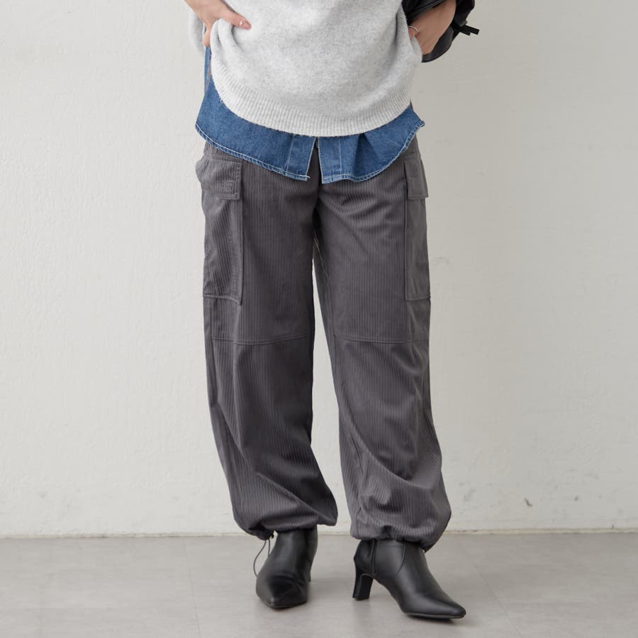・秋冬におすすめなコール素材のカーゴパンツ。