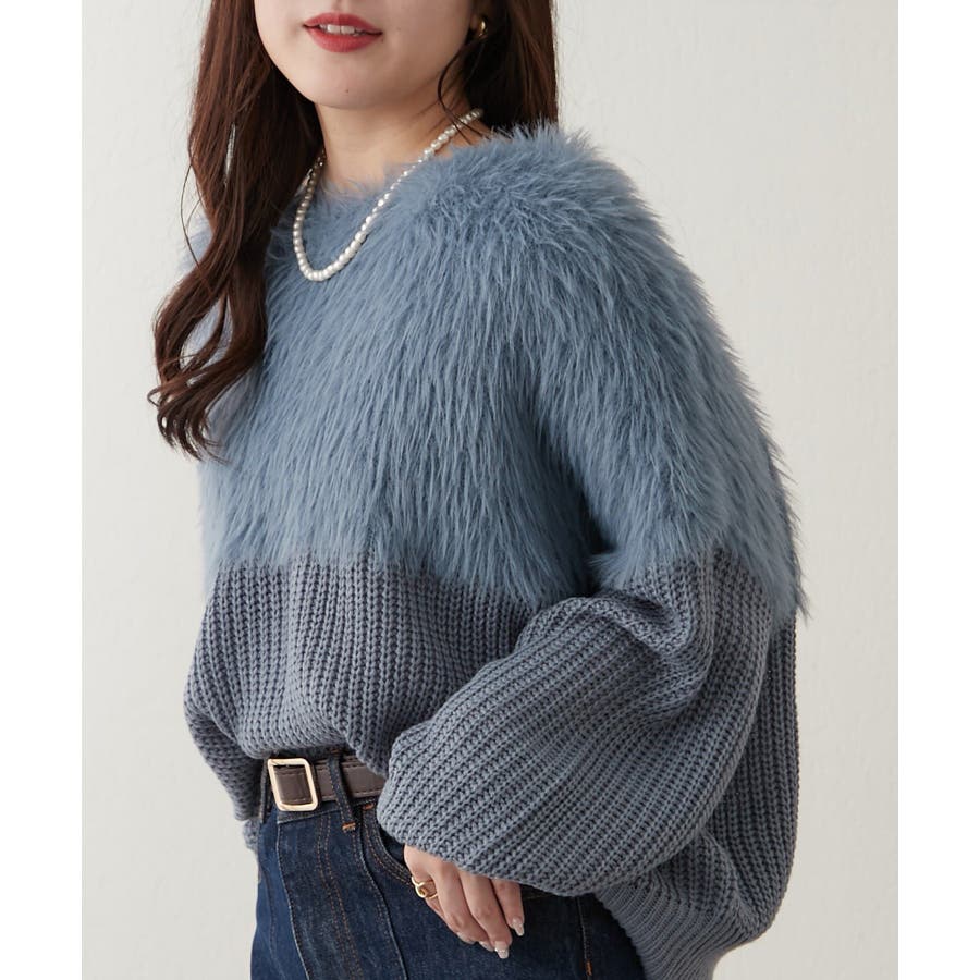 ・ふわふわっとしたシャギーと畦編みニットの切替がポイント