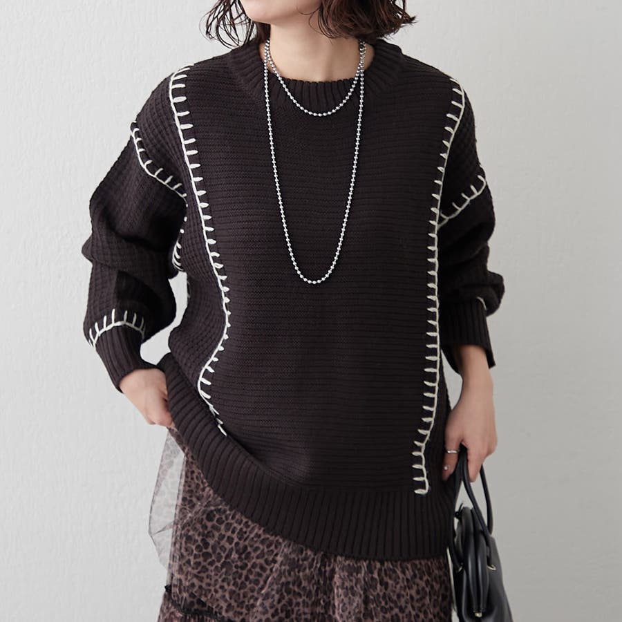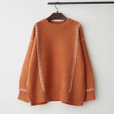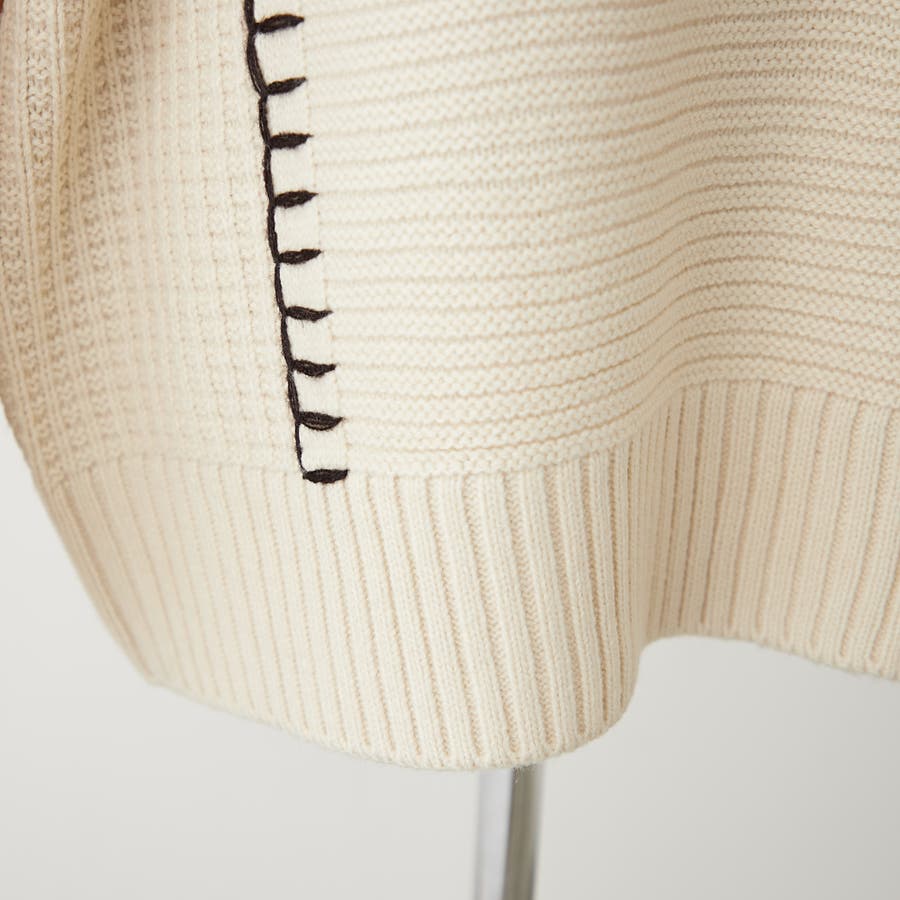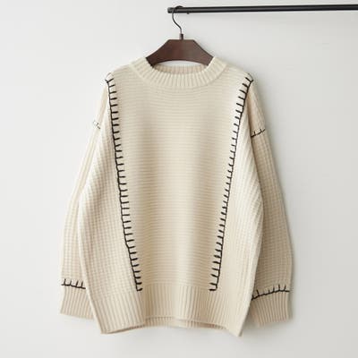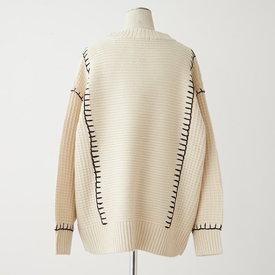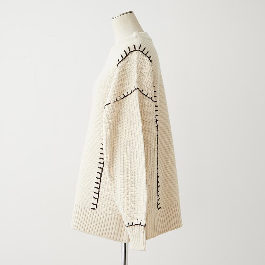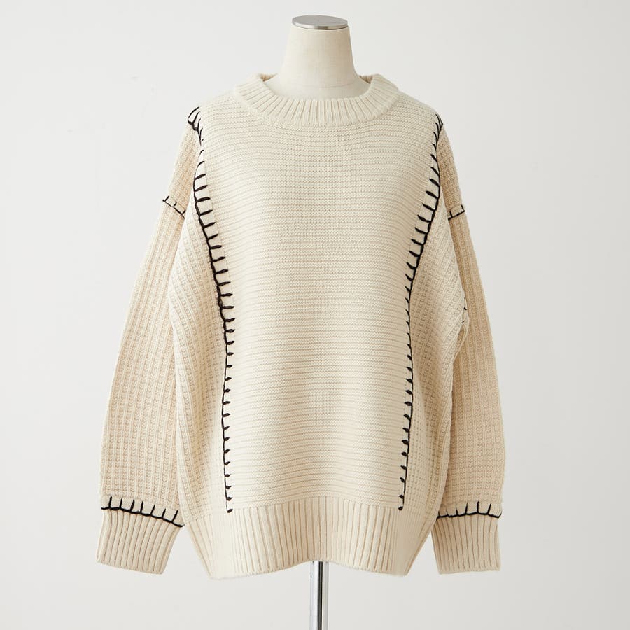 ・ざっくりとした編み地と、大胆なステッチが目を引くニットプルオーバー