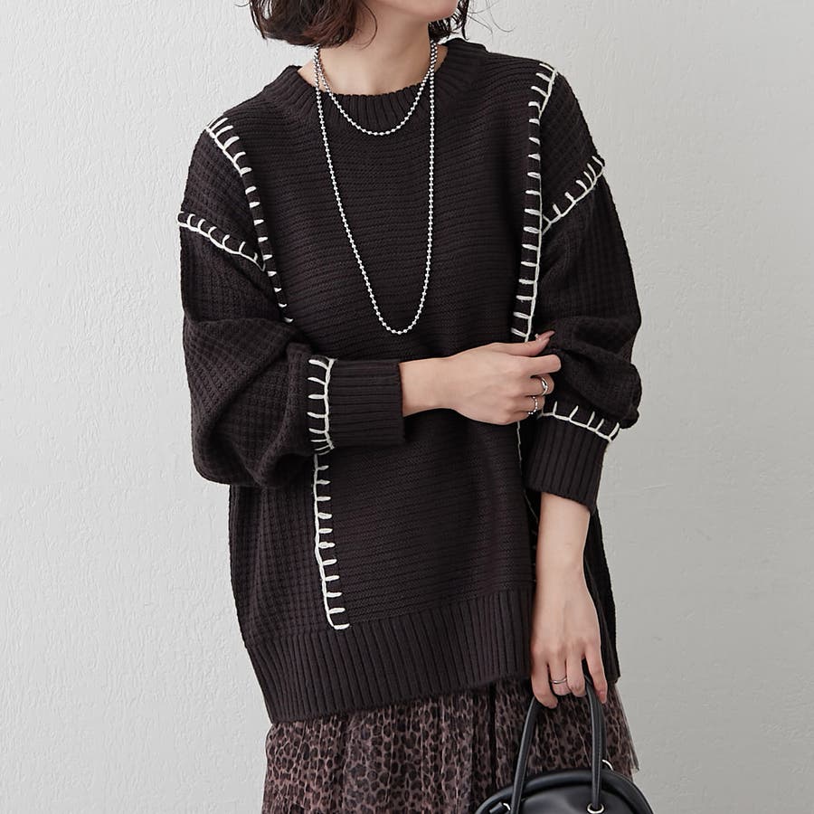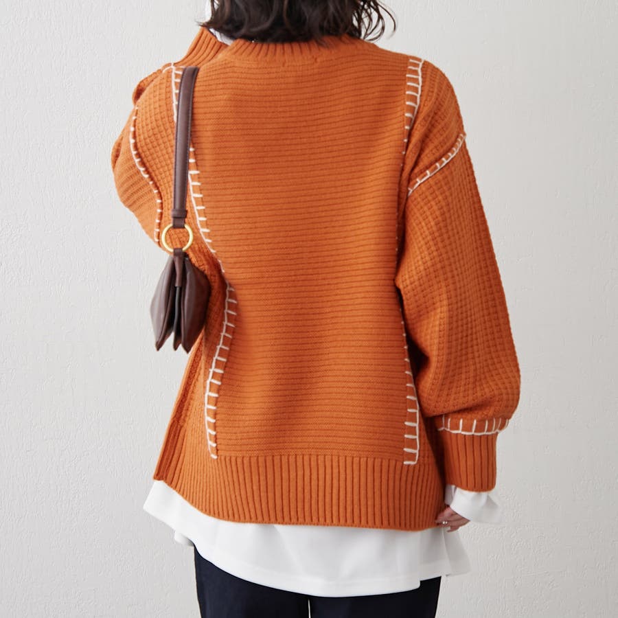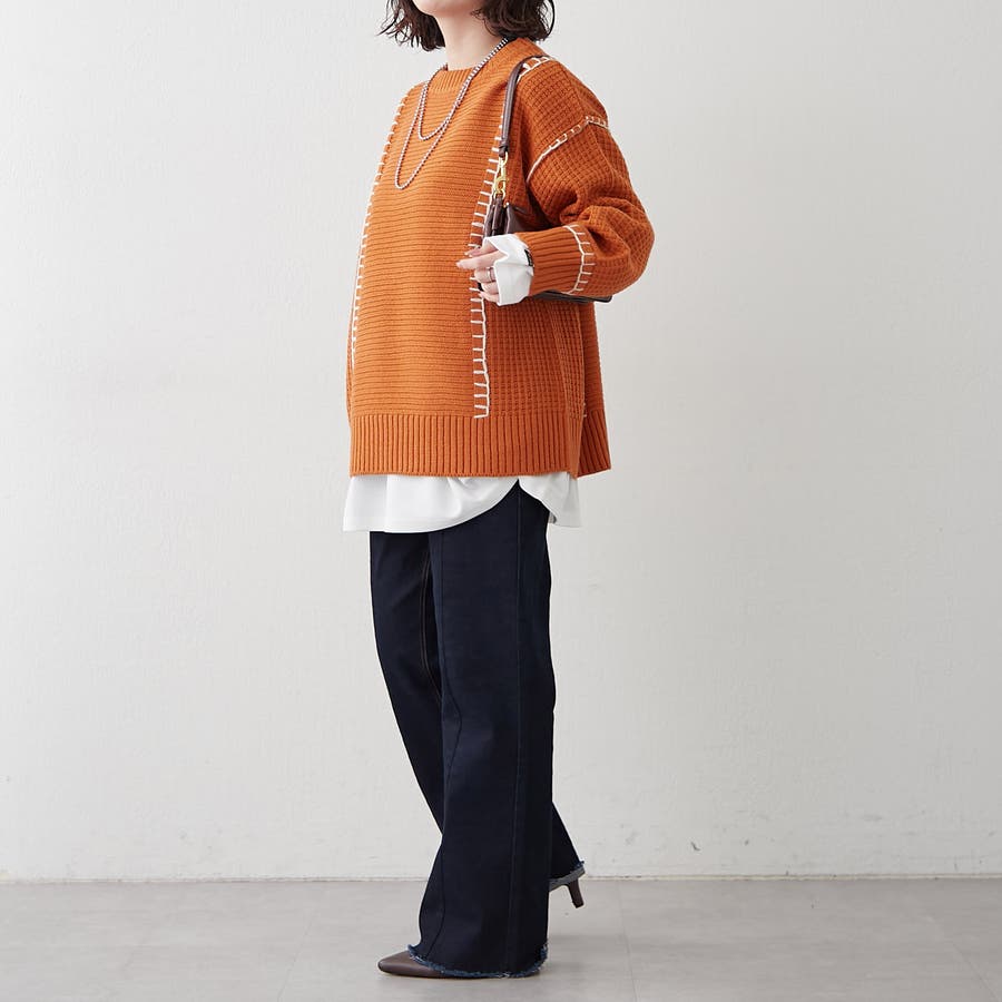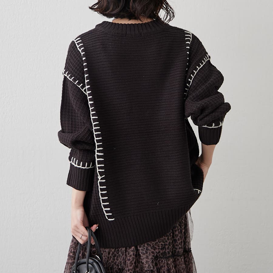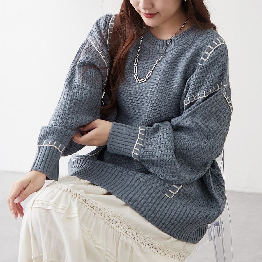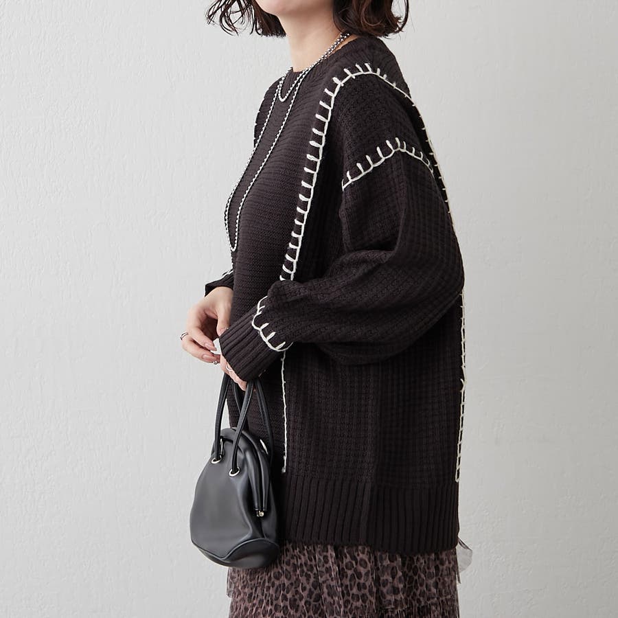 ・ざっくりとした編み地と、大胆なステッチが目を引くニットプルオーバー