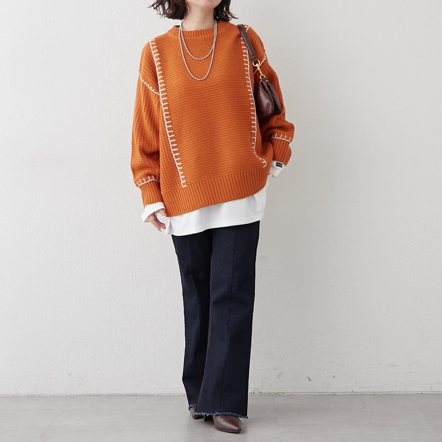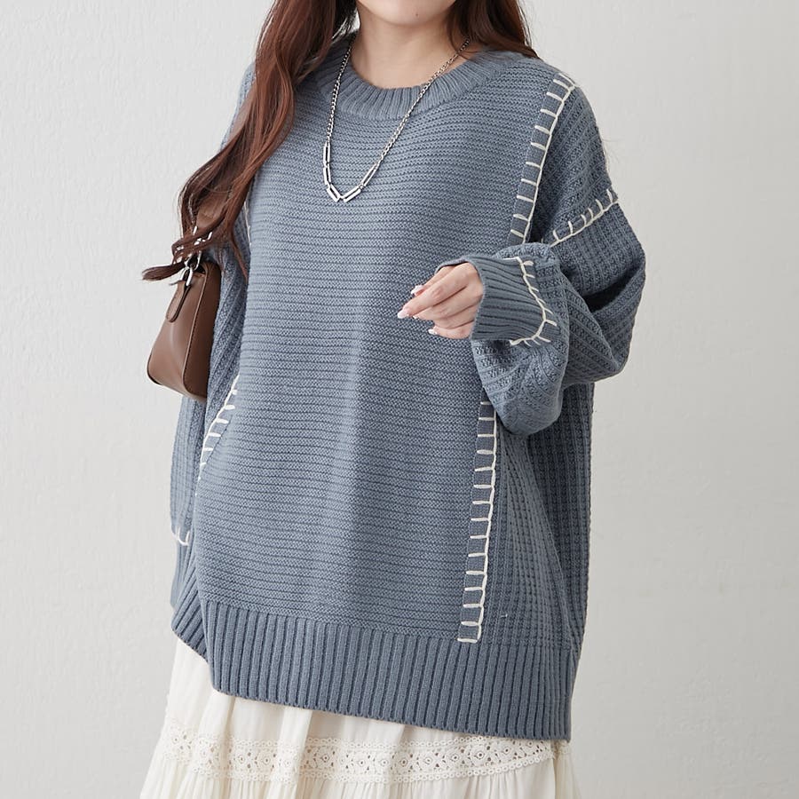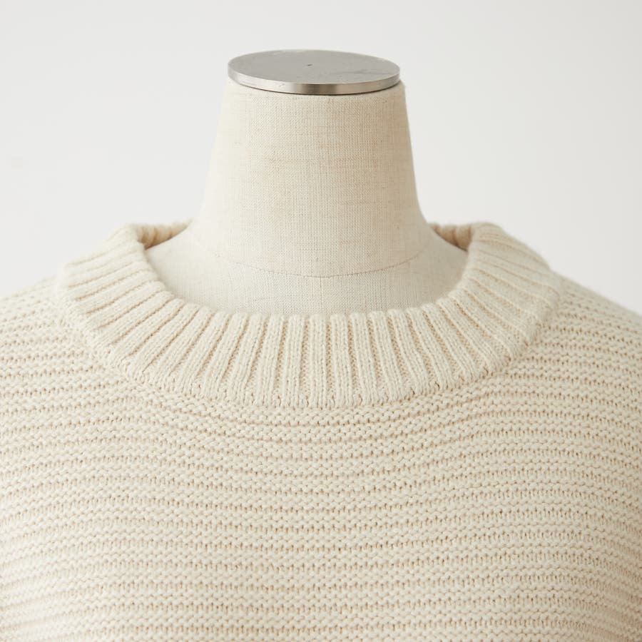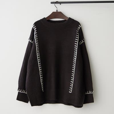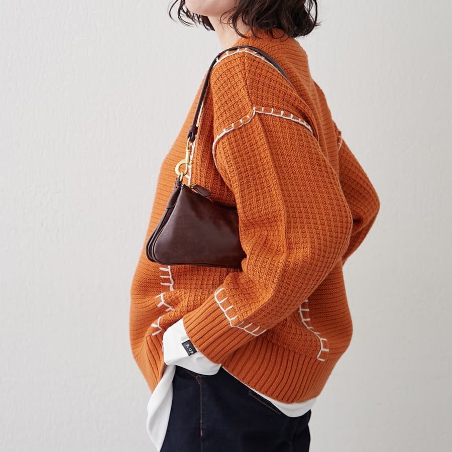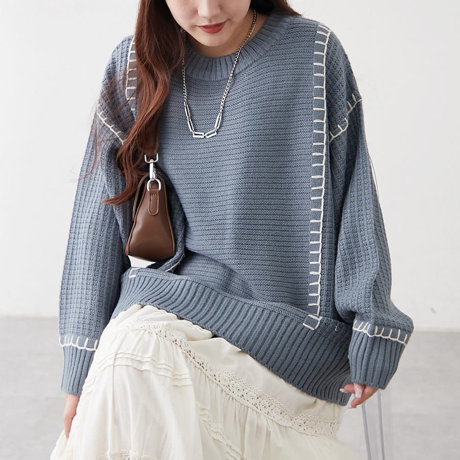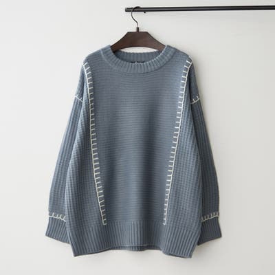 ・ざっくりとした編み地と、大胆なステッチが目を引くニットプルオーバー