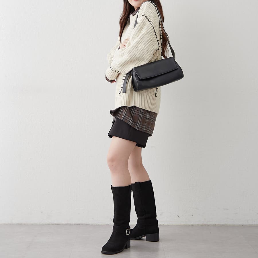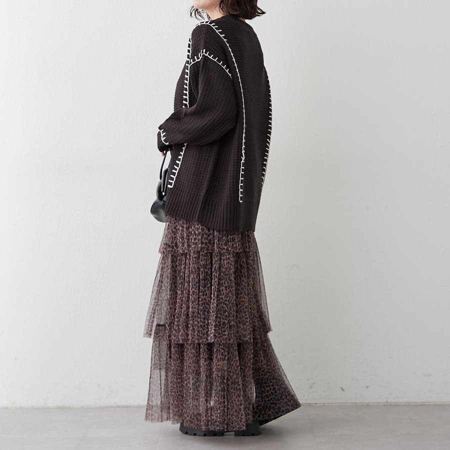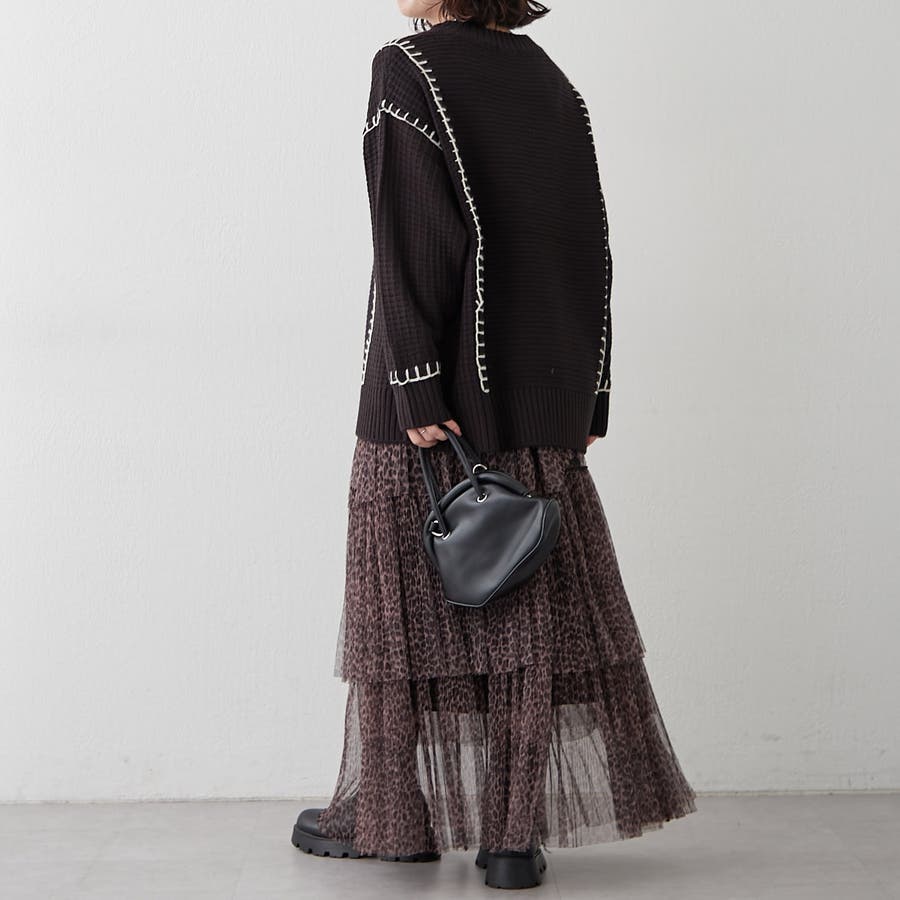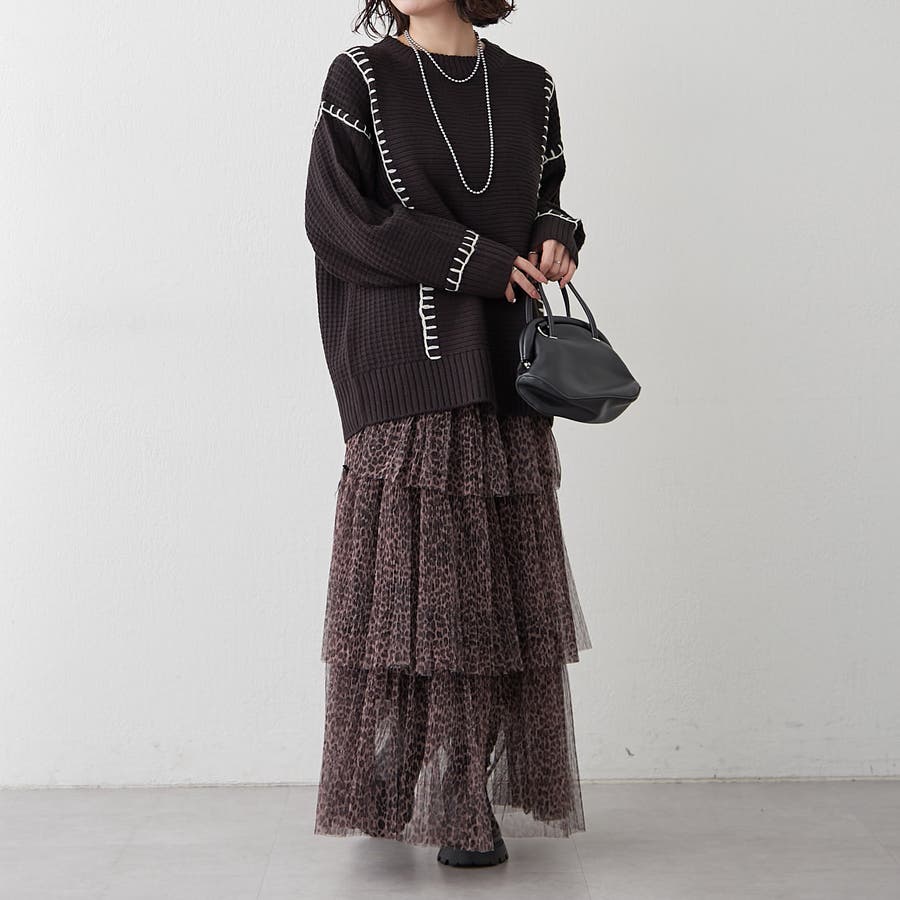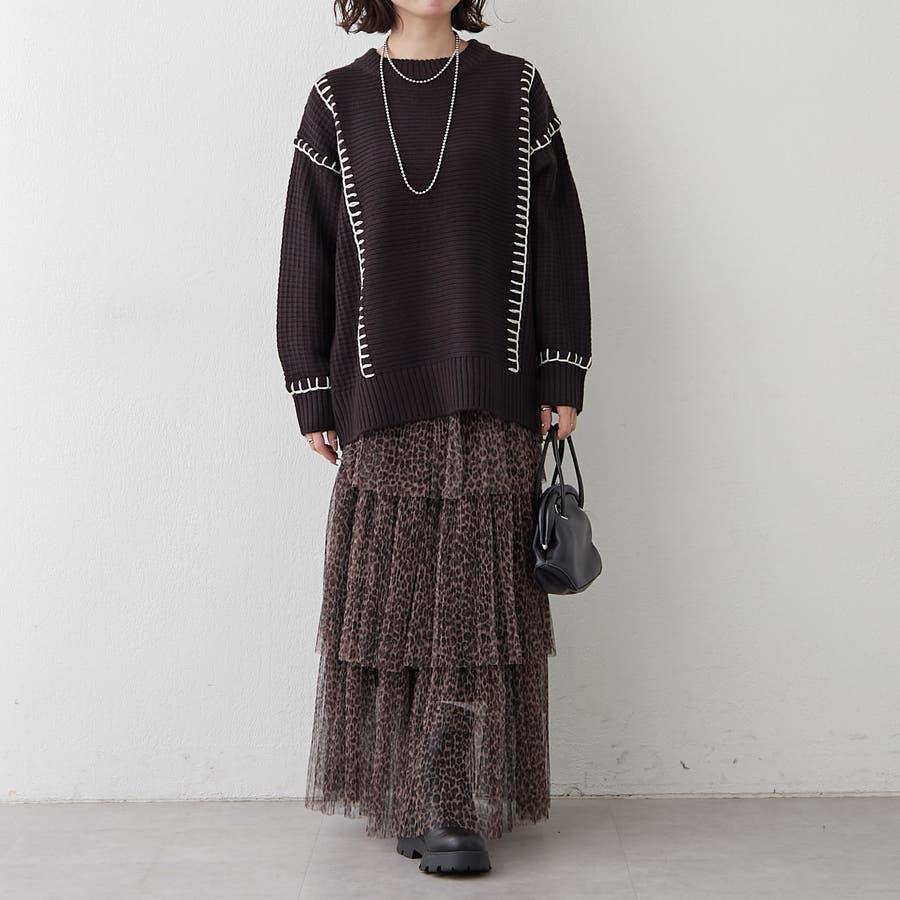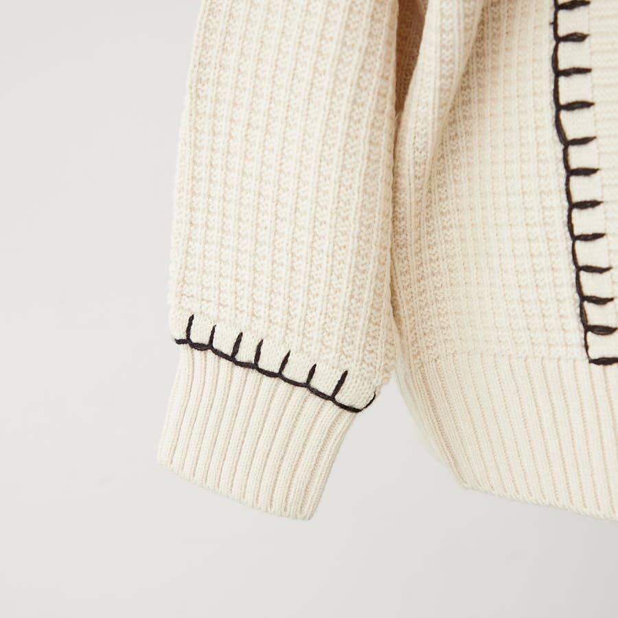 ・ざっくりとした編み地と、大胆なステッチが目を引くニットプルオーバー