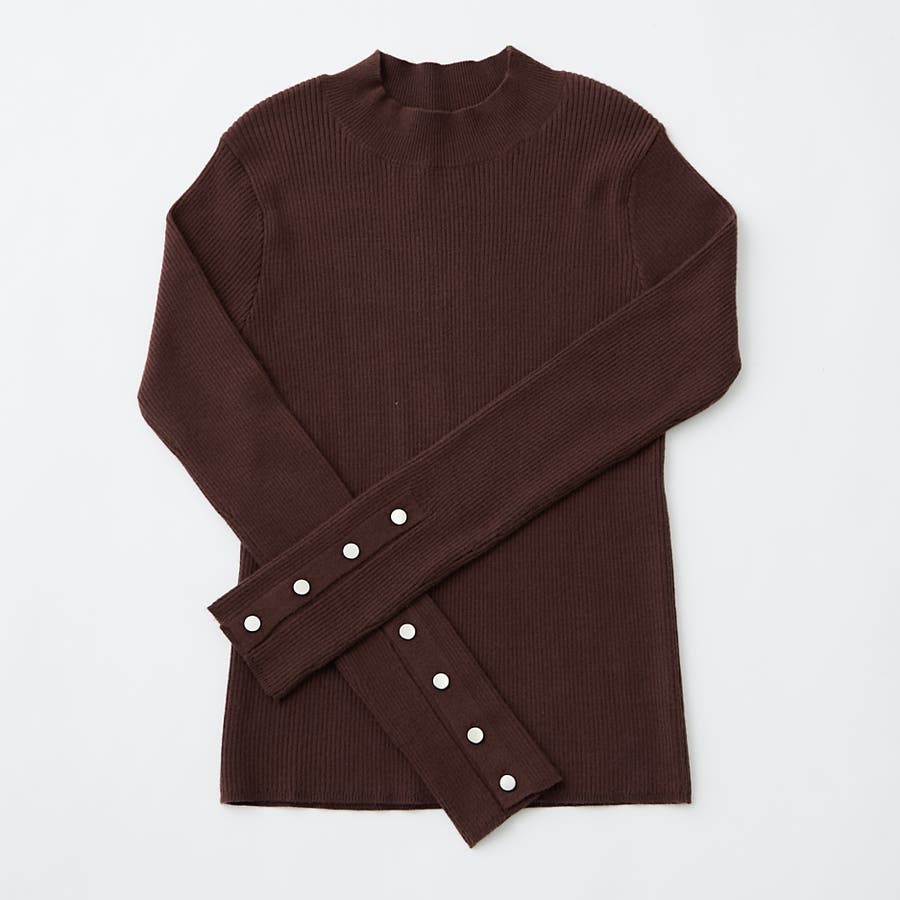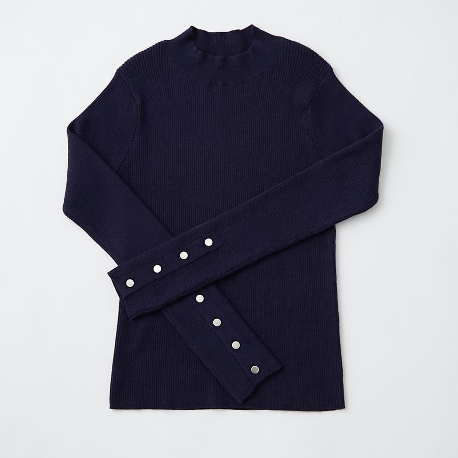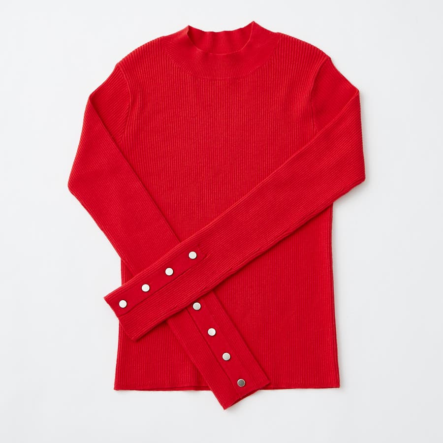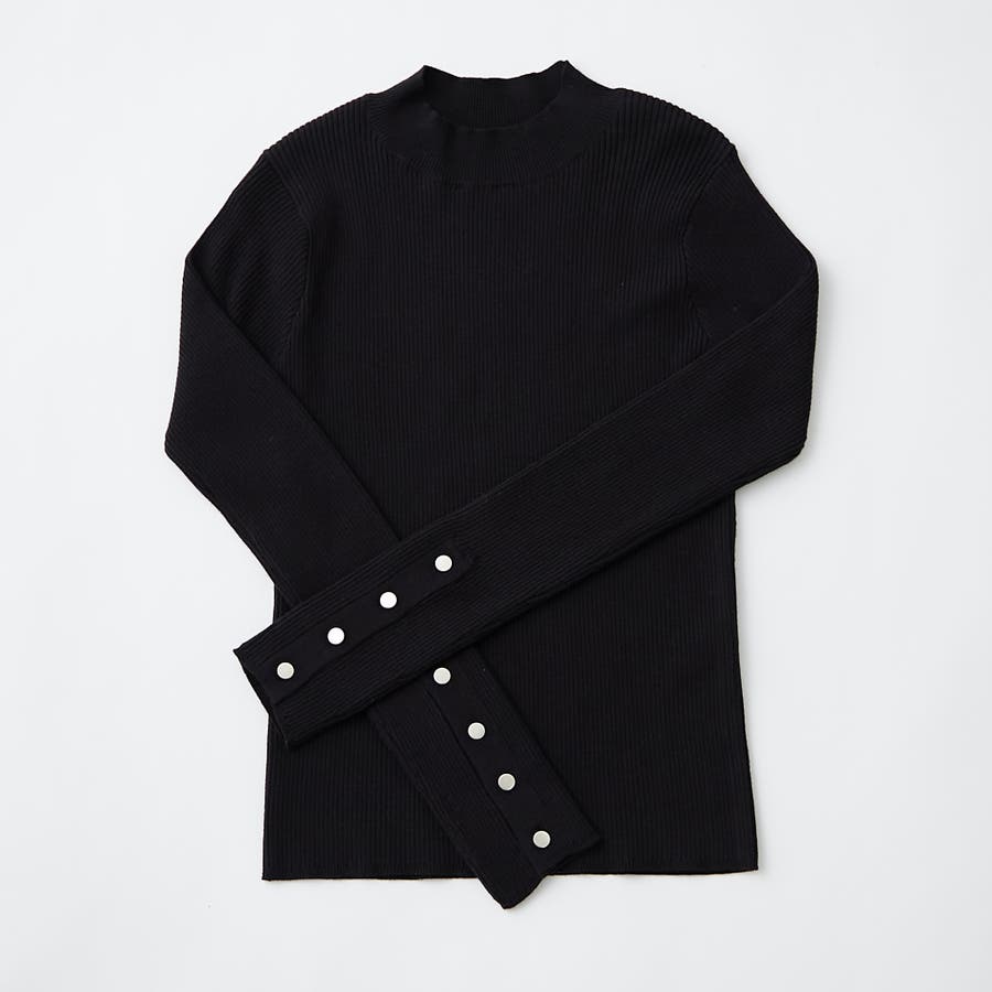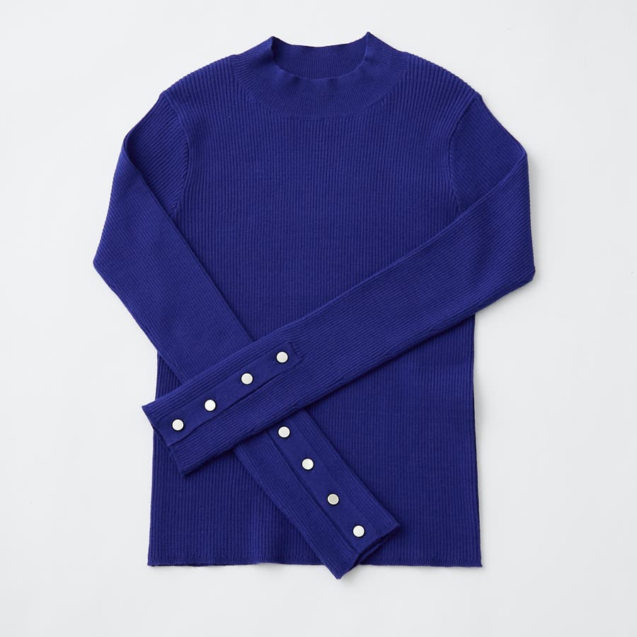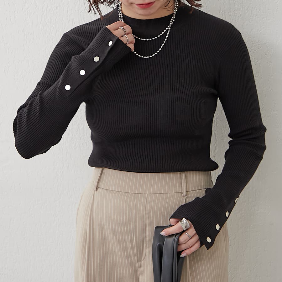 【8色展開】袖ボタンハイネックリブプルオーバー