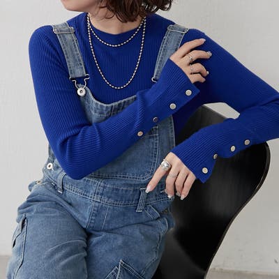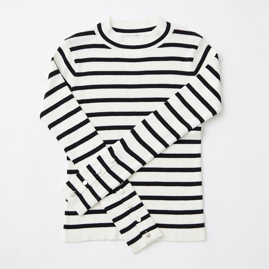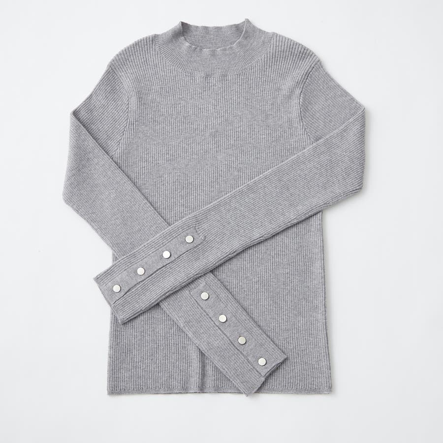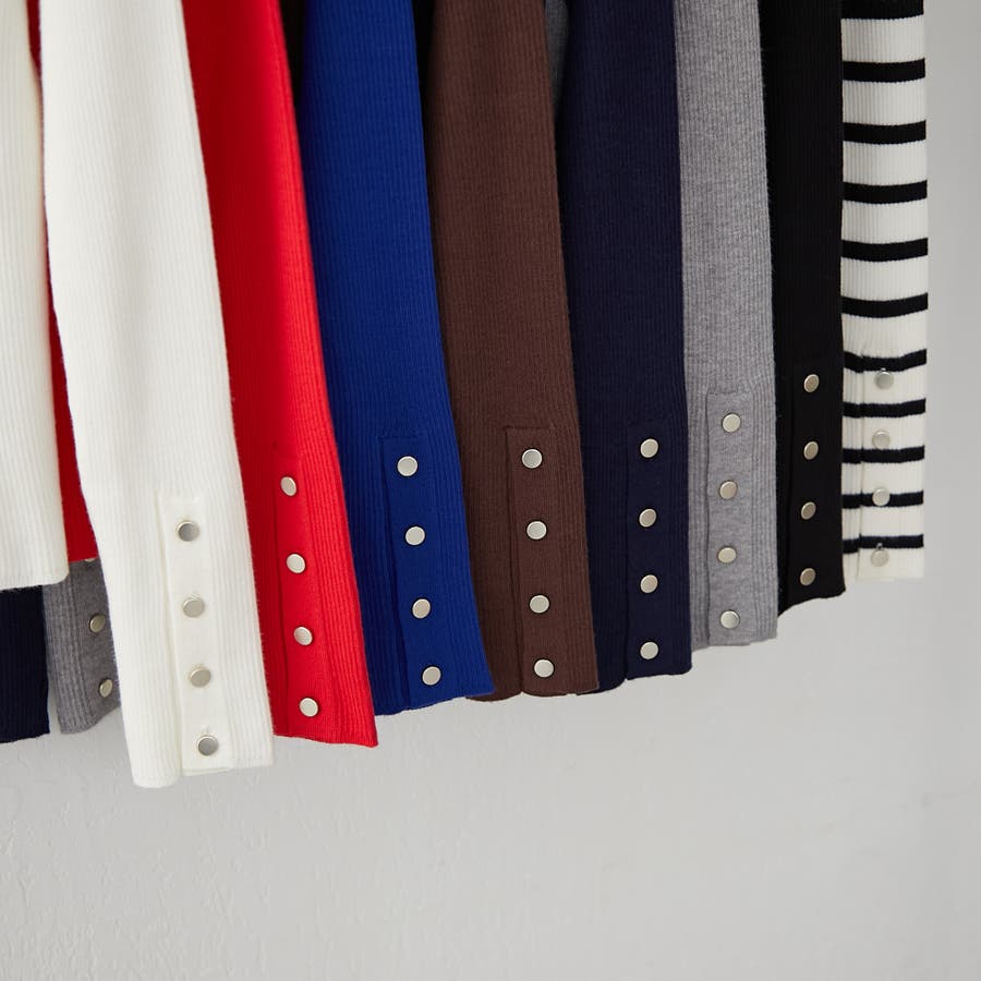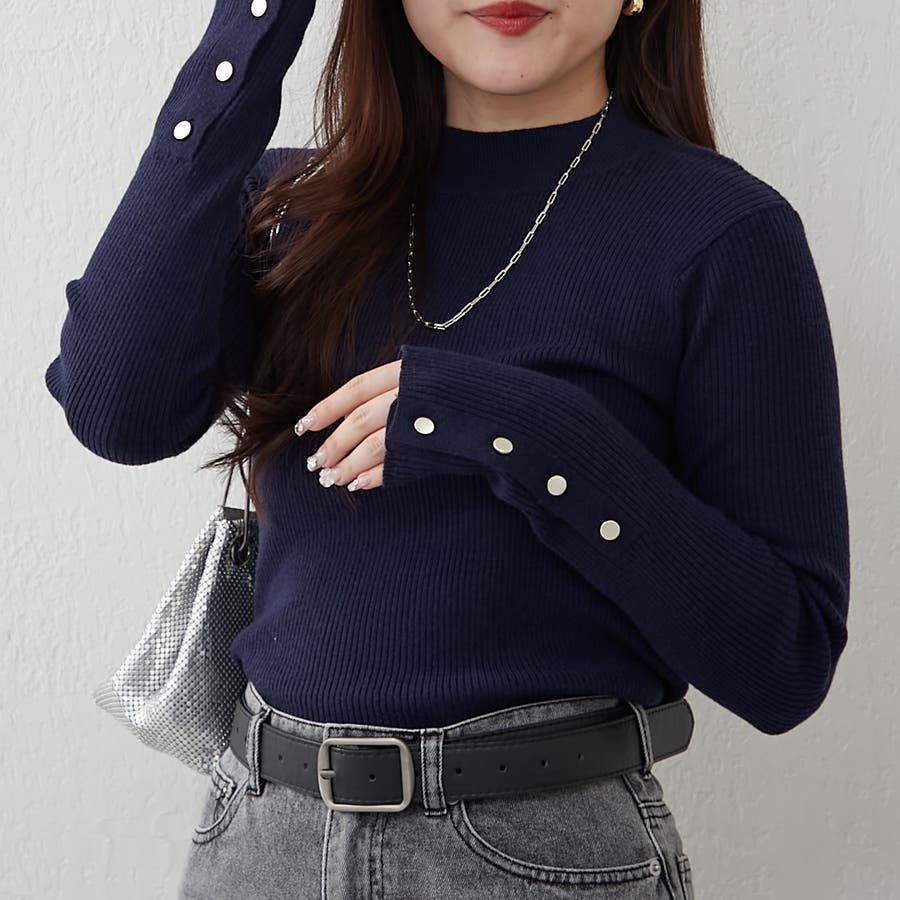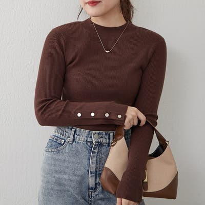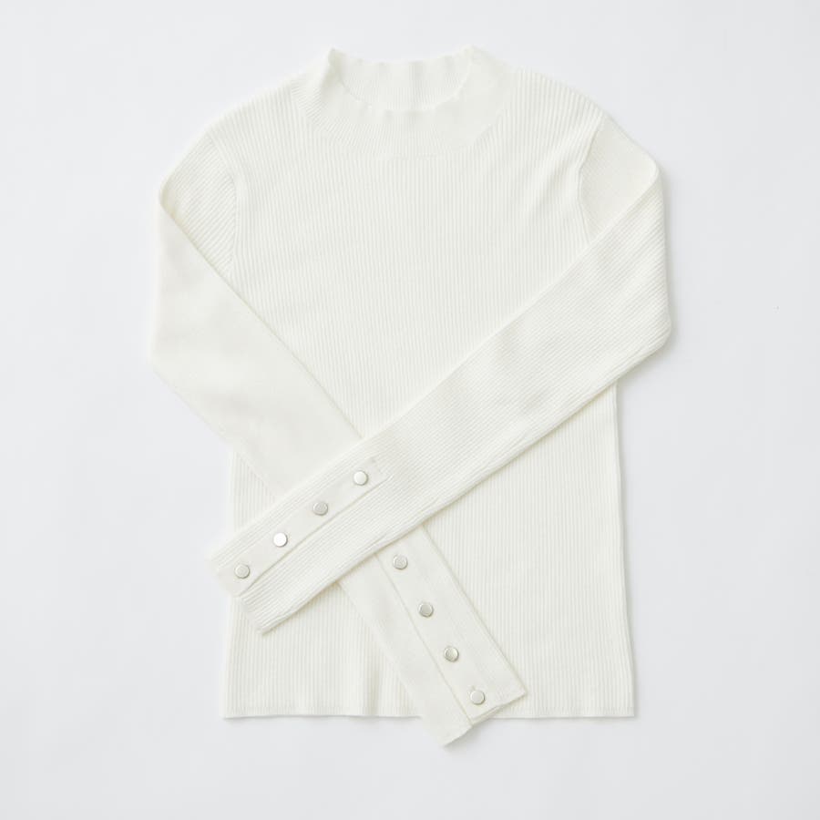 【8色展開】袖ボタンハイネックリブプルオーバー