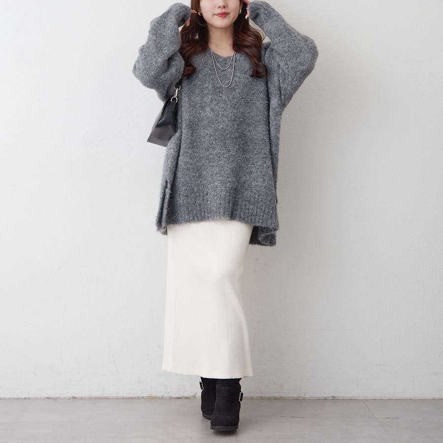 ・ゆったりとしたサイズ感なのでフレアデニムやナロースカートでメリハリをつけたスタイリングがおすすめ!
