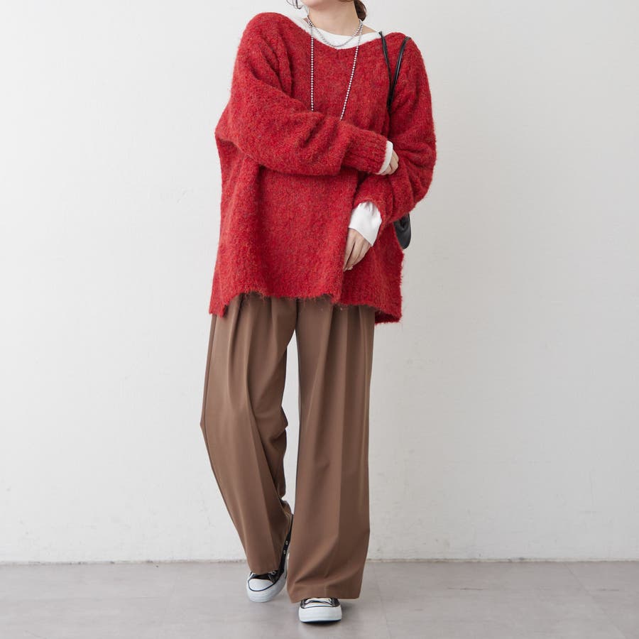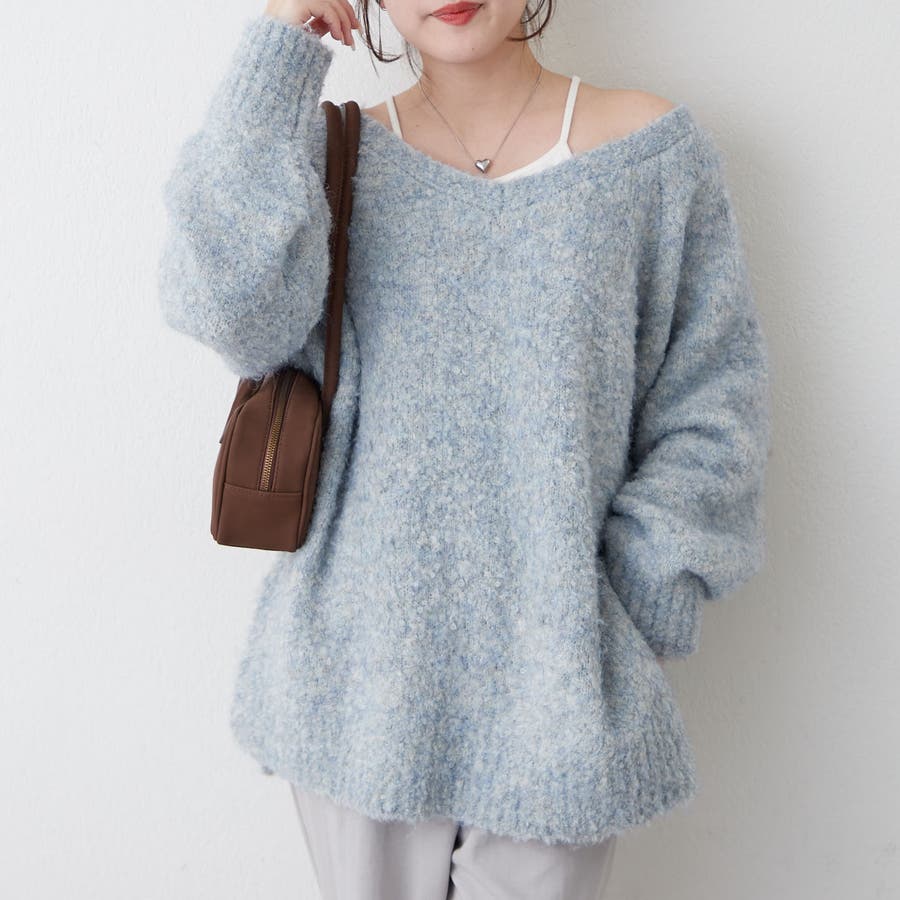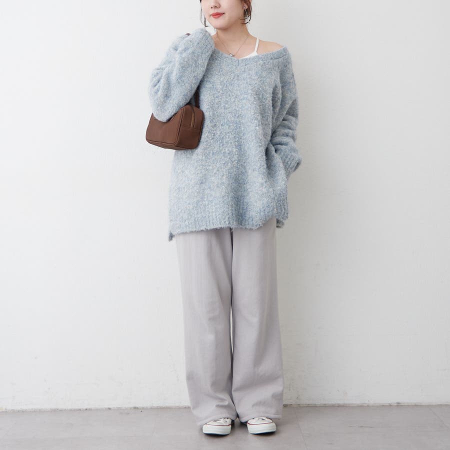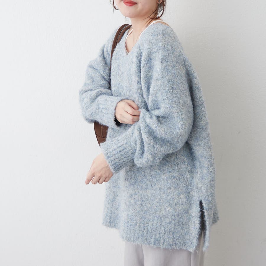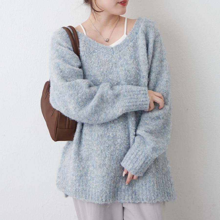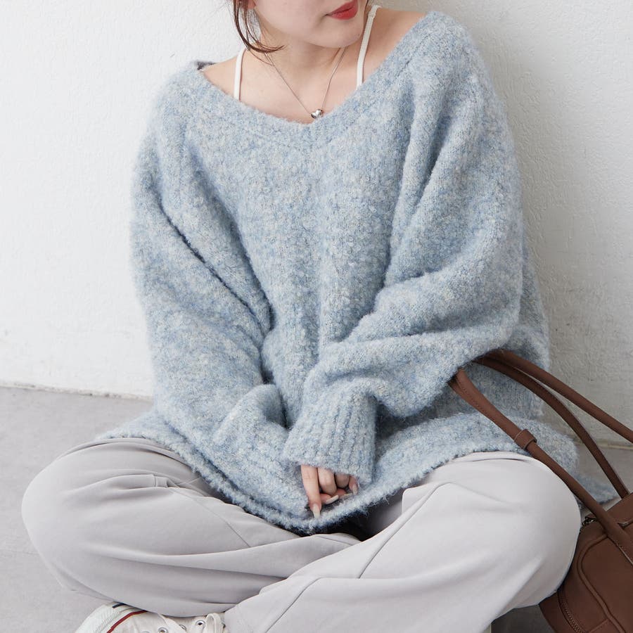 ・起毛がかったブークレ素材とMIXヤーンで表情豊かなニット