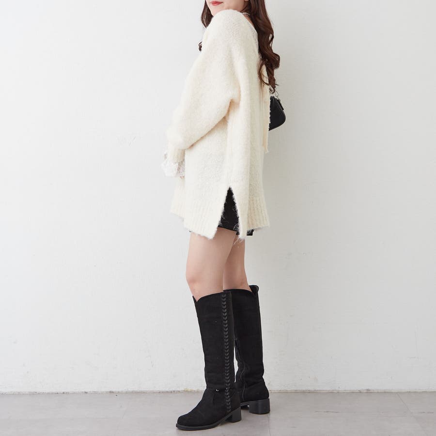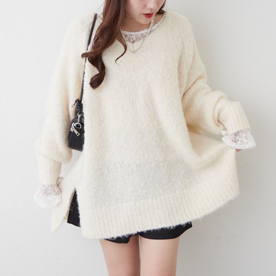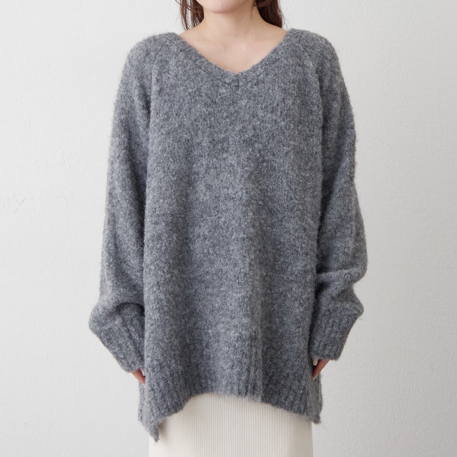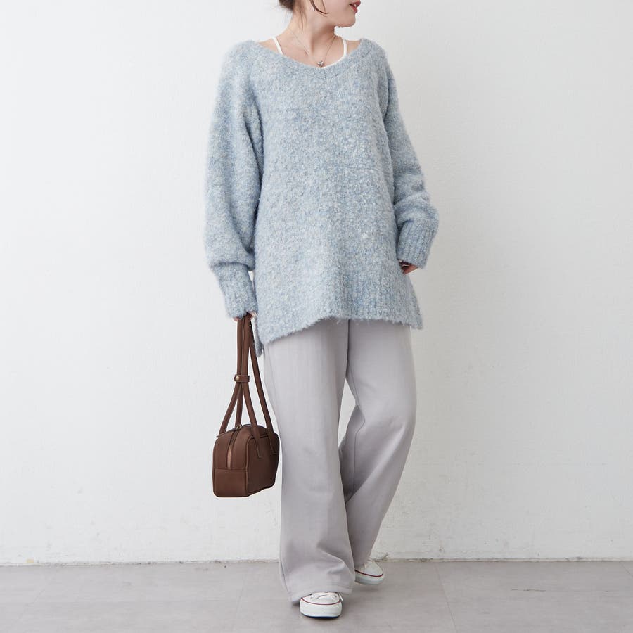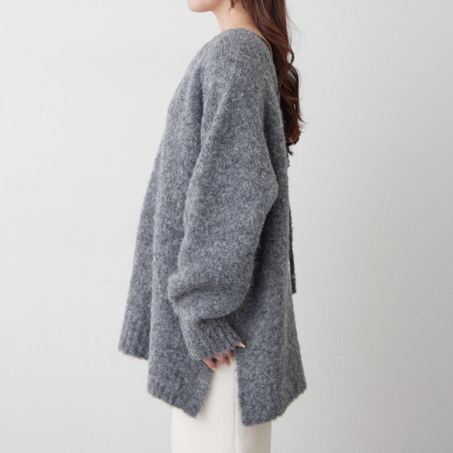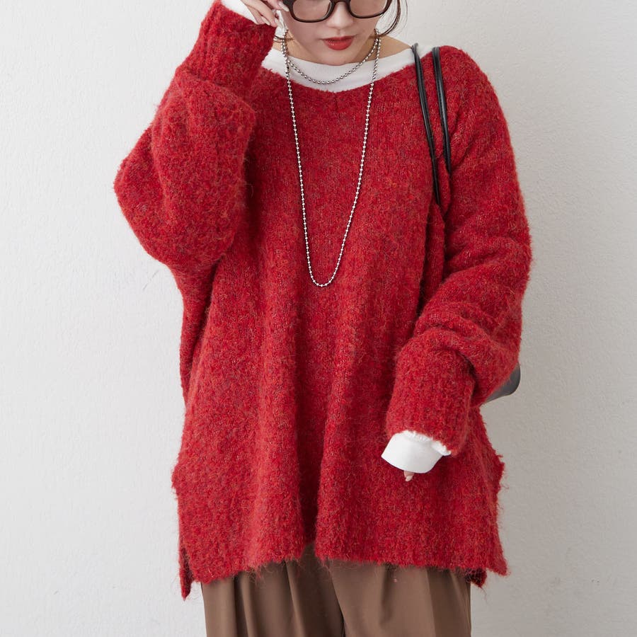 ・起毛がかったブークレ素材とMIXヤーンで表情豊かなニット