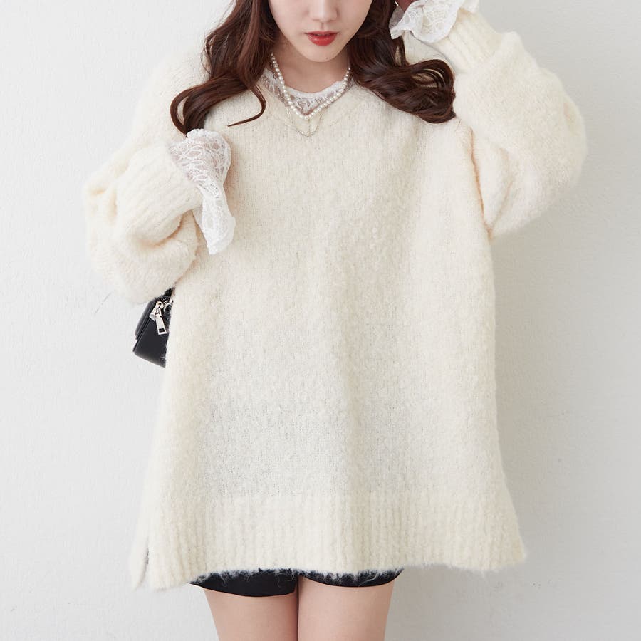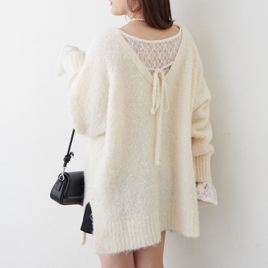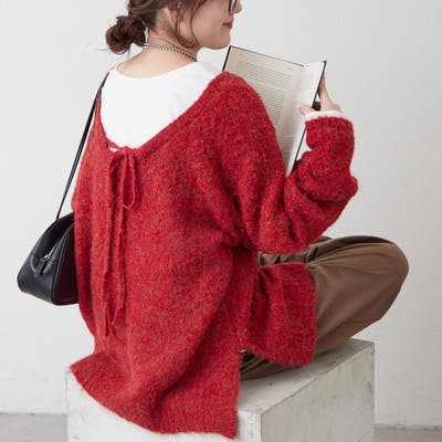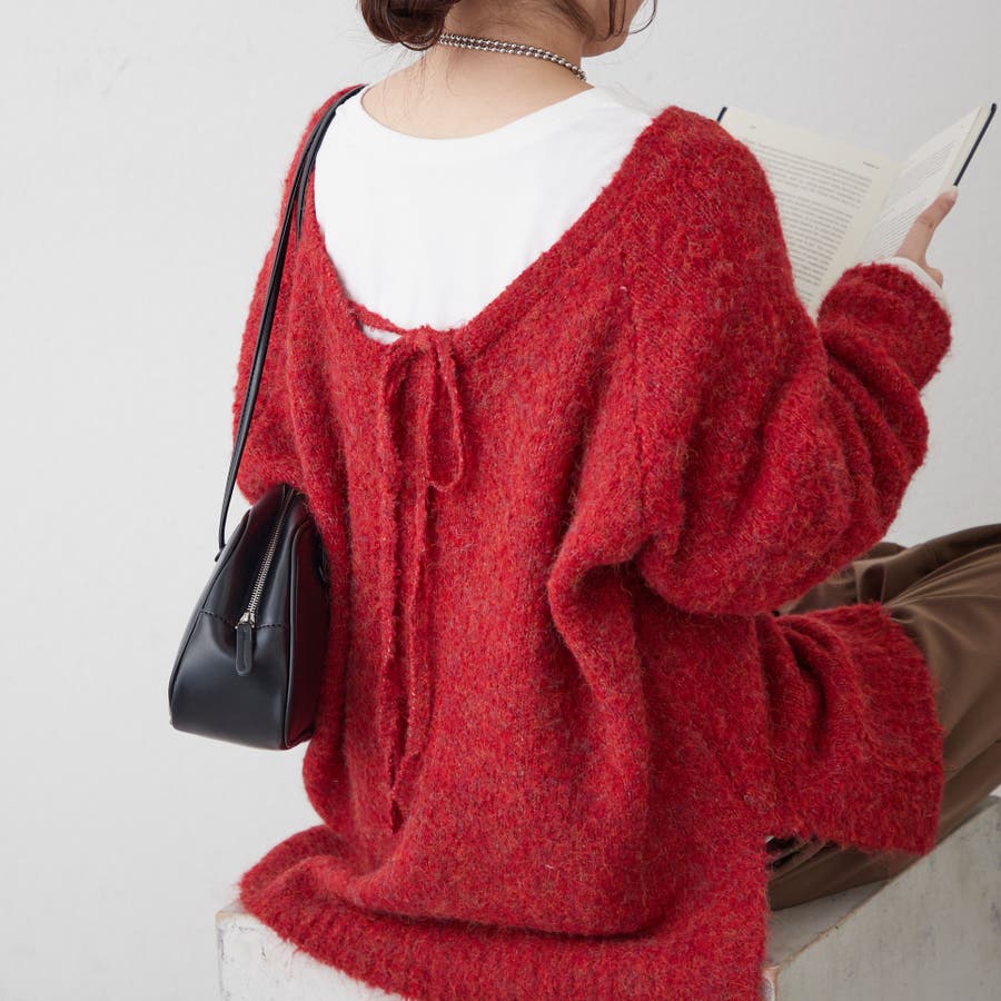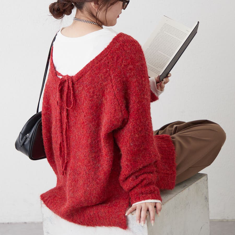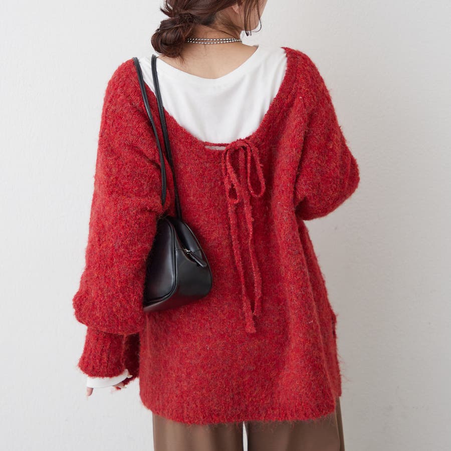 RMAF Remindmeandforever olivedesolive niceclaup 秋 秋服 秋物 冬 冬服 冬物 春 春服 春物 韓国 韓国系 韓国風 韓国ファッション 10代 20代 30代 大人 人気 大人かわいい 大人カジュアル トレンド 新作 プチプラ ゆったり トップス ニット ニットトップス 後ろ開きニット リボン バックリボンニット オーバーサイズ ゆったりニット ブークレ ブークレニット 5052050470