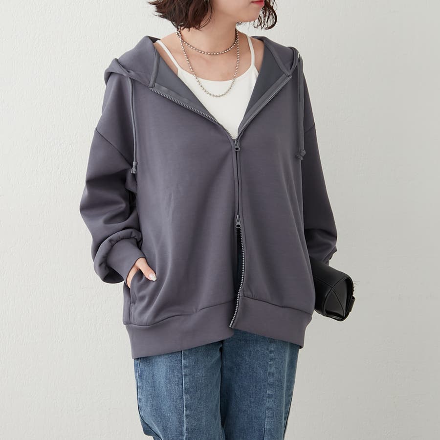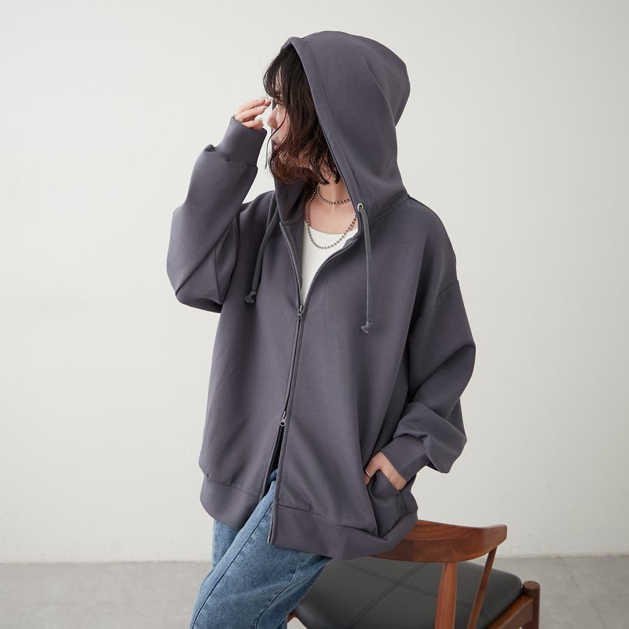 ・シンプルなデザインでデイリー使いしやすいパーカー。
