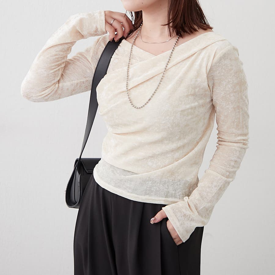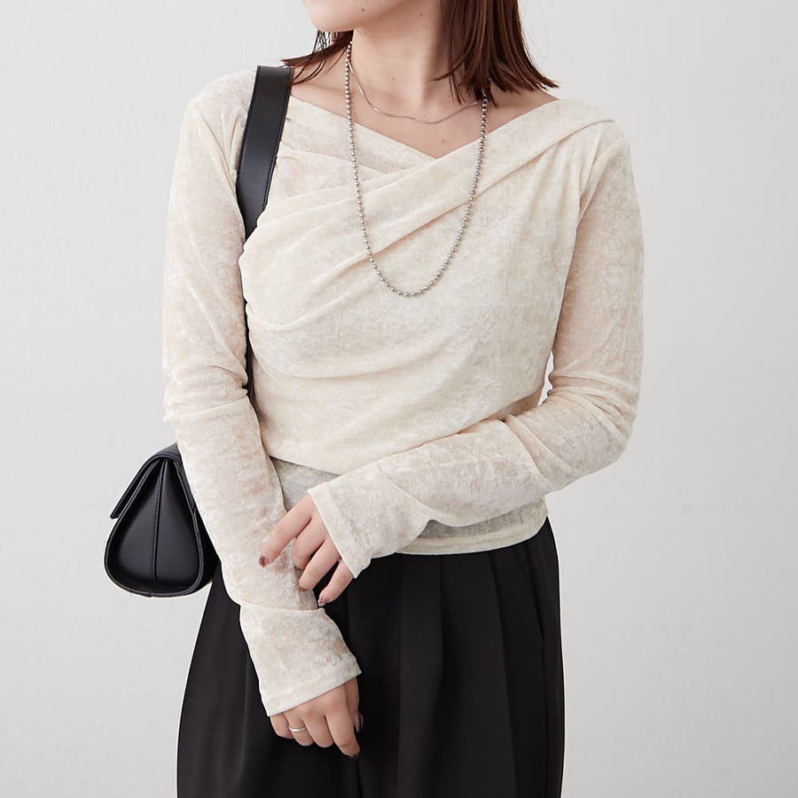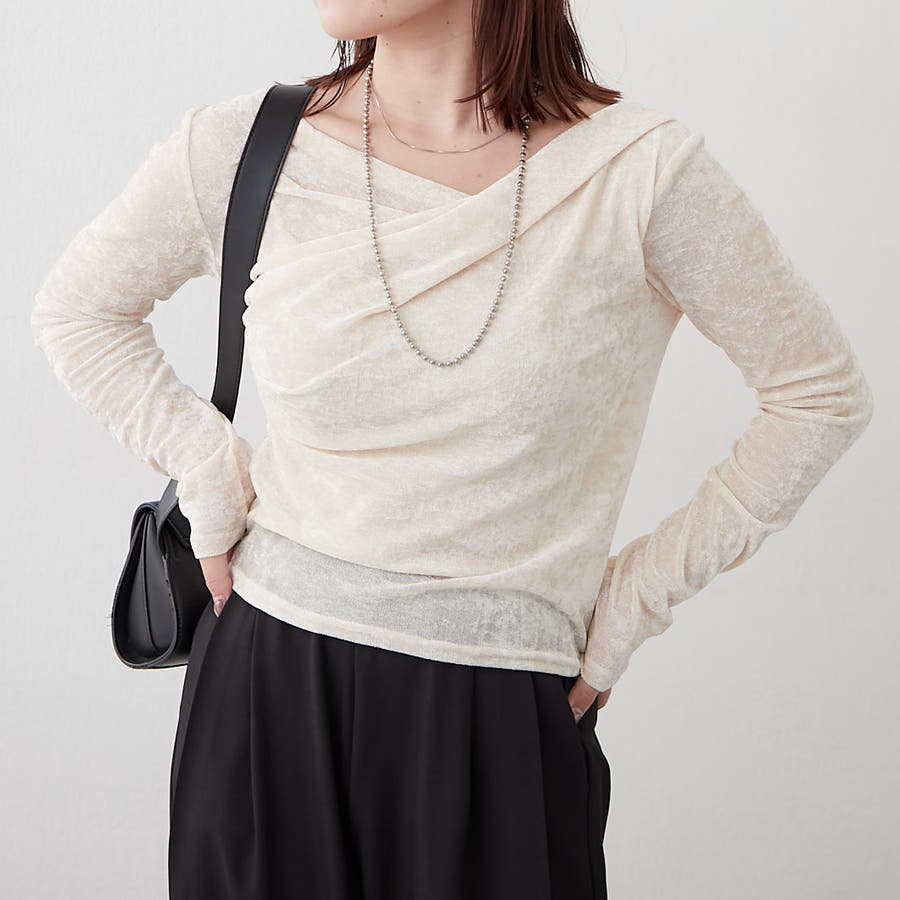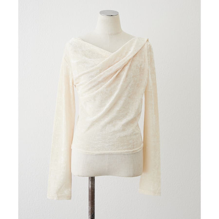 ・ 今季トレンドのディティールでもあるドレープを取り入れたレディライクなトップス