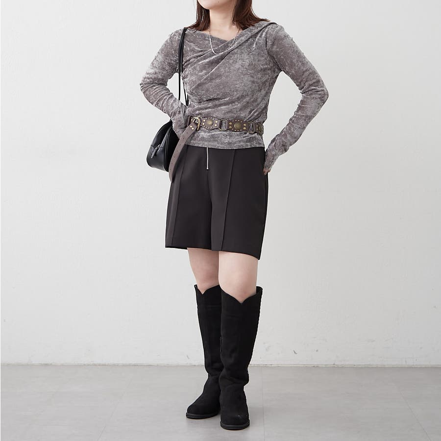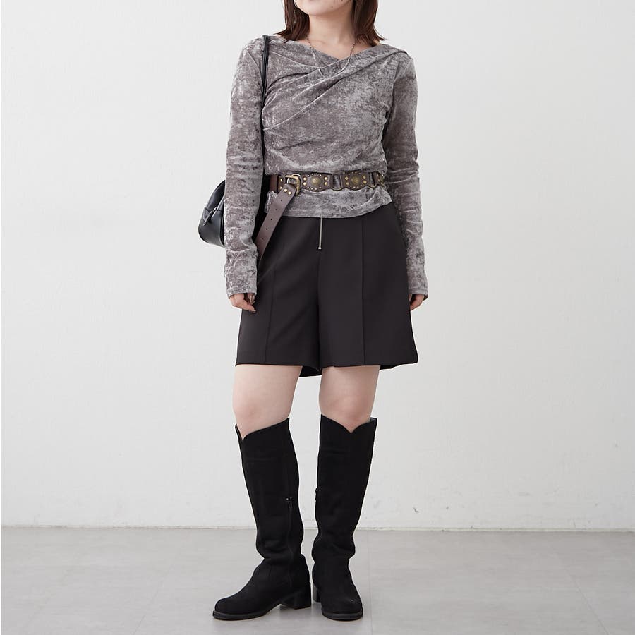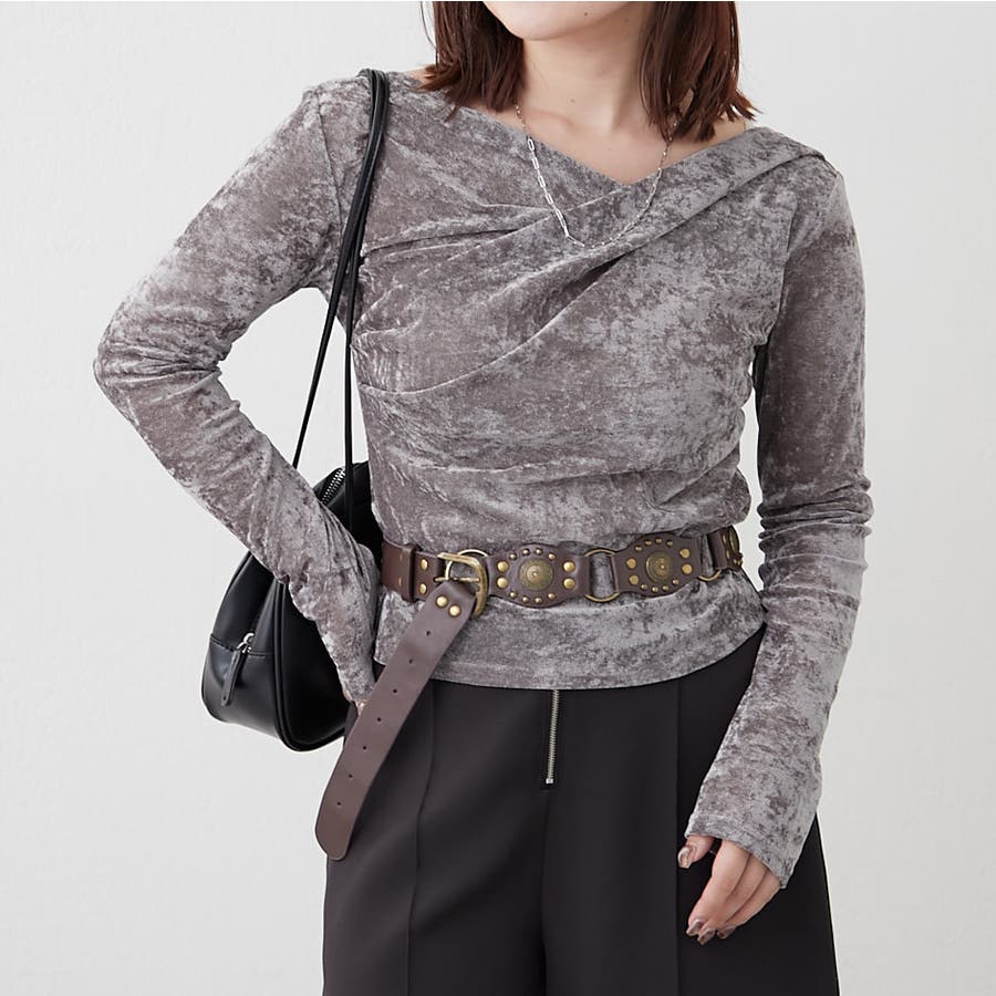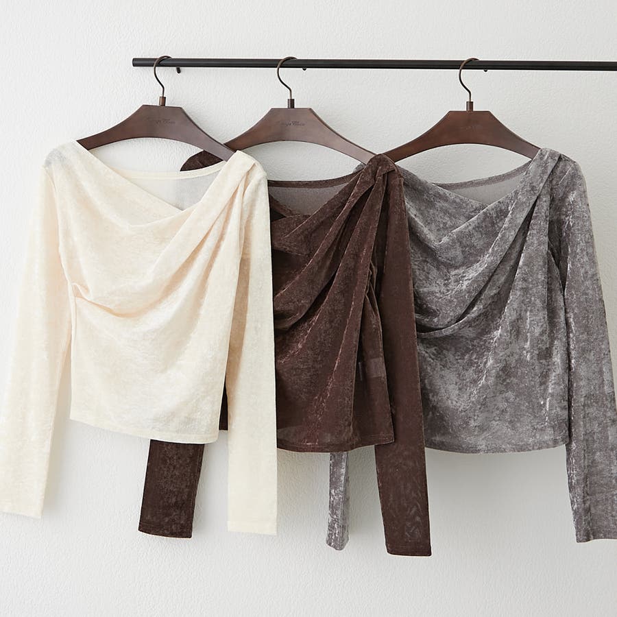 ・ 今季トレンドのディティールでもあるドレープを取り入れたレディライクなトップス