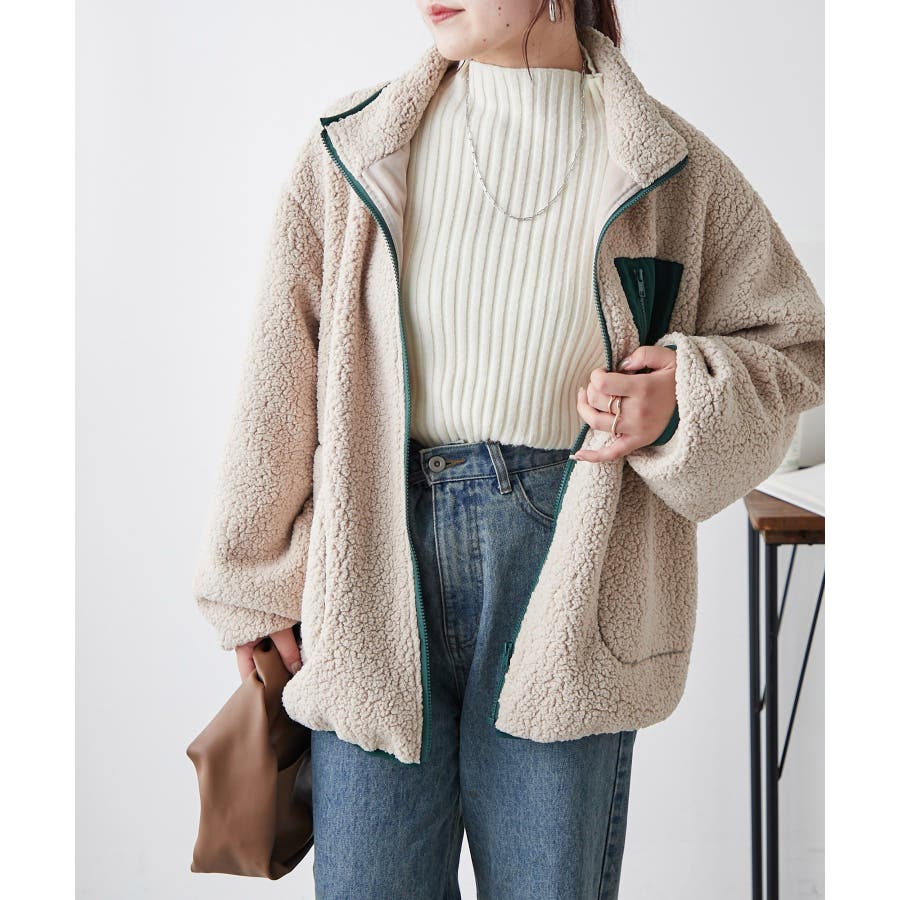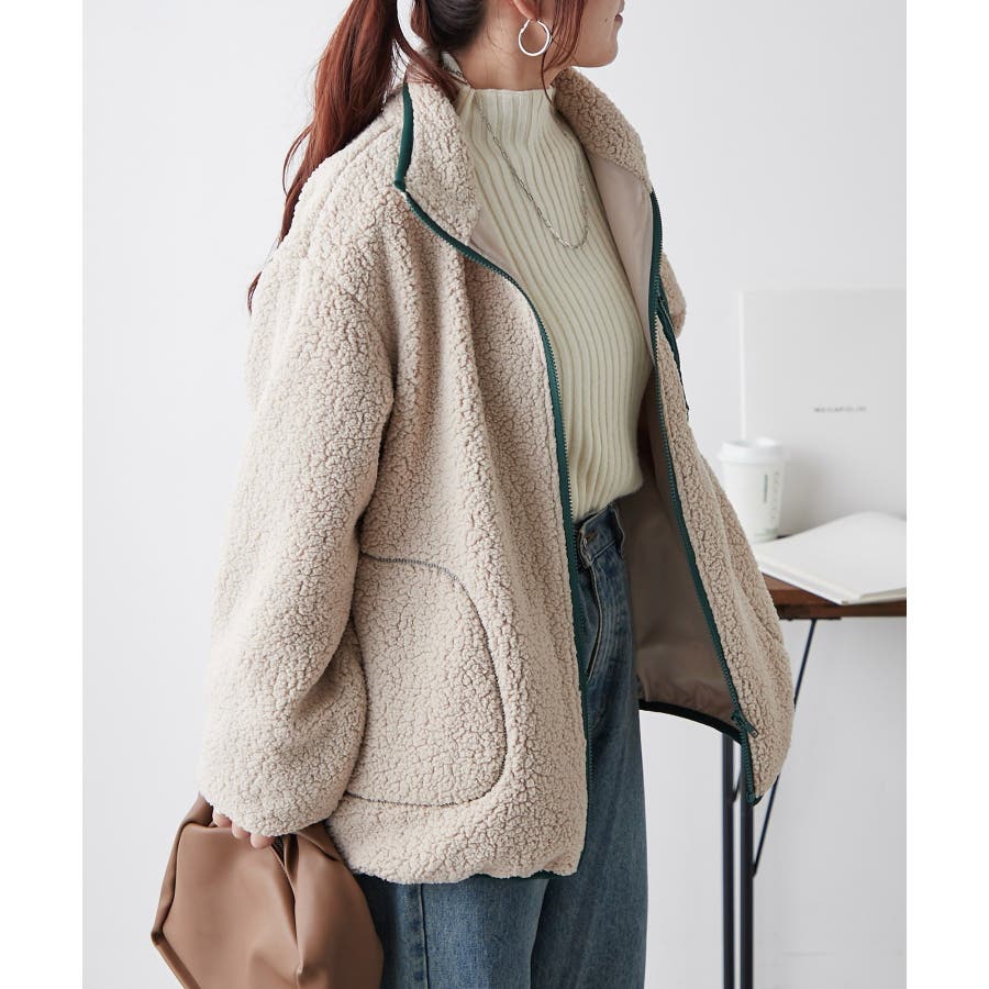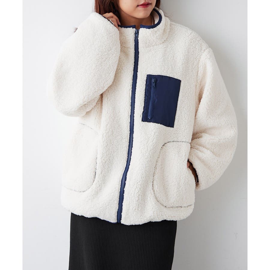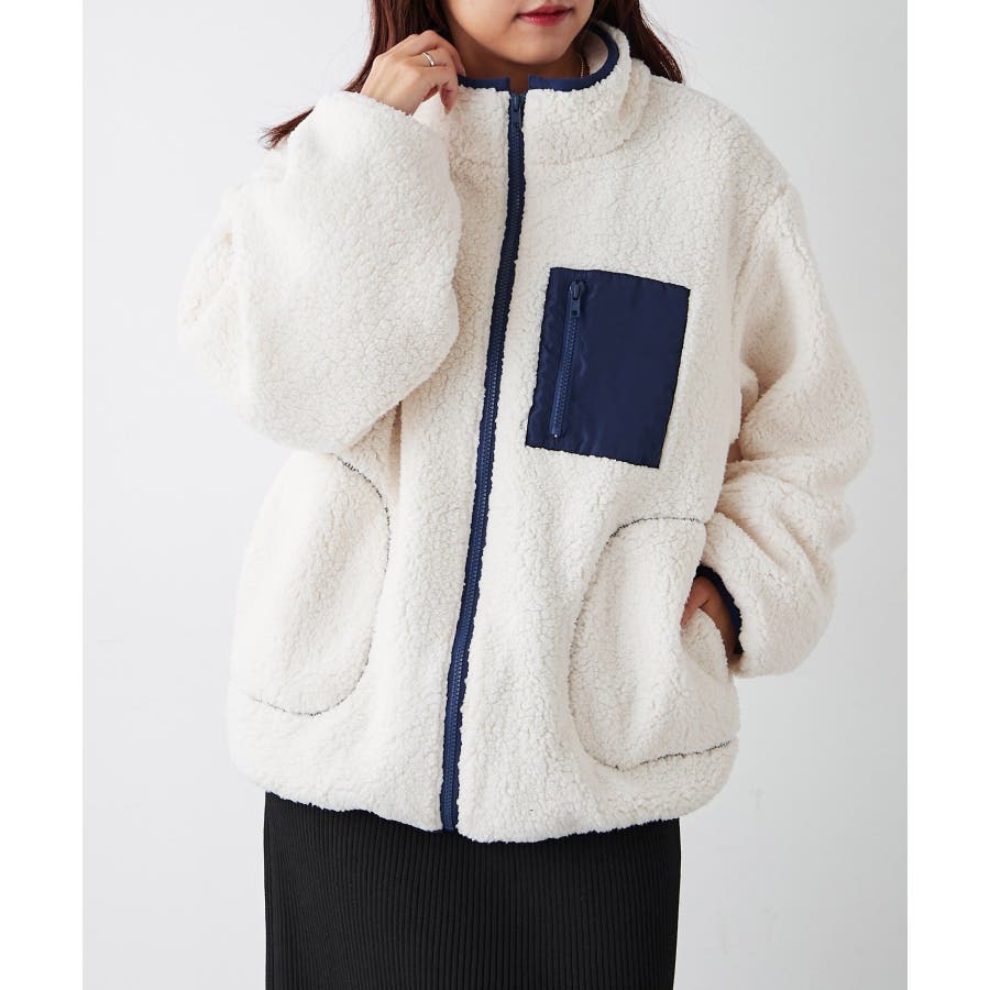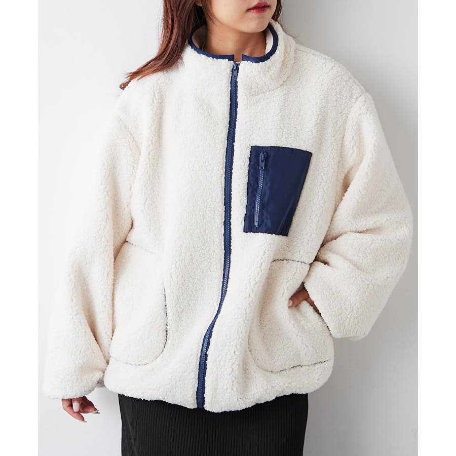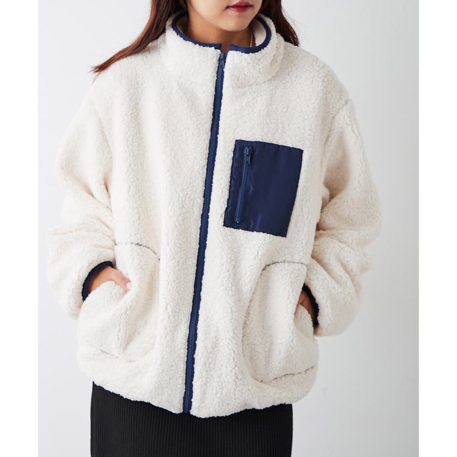 ・もこもこボアが可愛い、配色デザインのスタンドブルゾン。