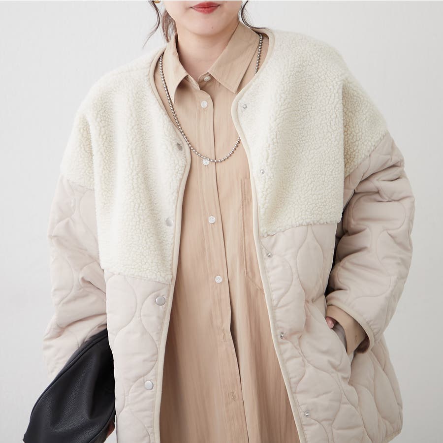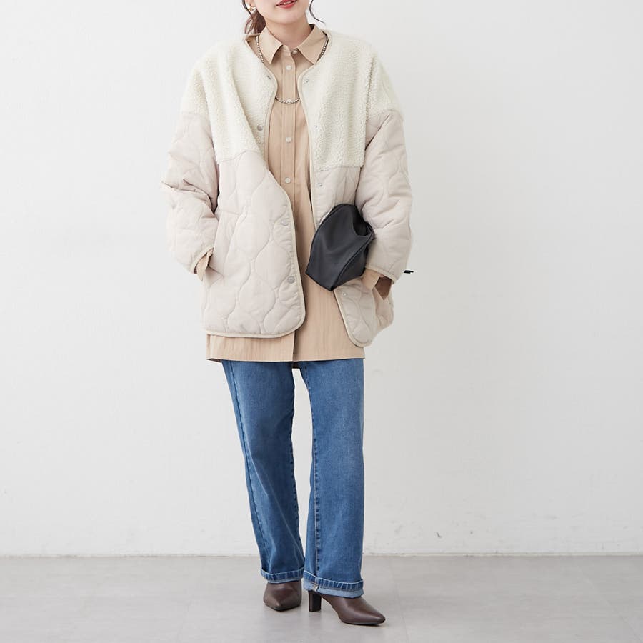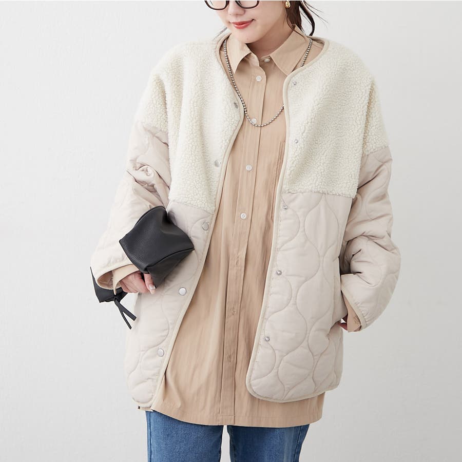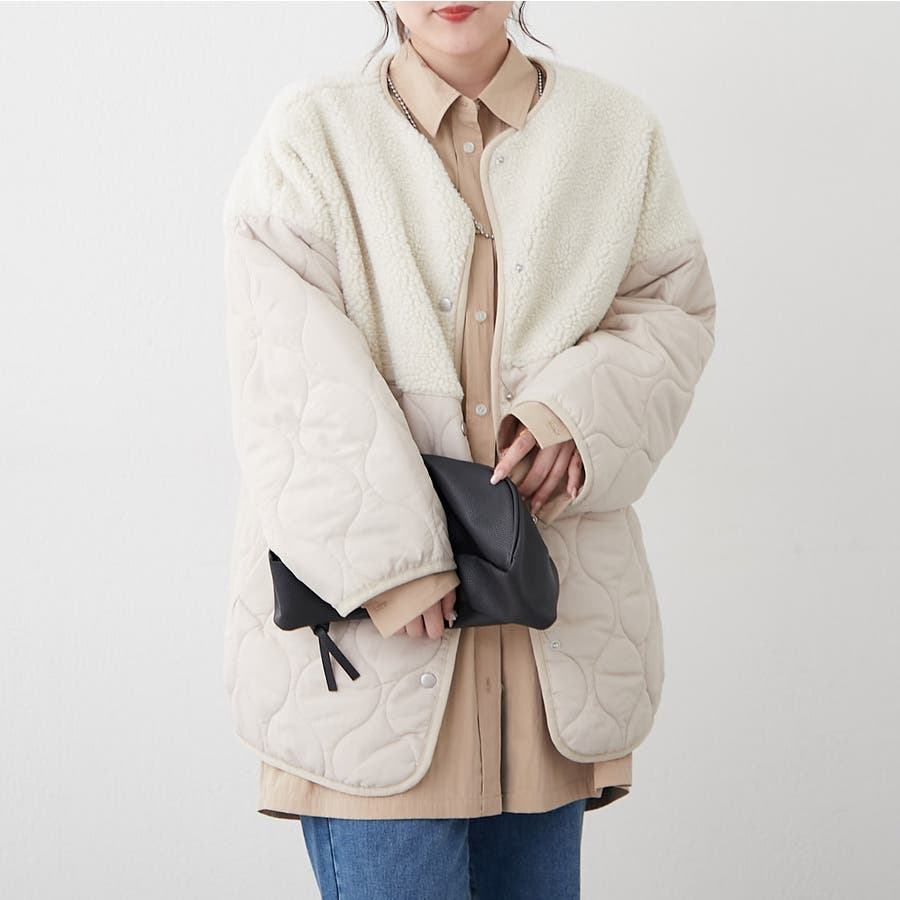 ・ボアとキルティングの切り替えが季節感を演出するジャケット