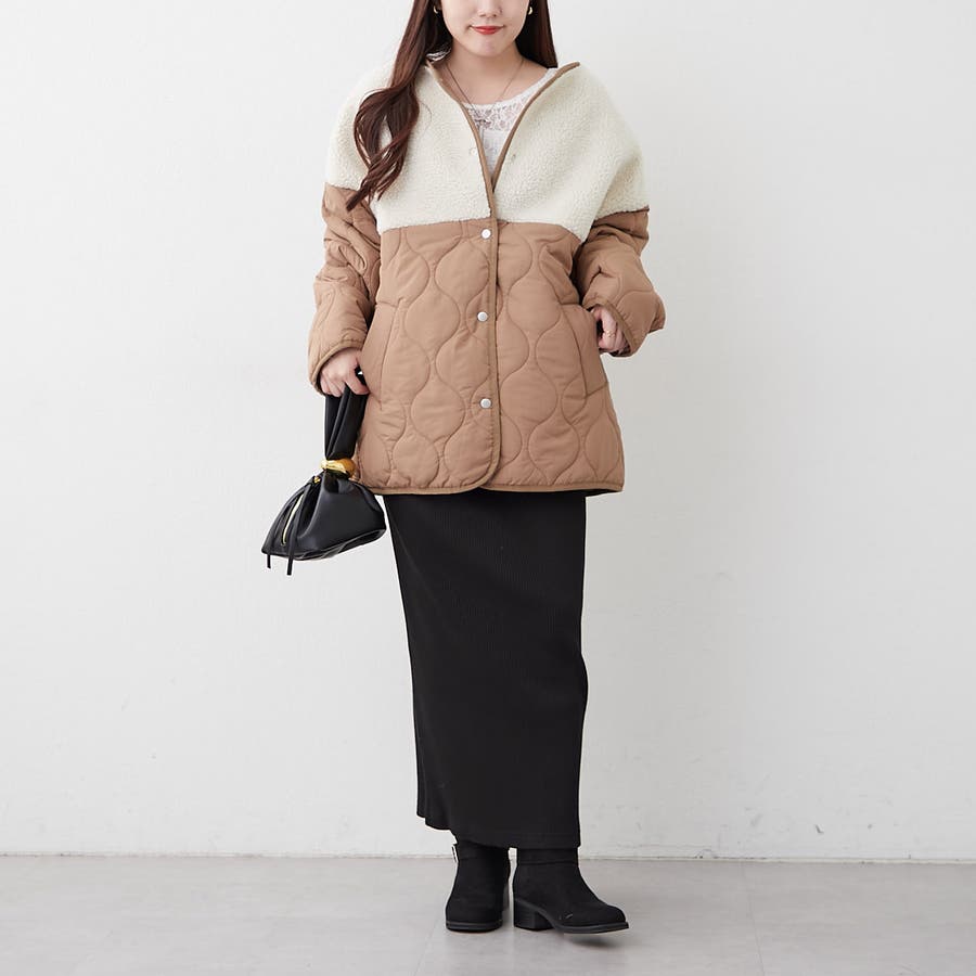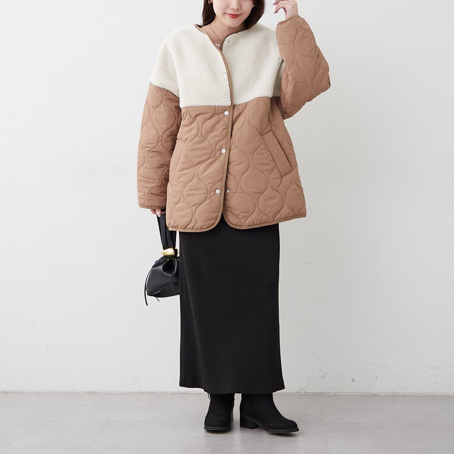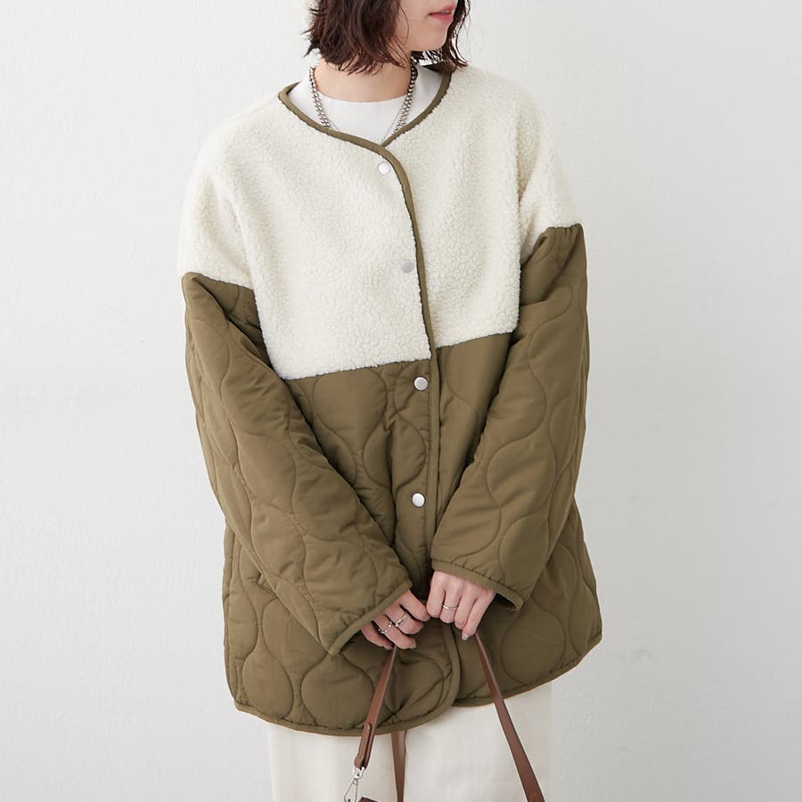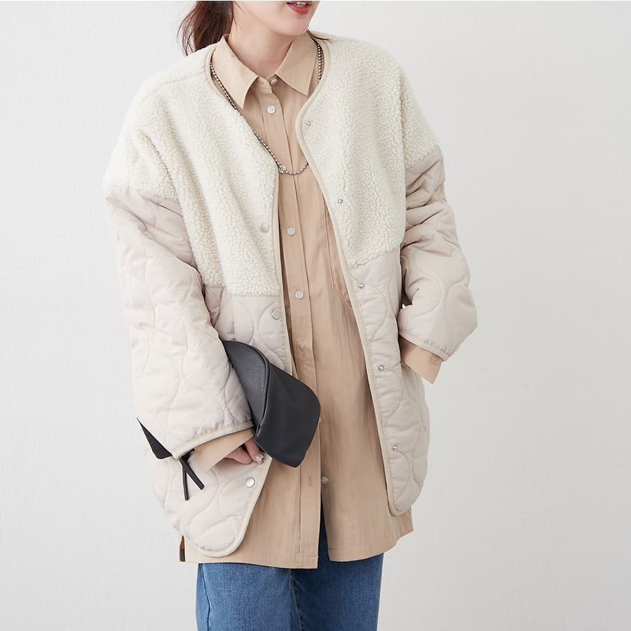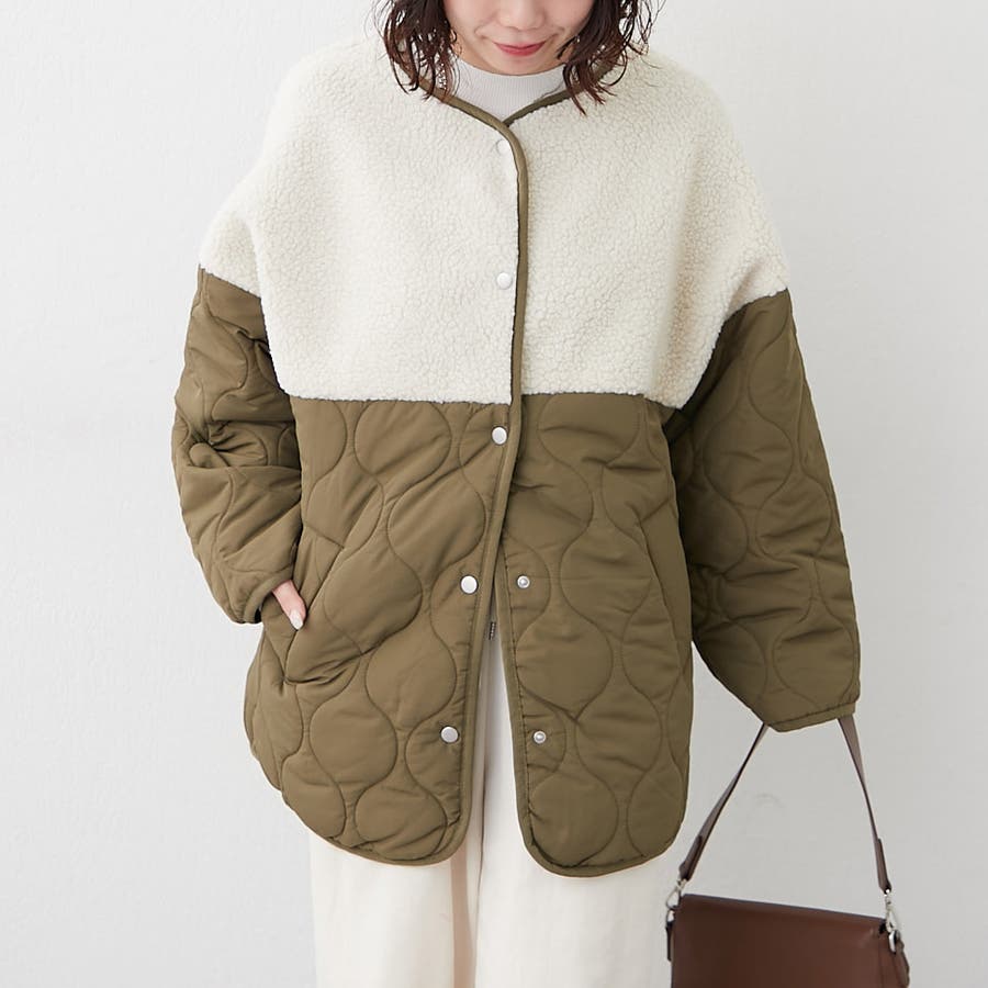 ・ボアとキルティングの切り替えが季節感を演出するジャケット