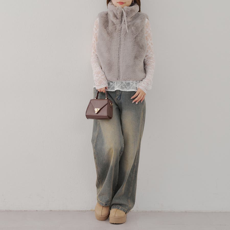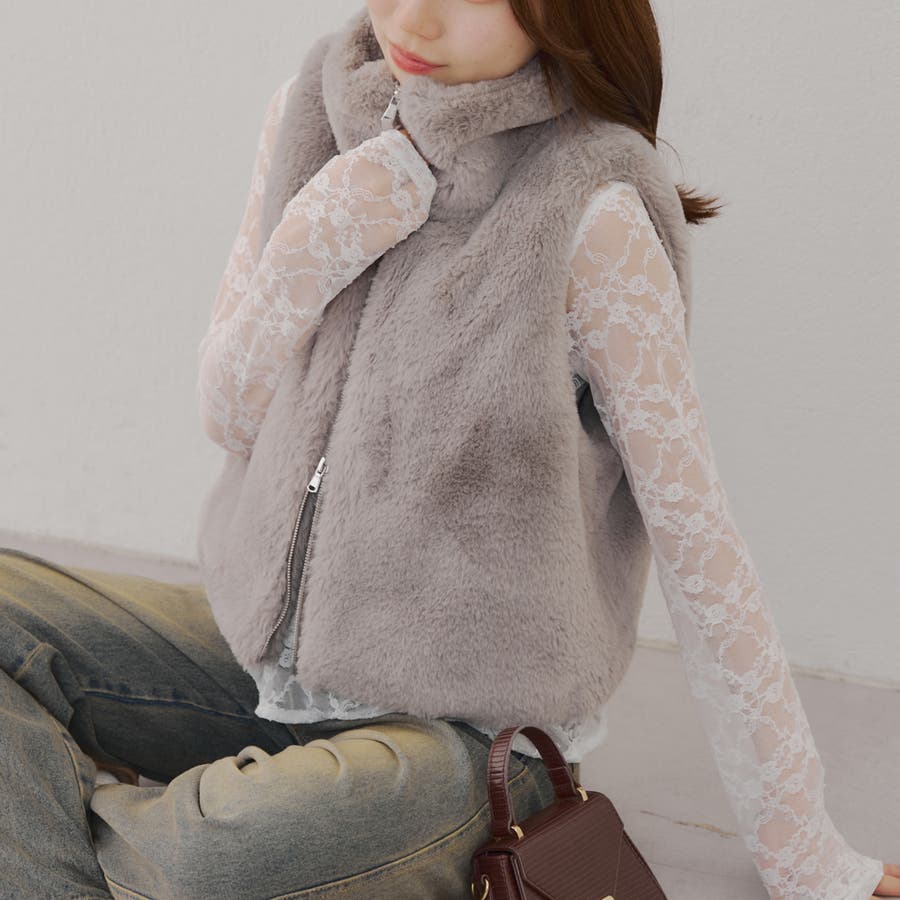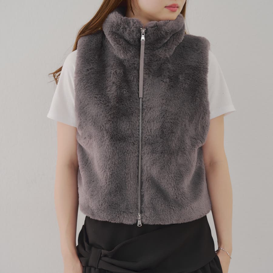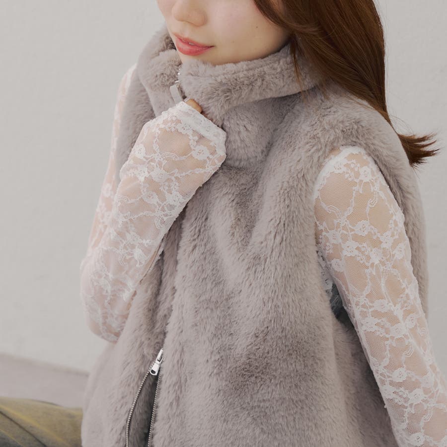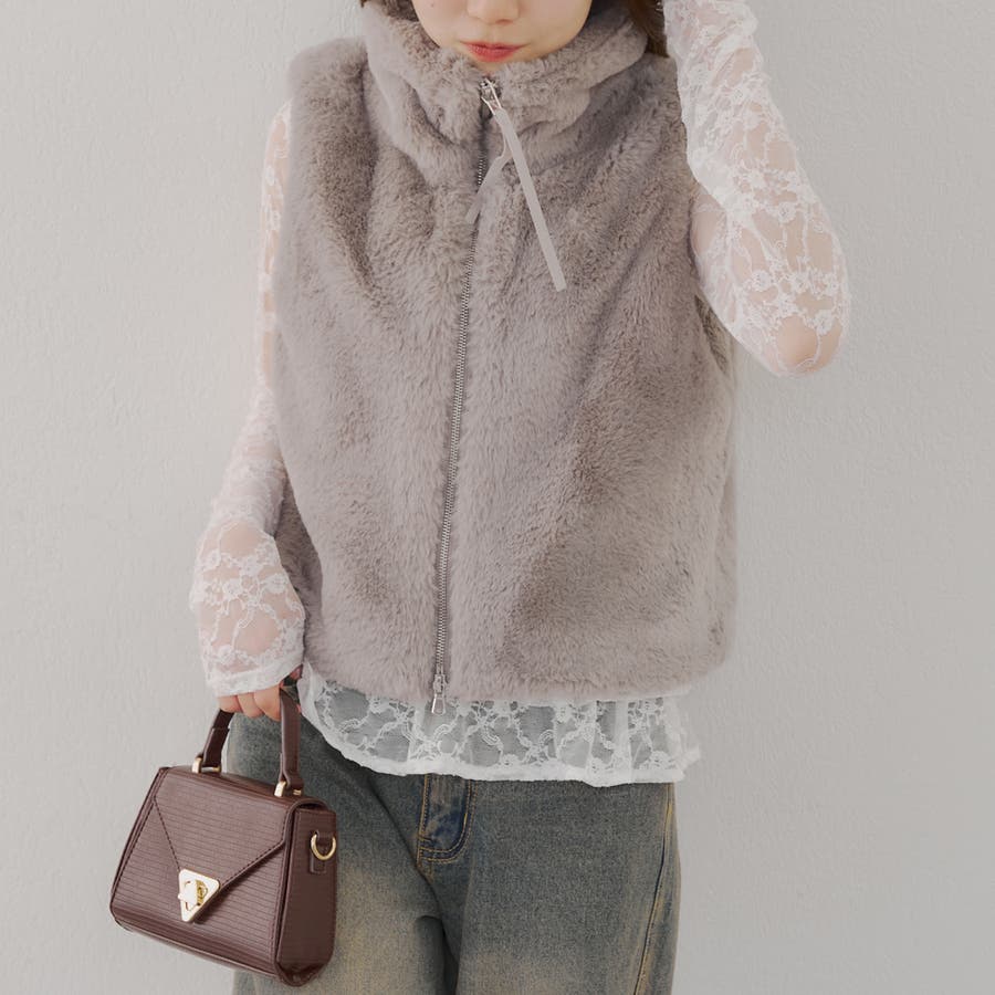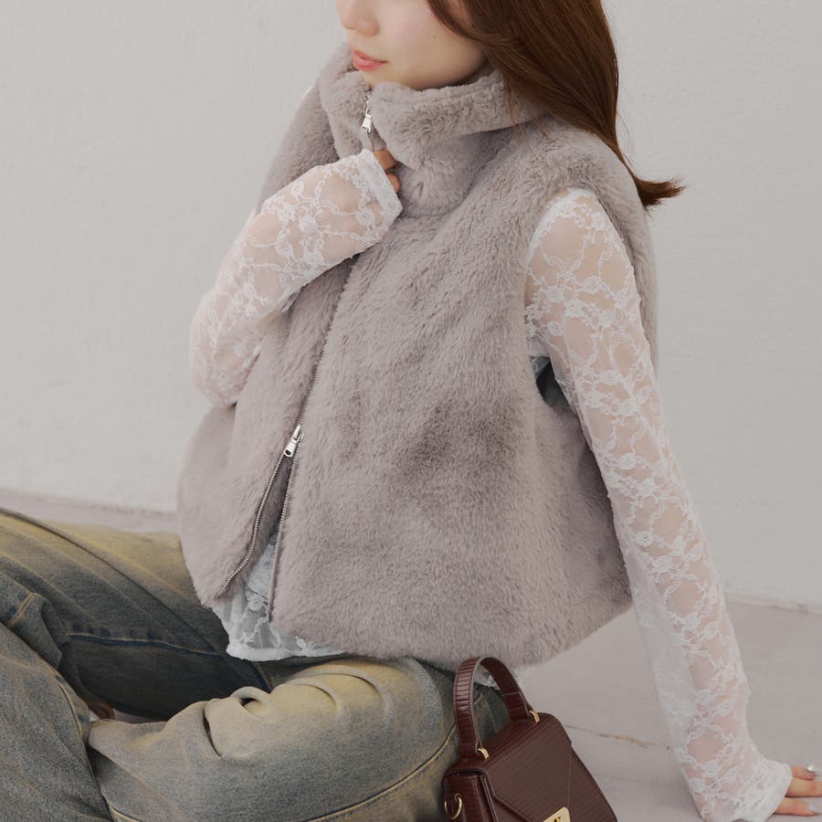 ふわふわ可愛い!ラビット風ファーダブルジップベスト