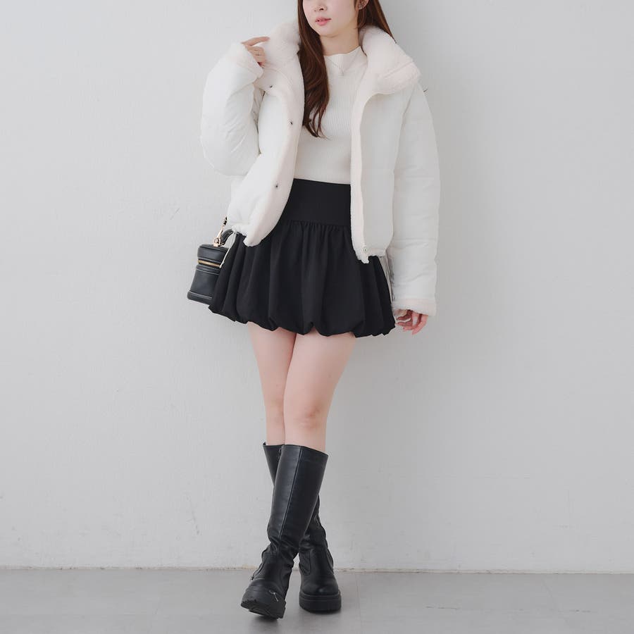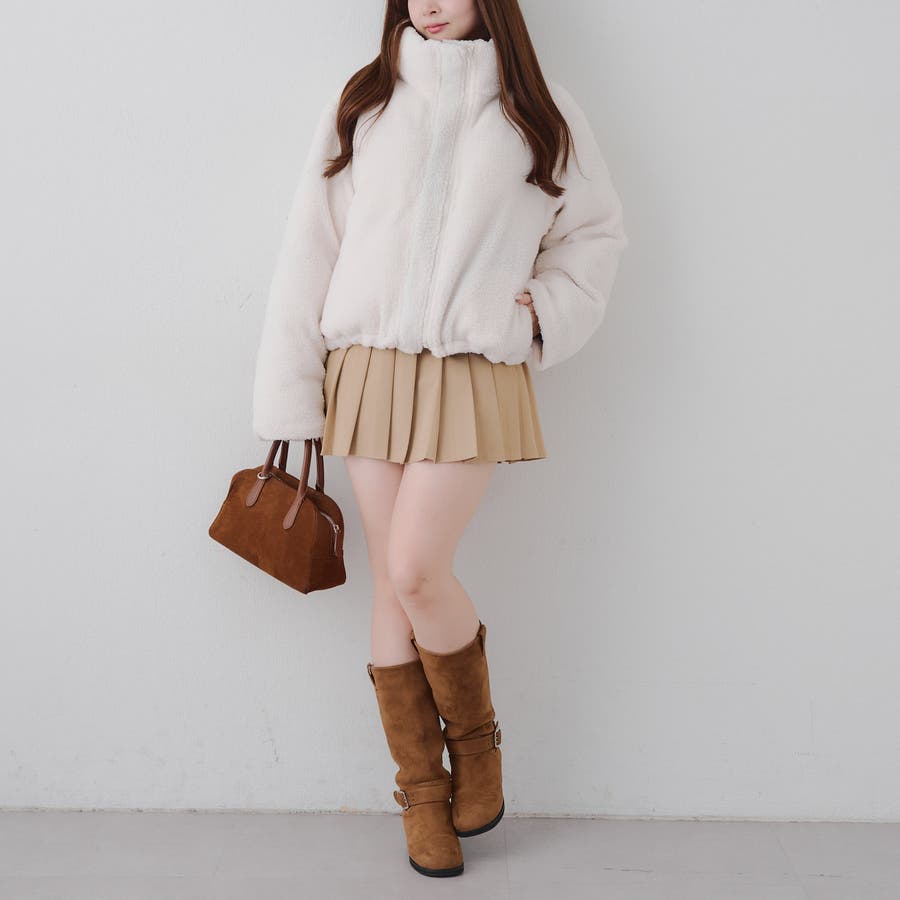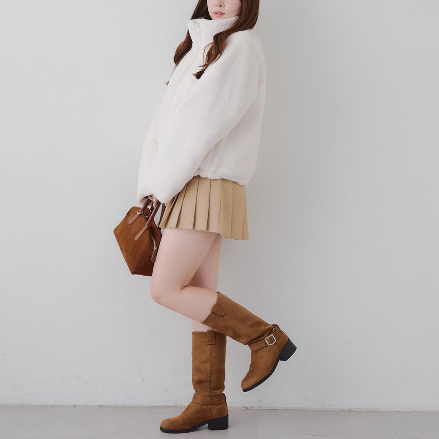 ・ミニボトムにロングブーツで王道のカジュアルガーリーコーデ♪