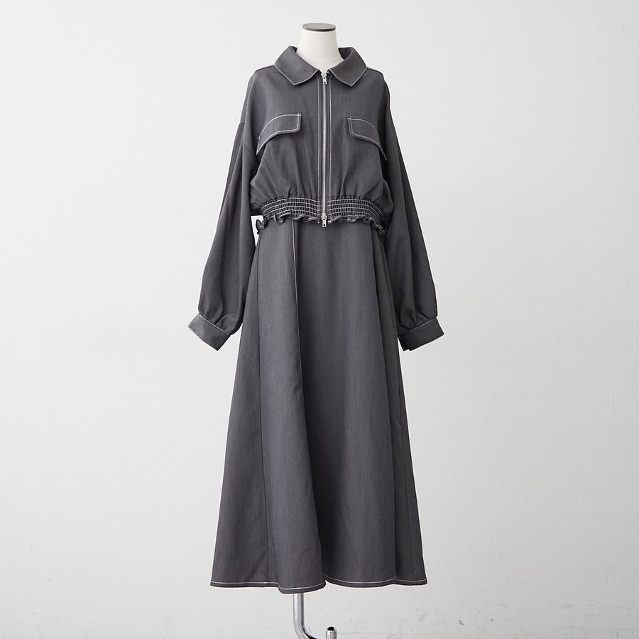 【セットアイテム】裾ギャザージャケット+キャミワンピース
