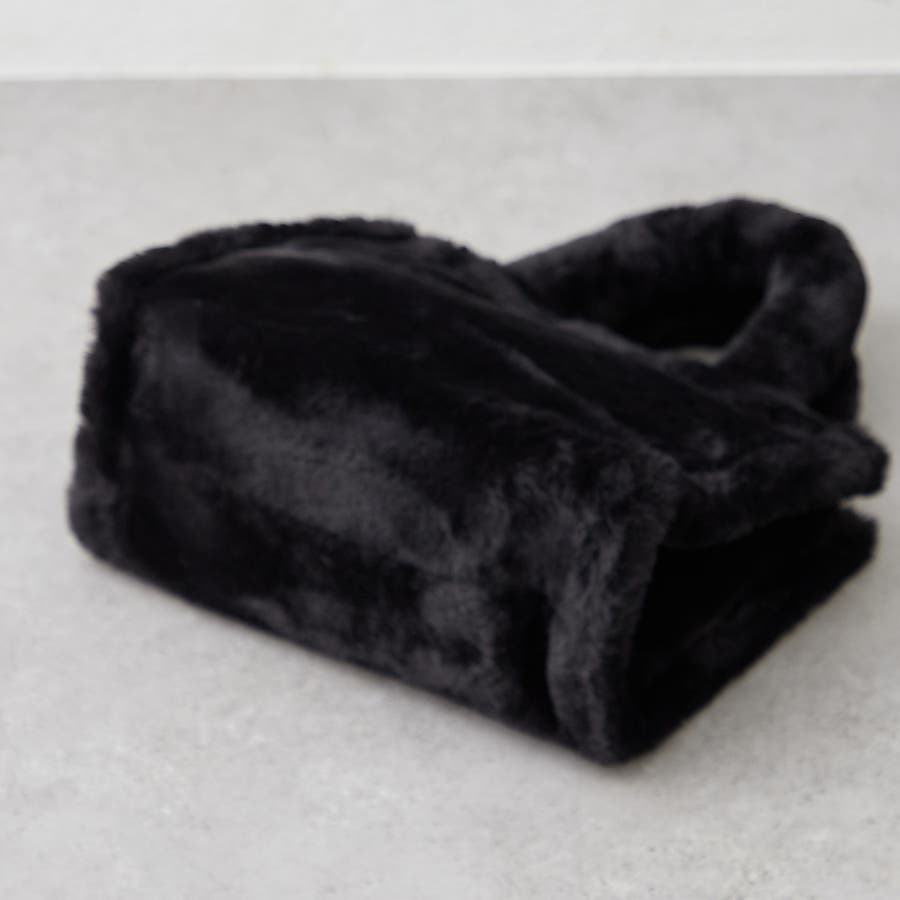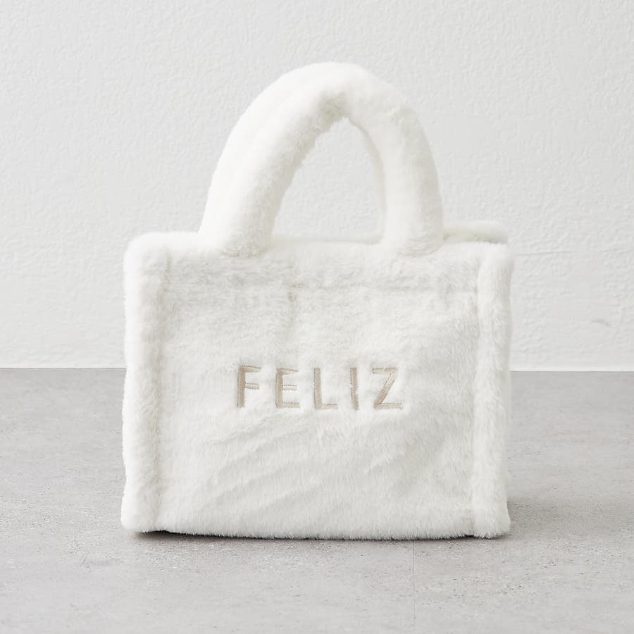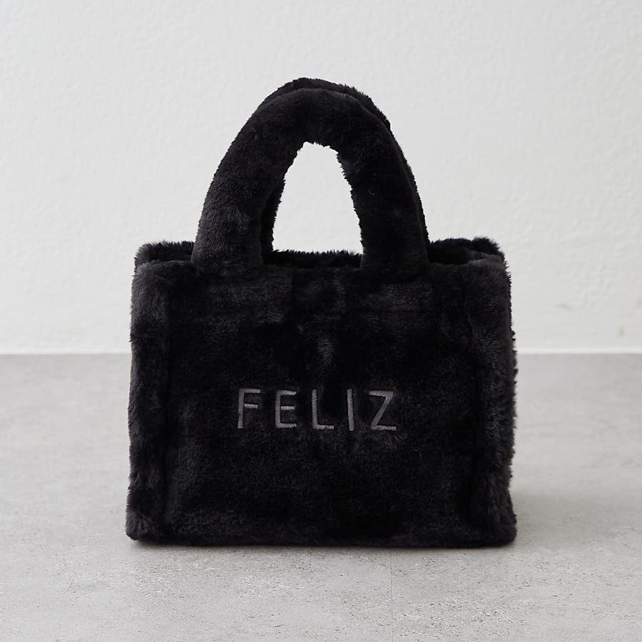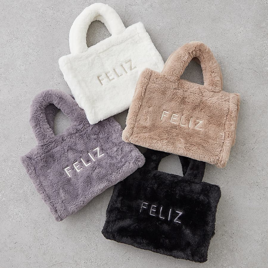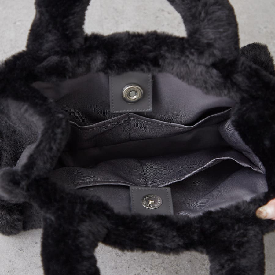 ・冬らしいムードを演出するフェイクファー素材のバッグ。