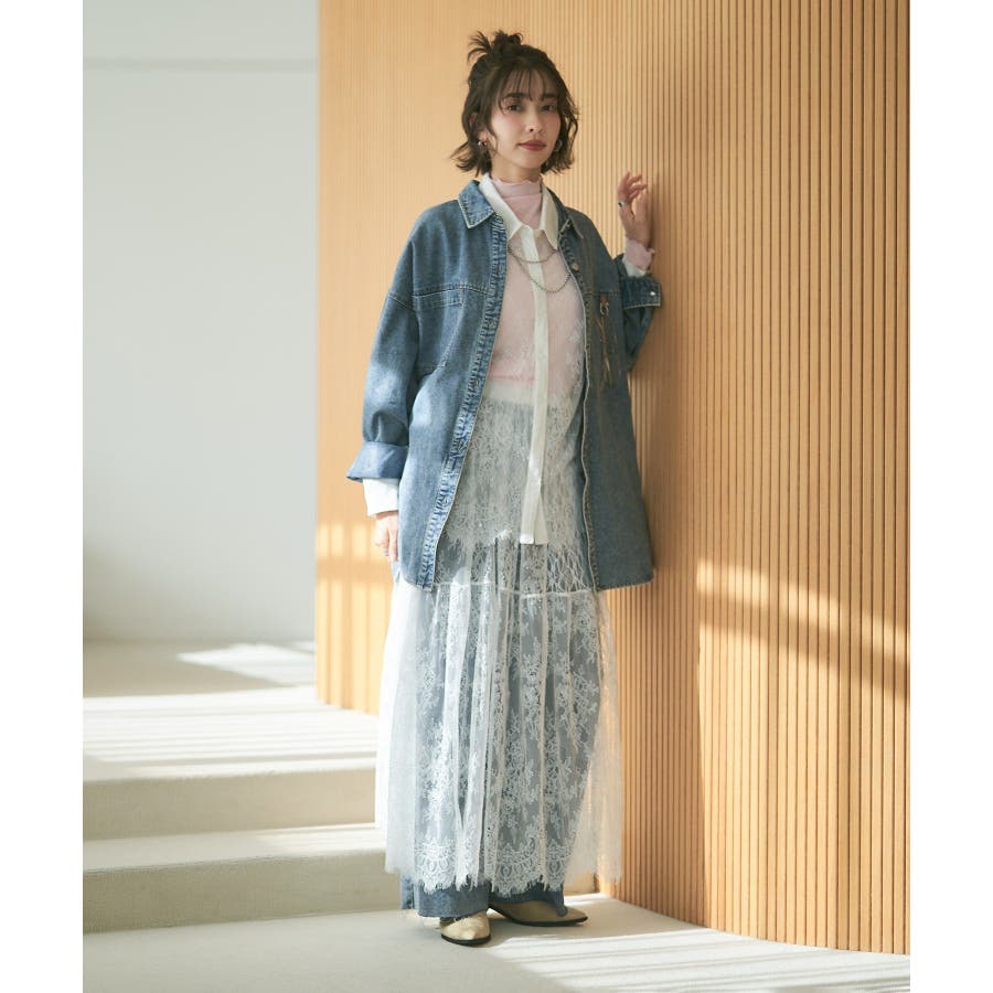 ・一枚着のスカートとしてはもちろん、ペチコートを外してデニムとのレイヤードコーデもおすすめ!