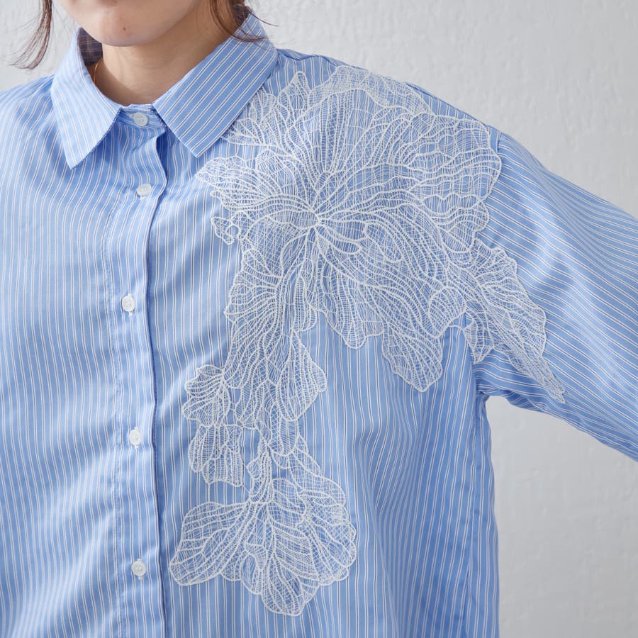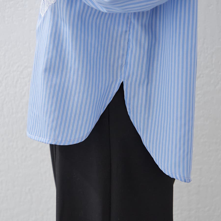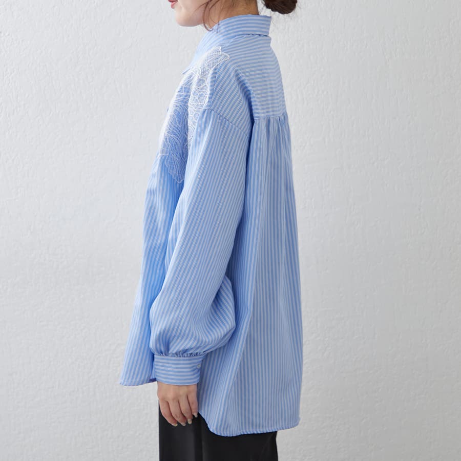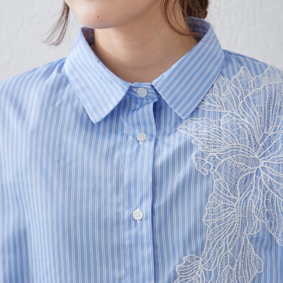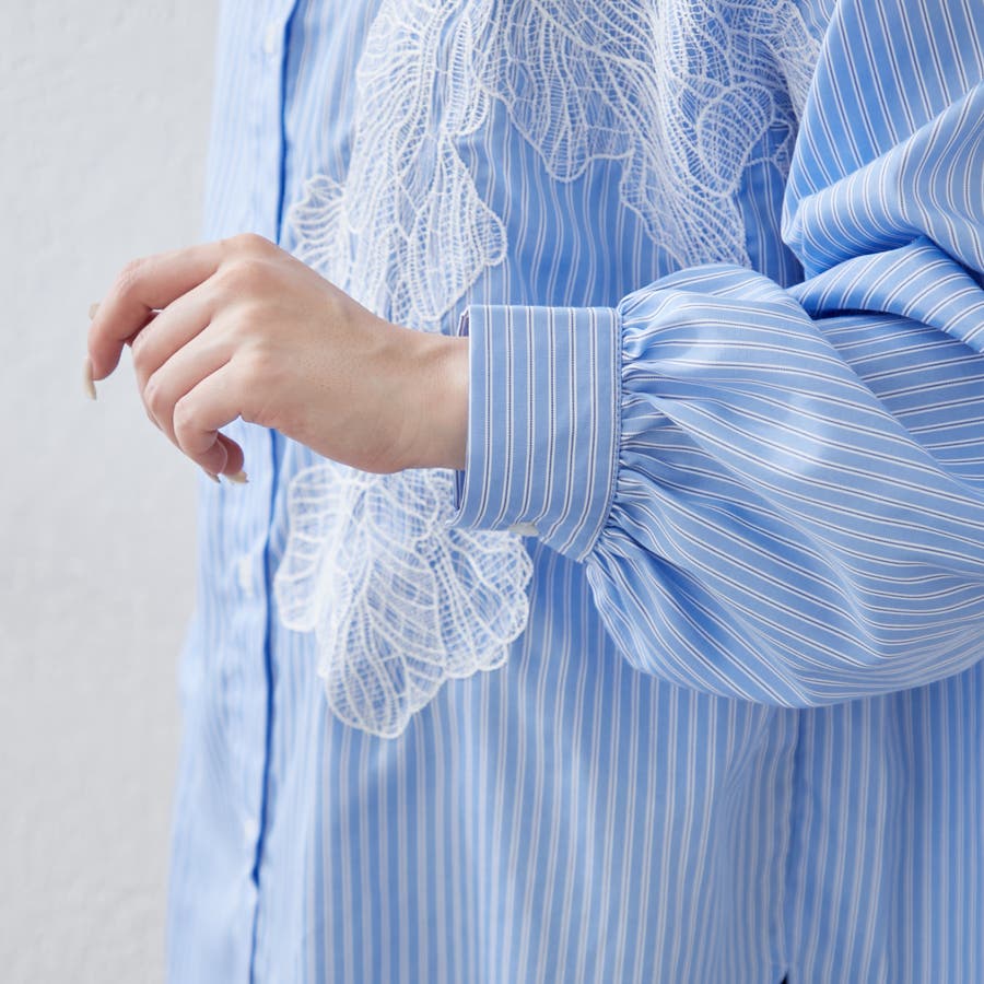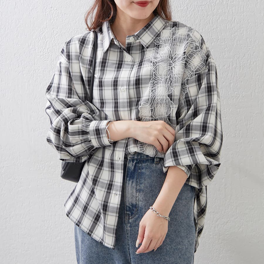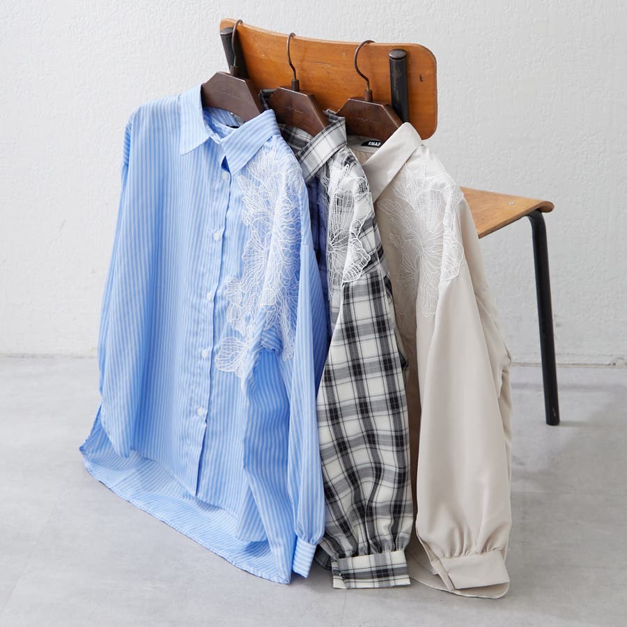・胸元にあしらわれたレースがおしゃれな大人シャツ