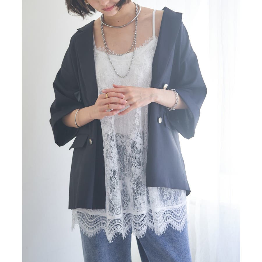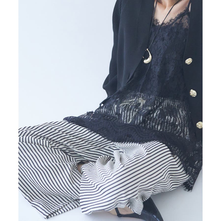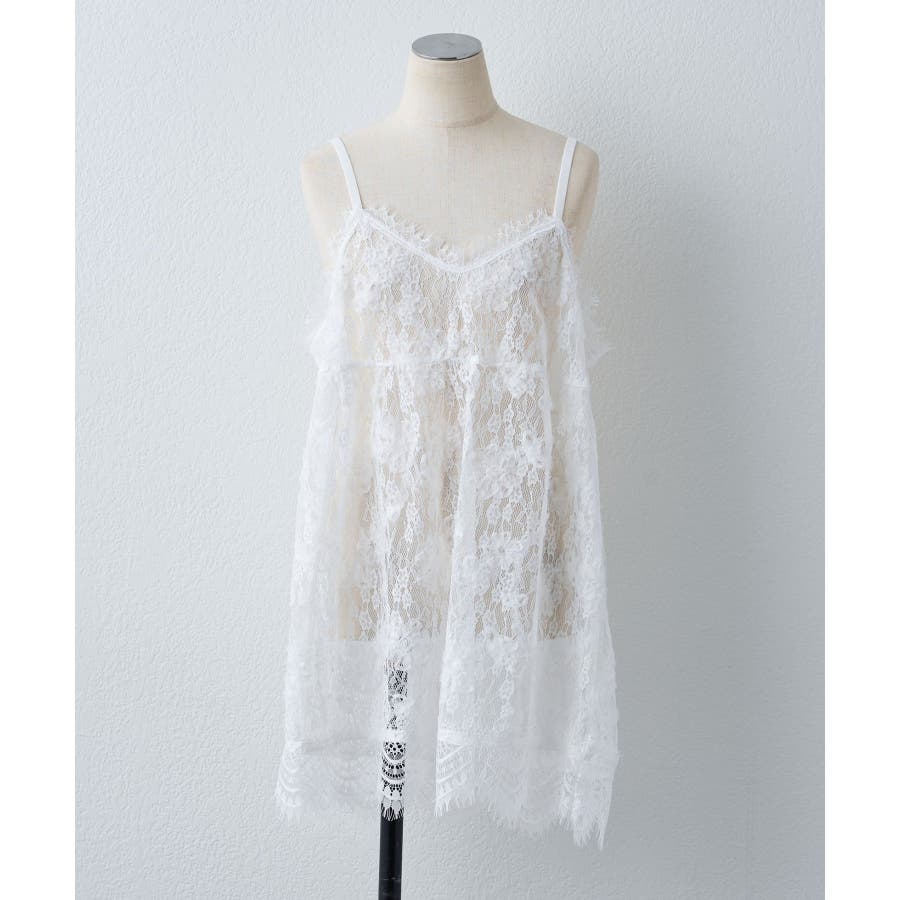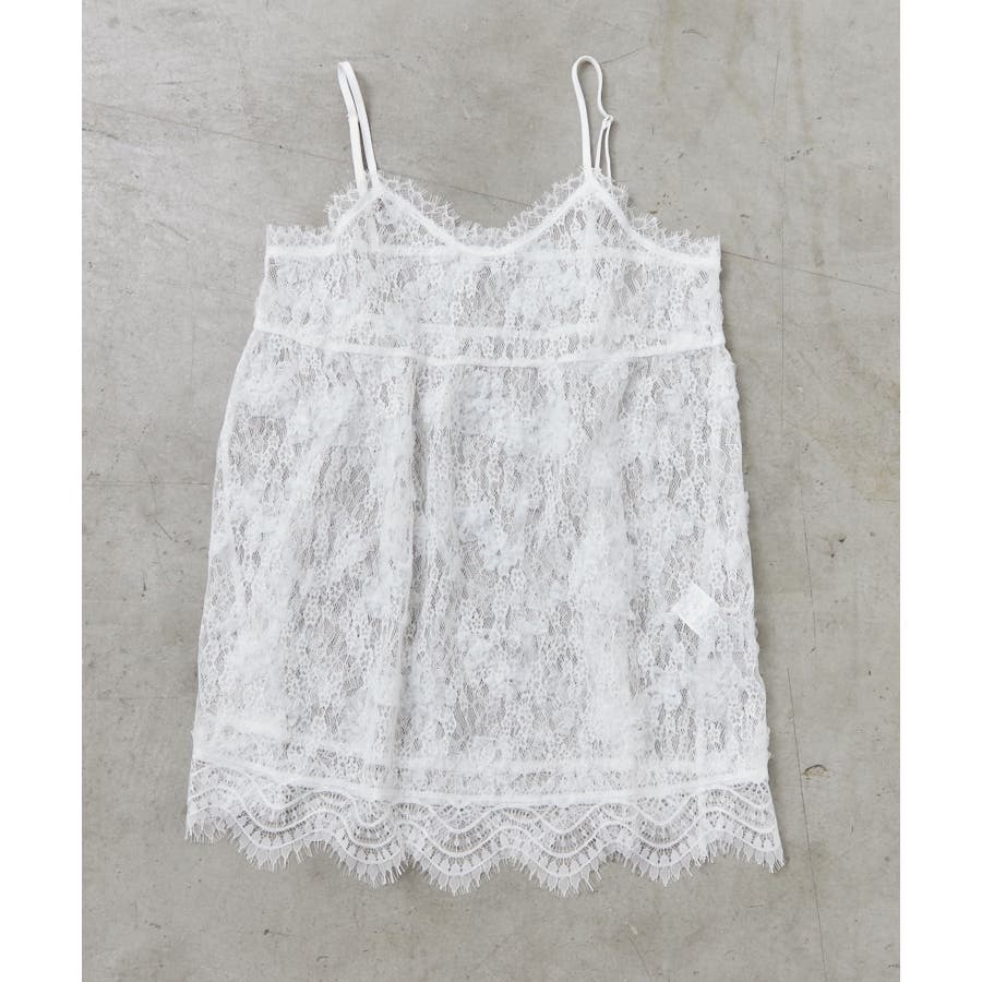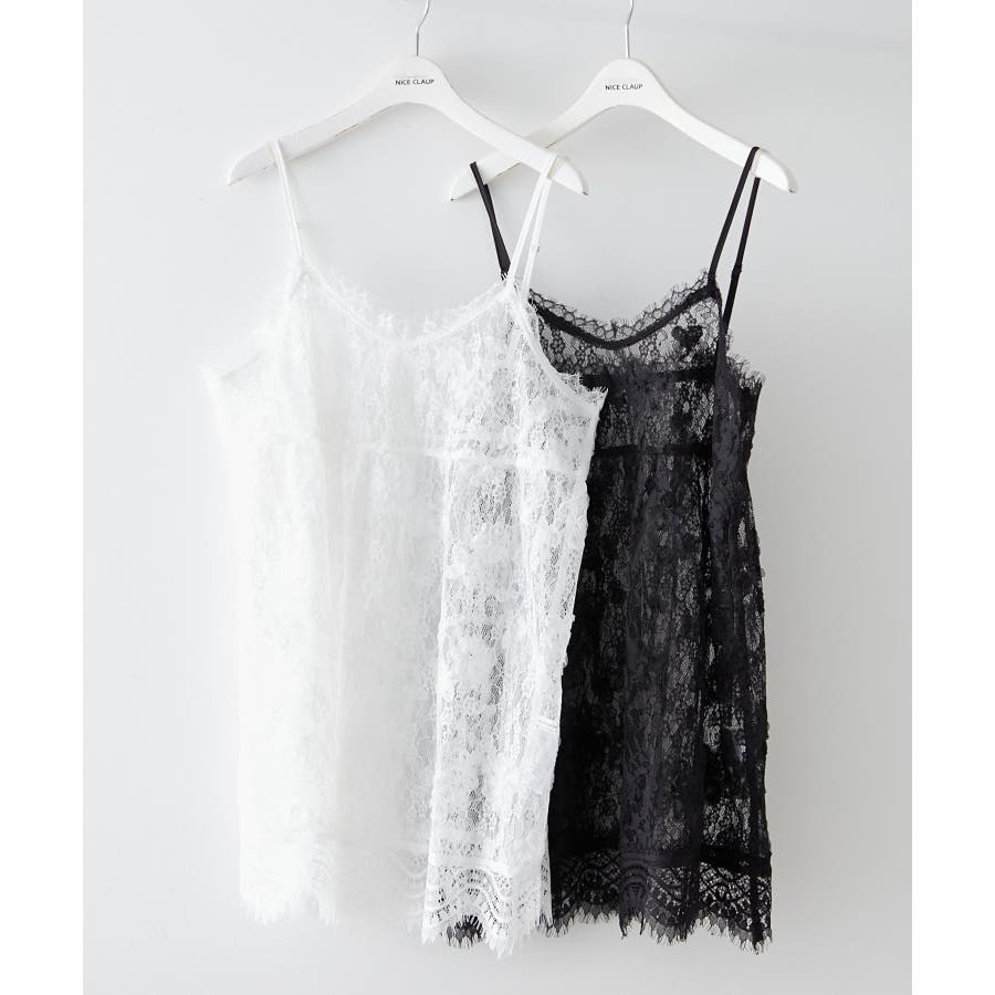 ・繊細な総レースのキャミチュニックはトレンドのレイヤードコーデにぴったり
